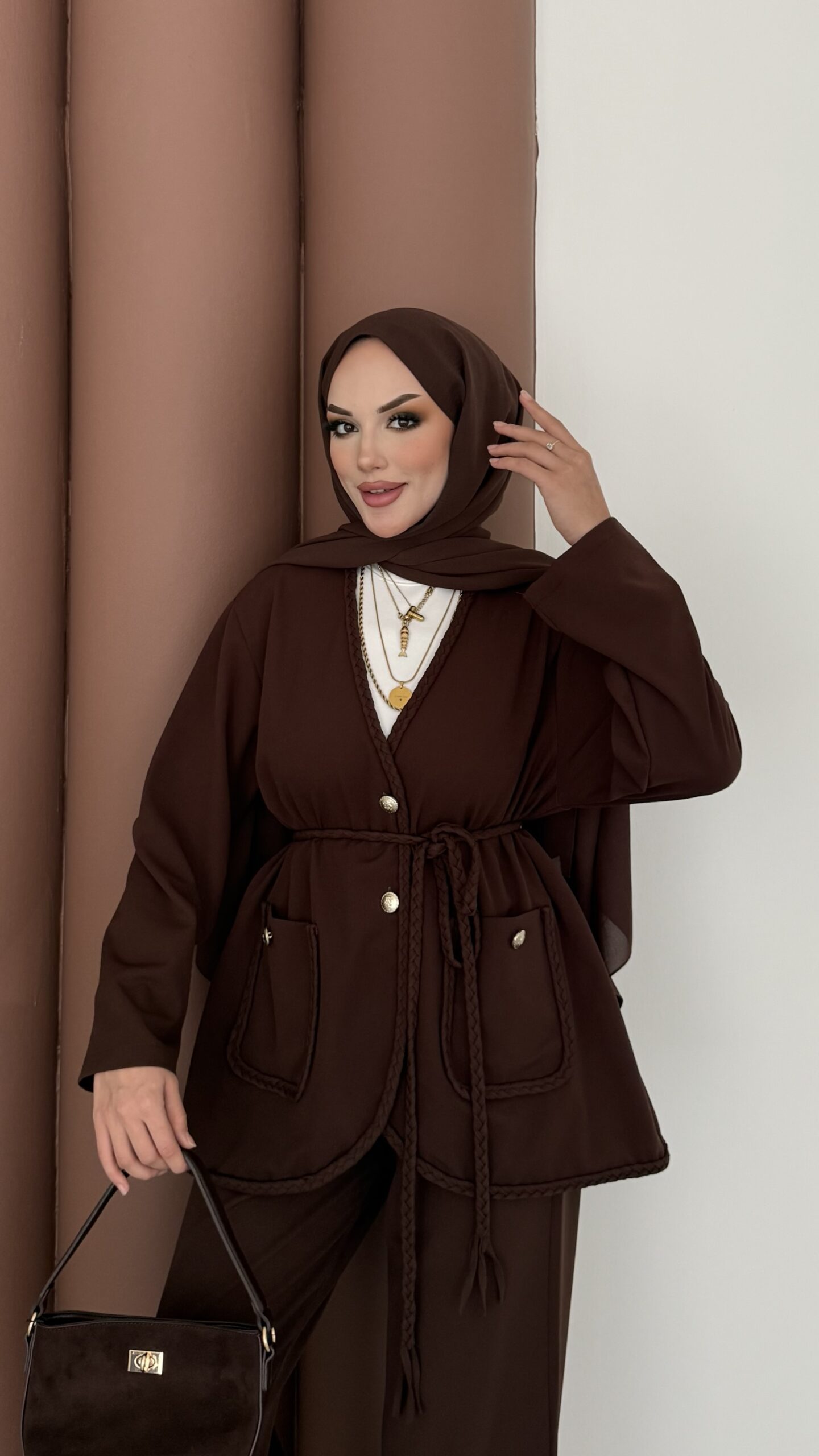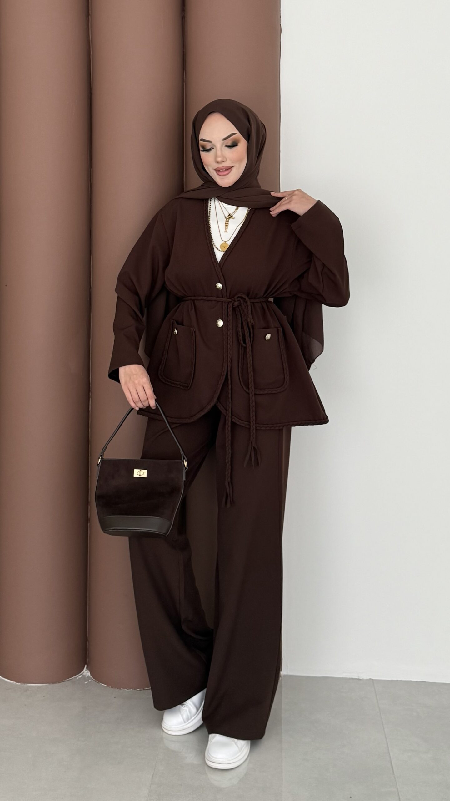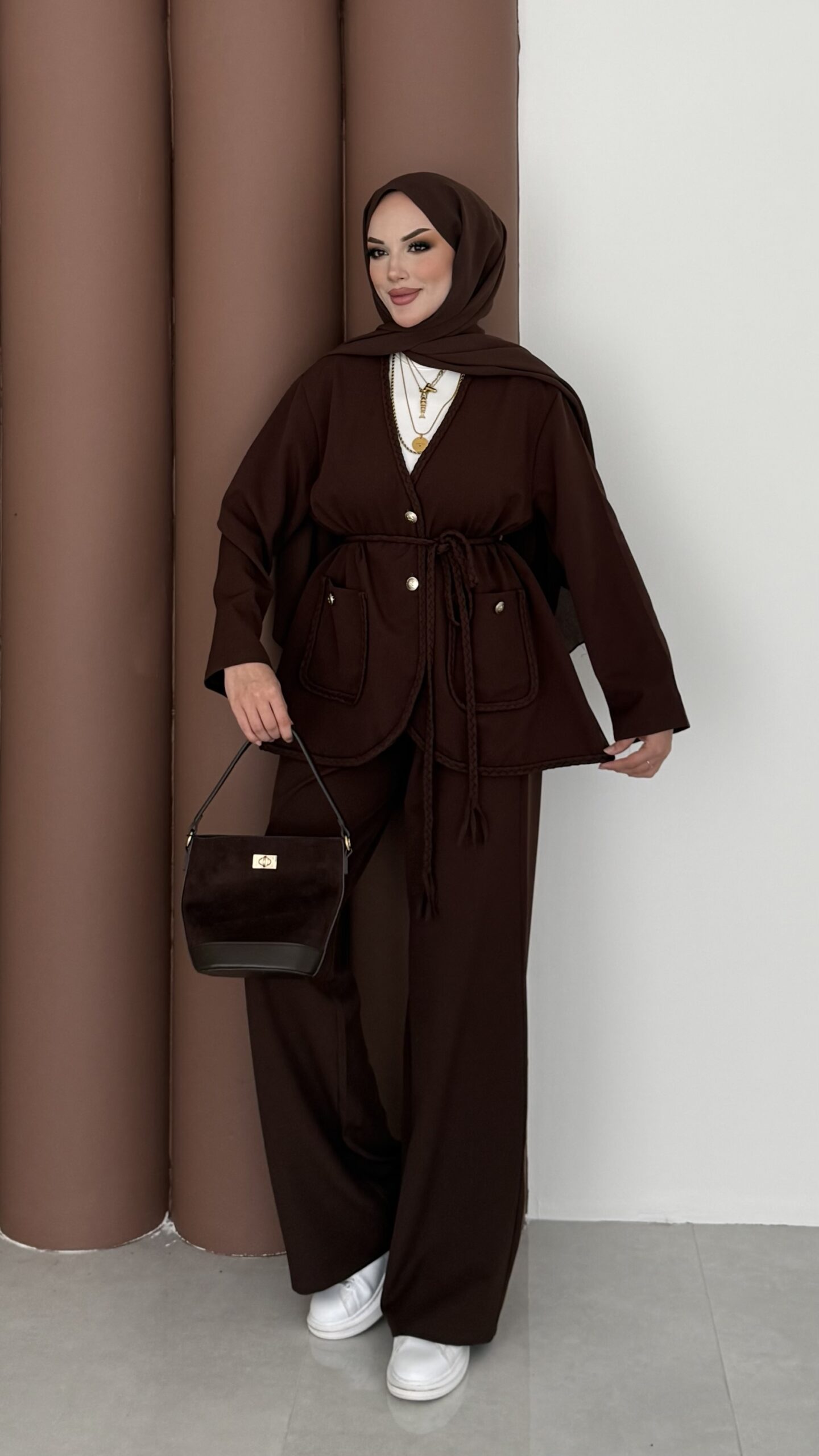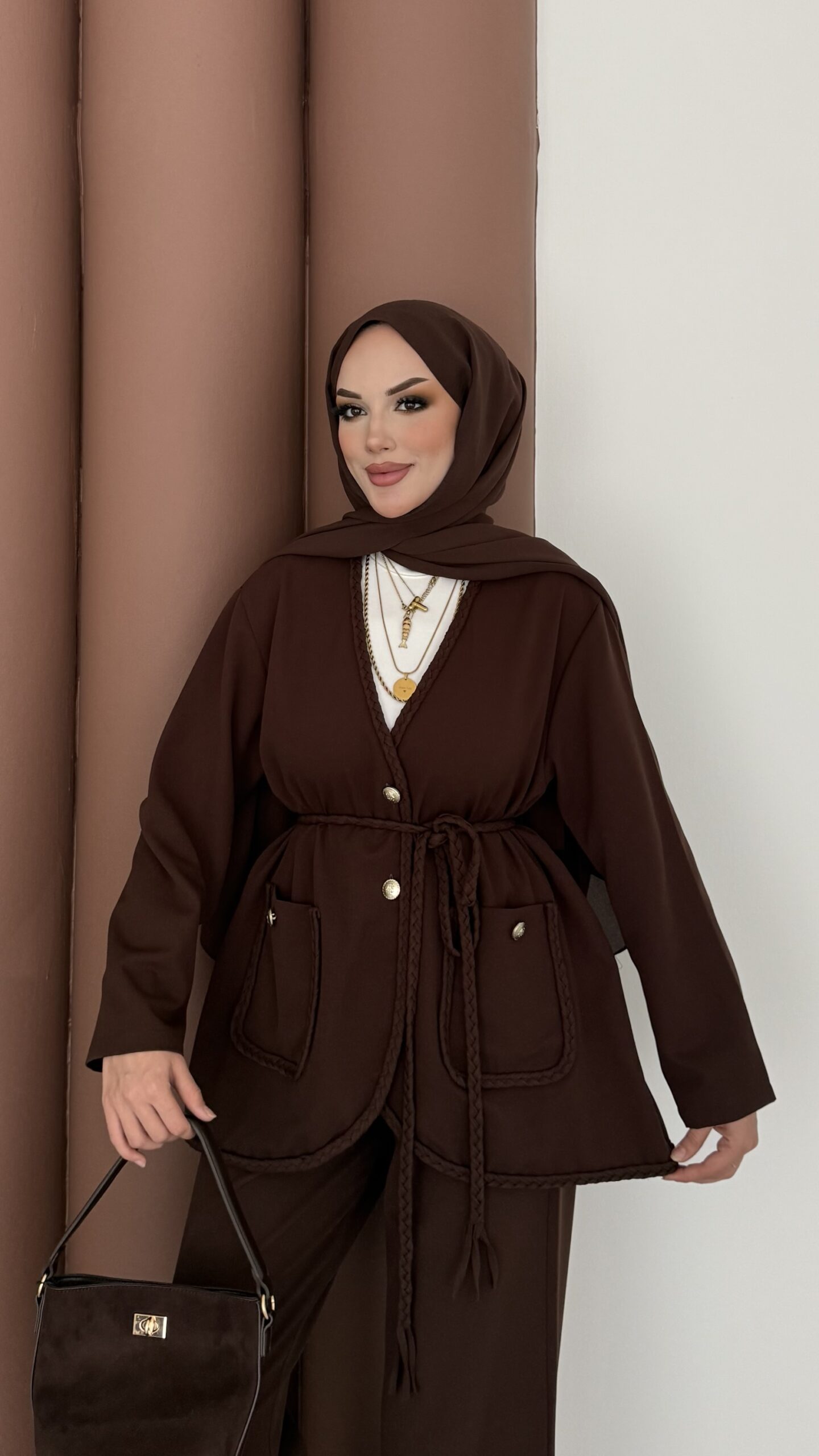 BuQlet Örgü Kemerli İkili Takım – Kahverengi