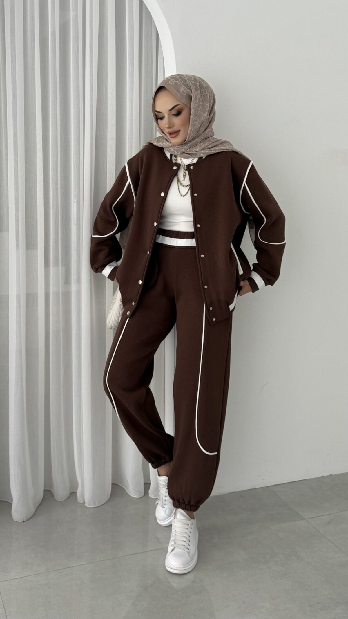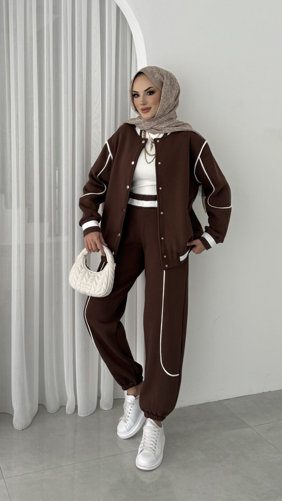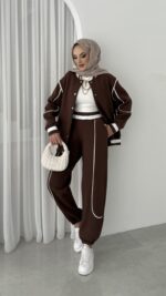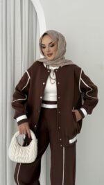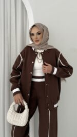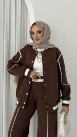 Collej Bomber Şeritli İkili Takım – Kahverengi