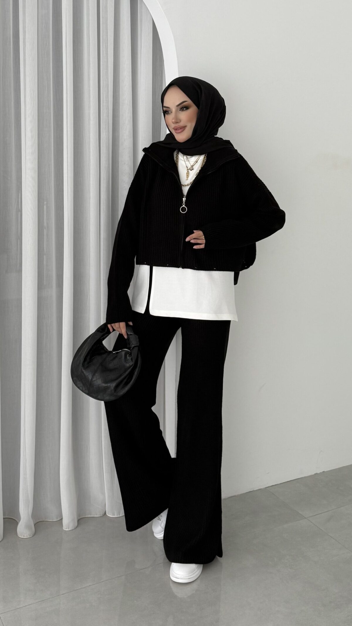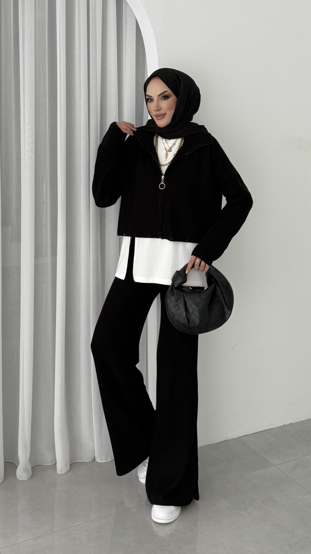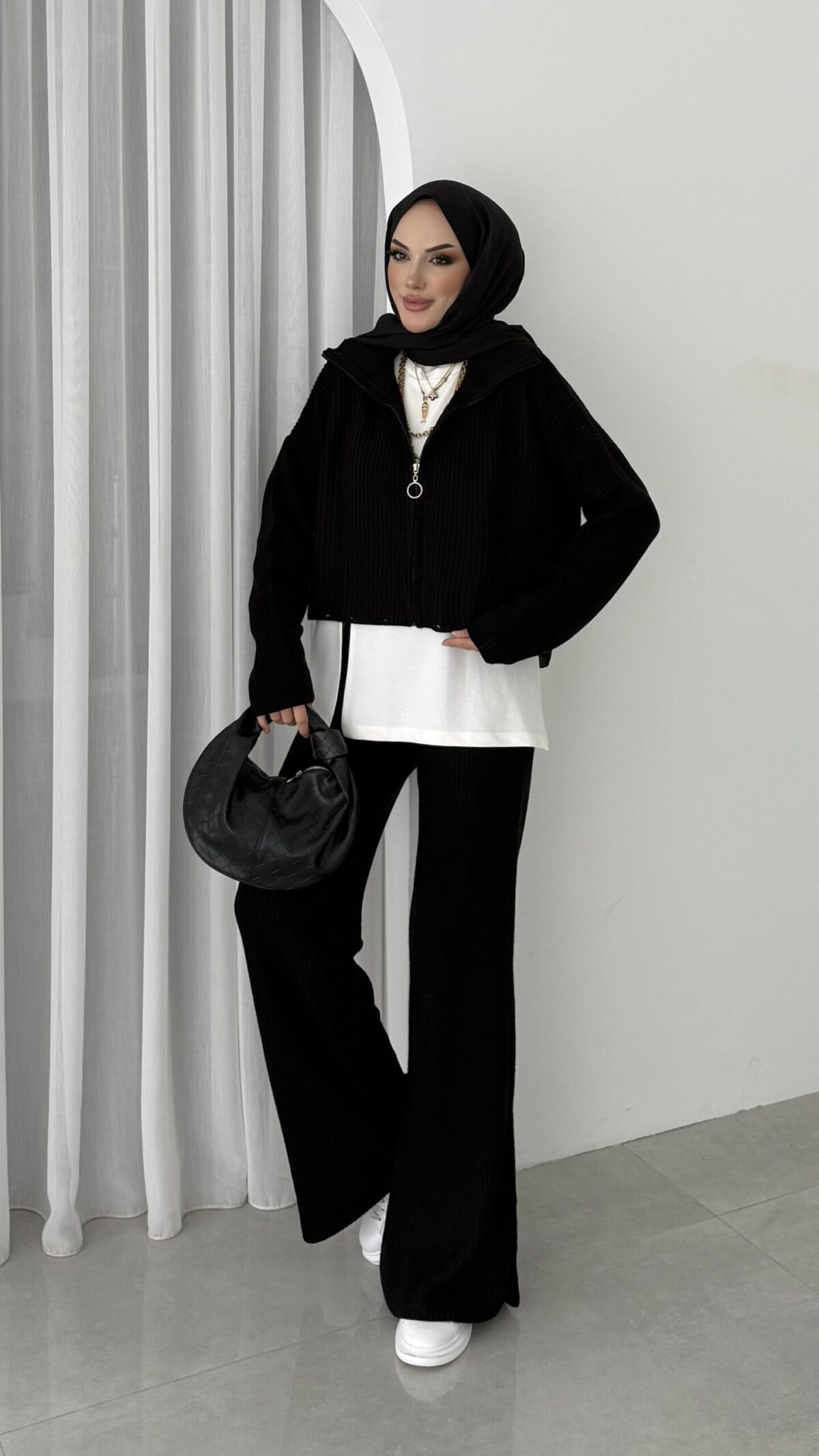 Crop İçlikli Triko Takım – Siyah