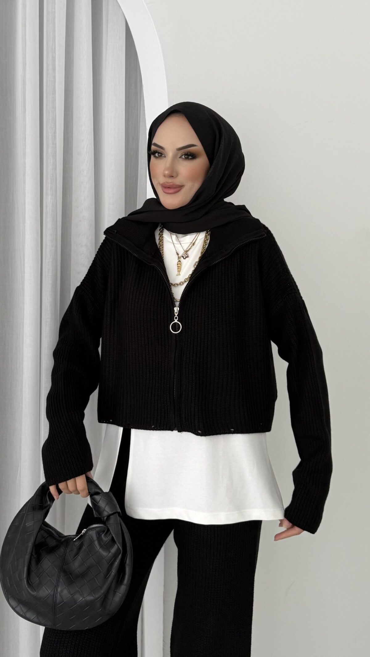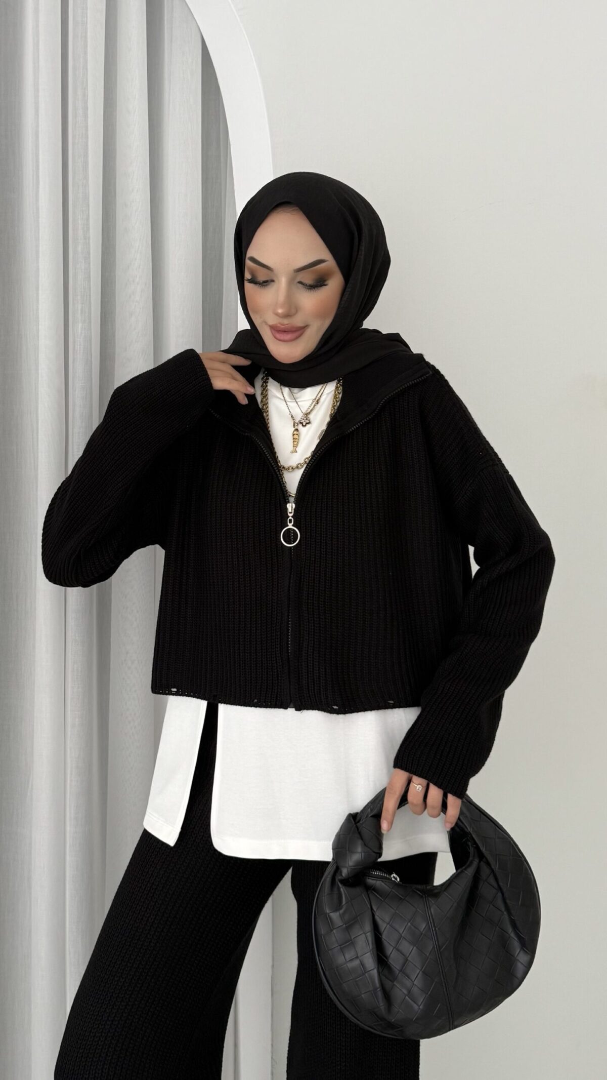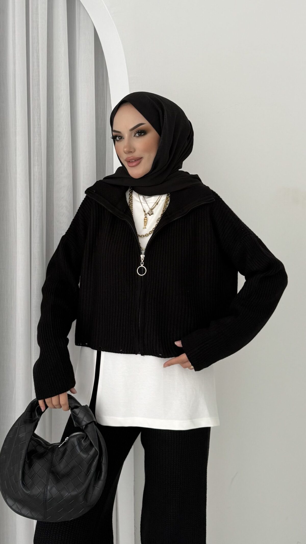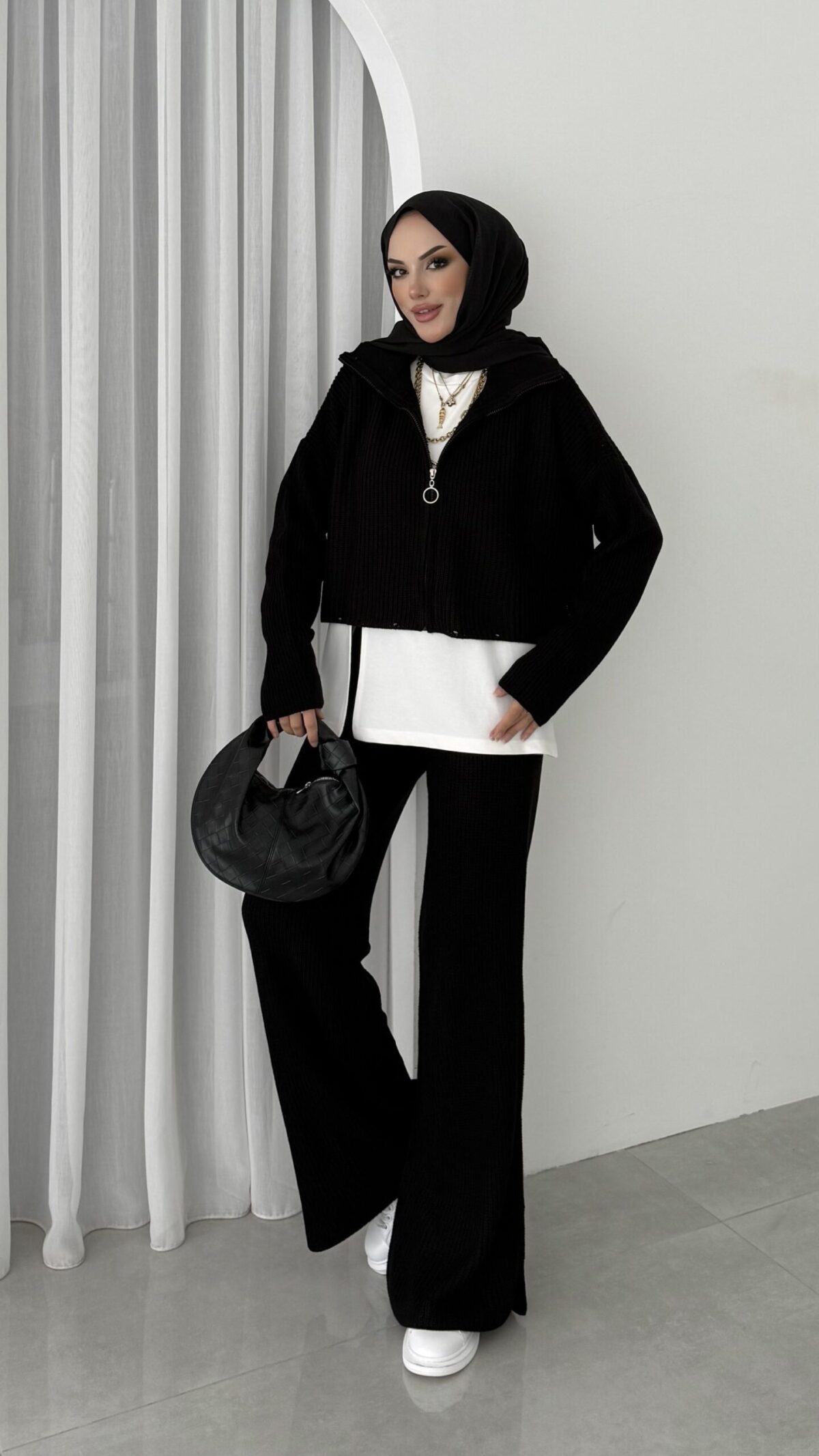 Crop İçlikli Triko Takım – Siyah