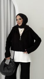 Baklava Desen Muadil Hırka - Siyah