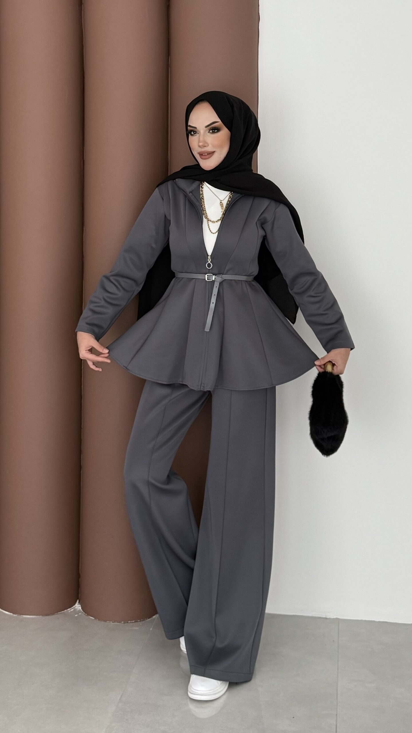 Dark Çift Fermuarlı Denim İkili Takım – Mürdüm