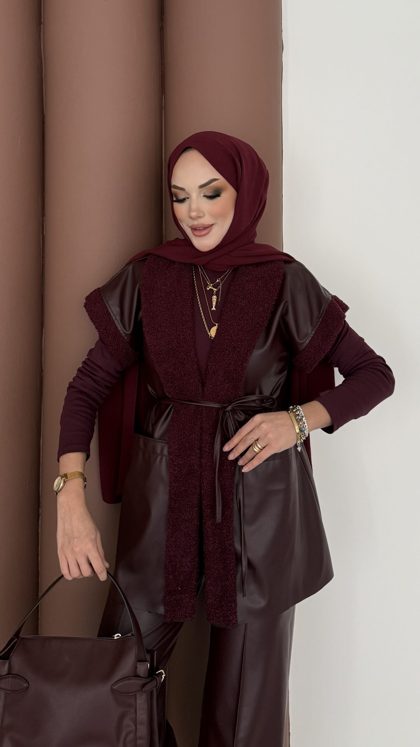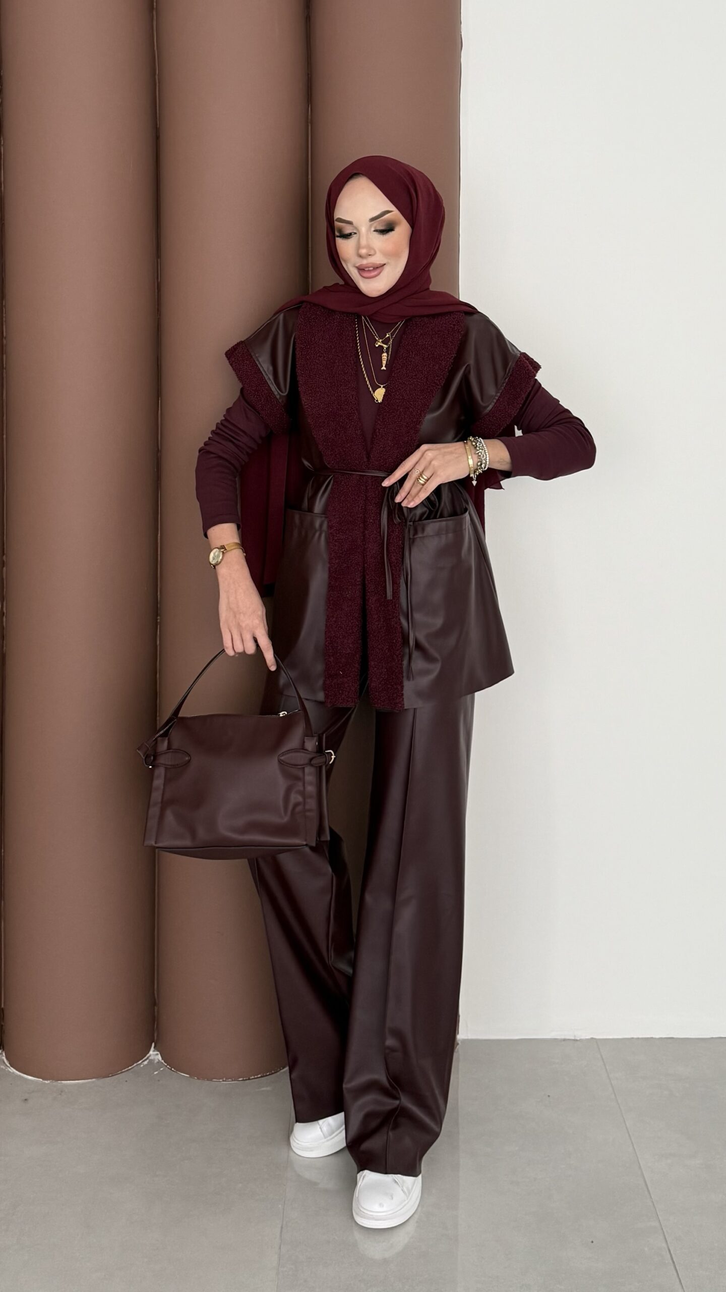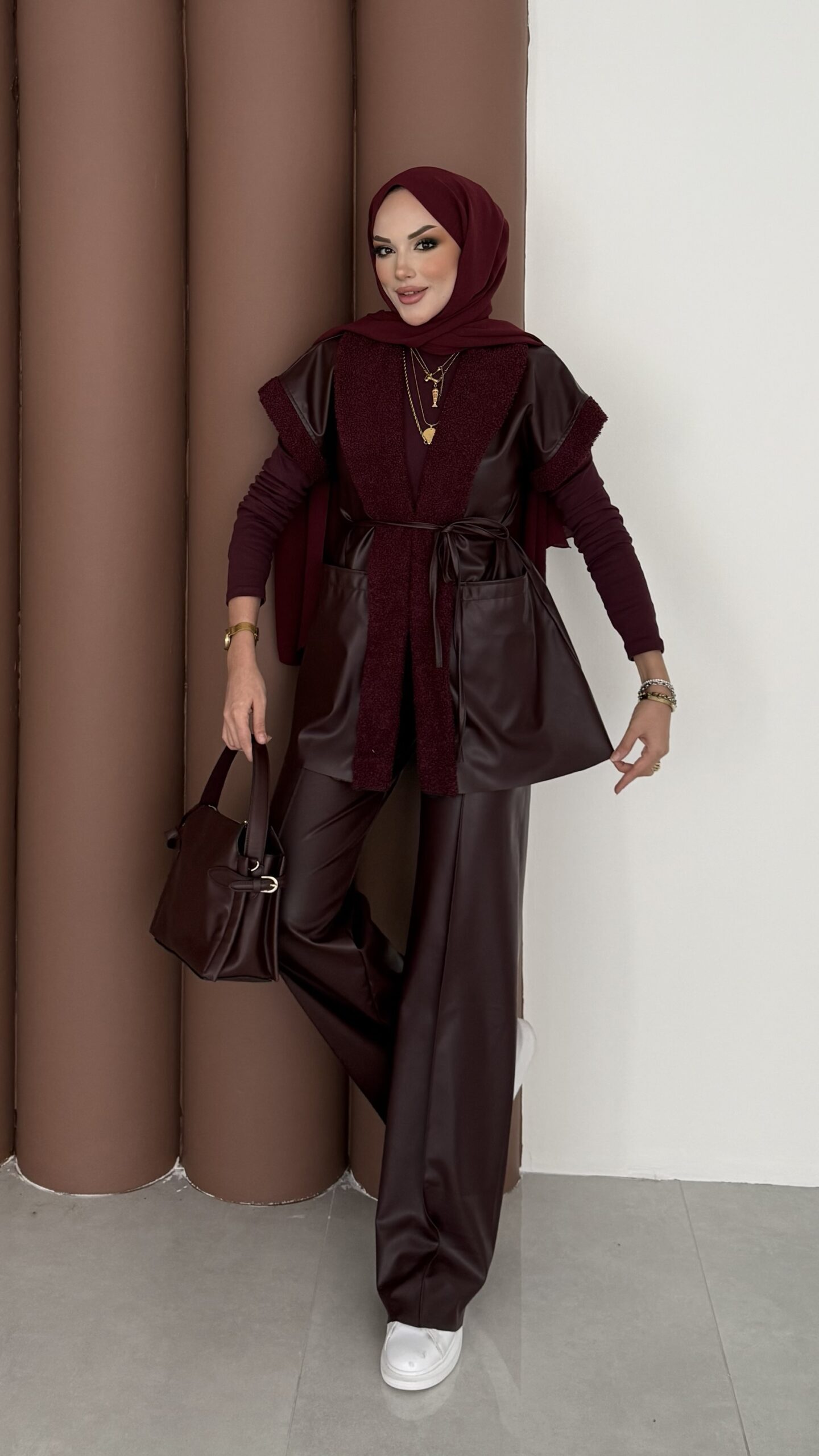 Harmony Premium Peluş Deri İkili Takım – Bordo