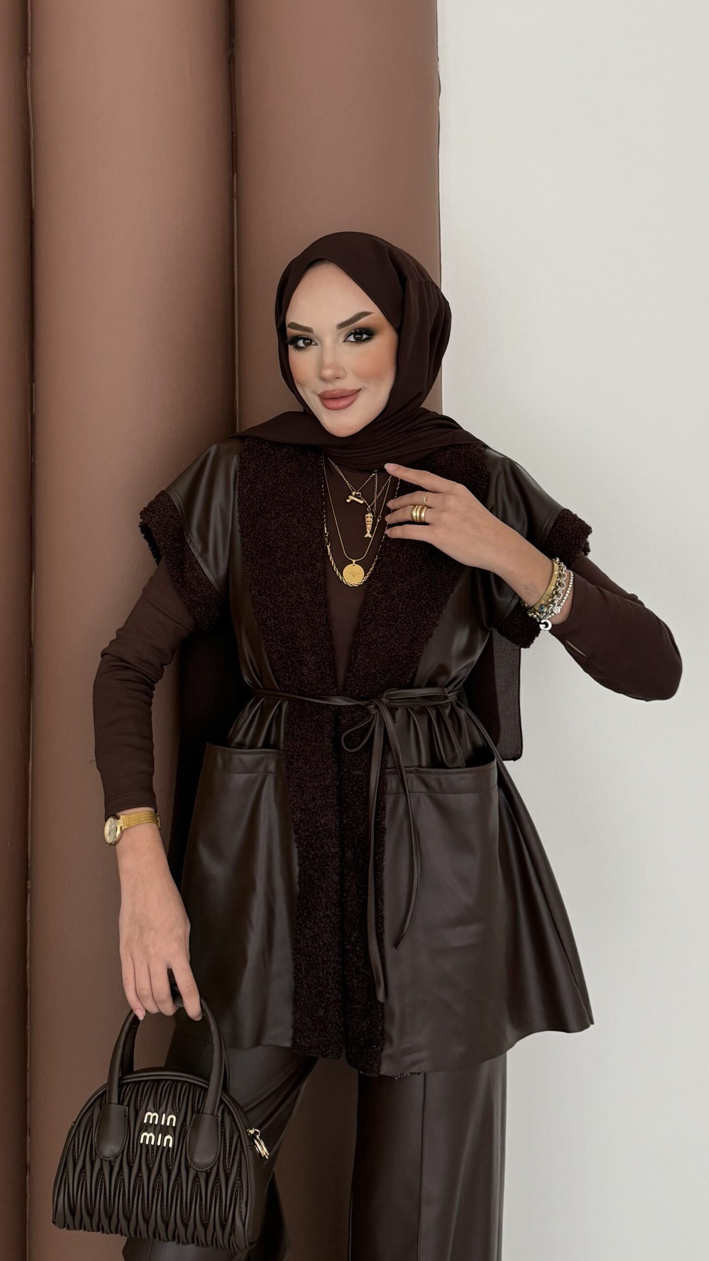 Harmony Premium Peluş Deri İkili Takım – Kahverengi