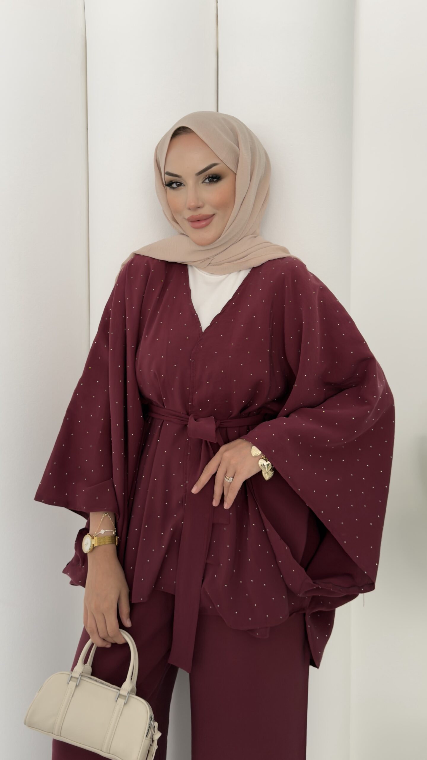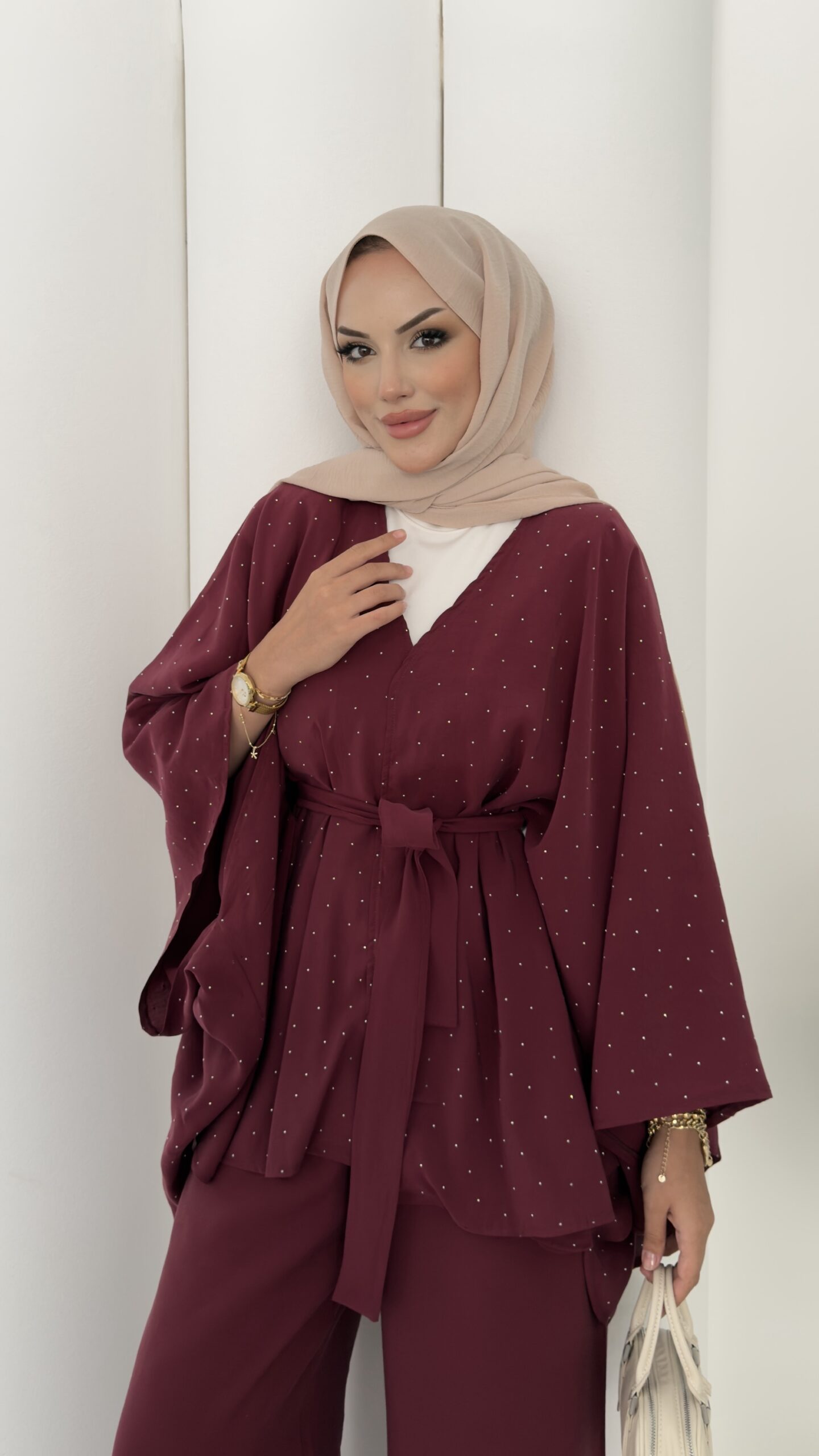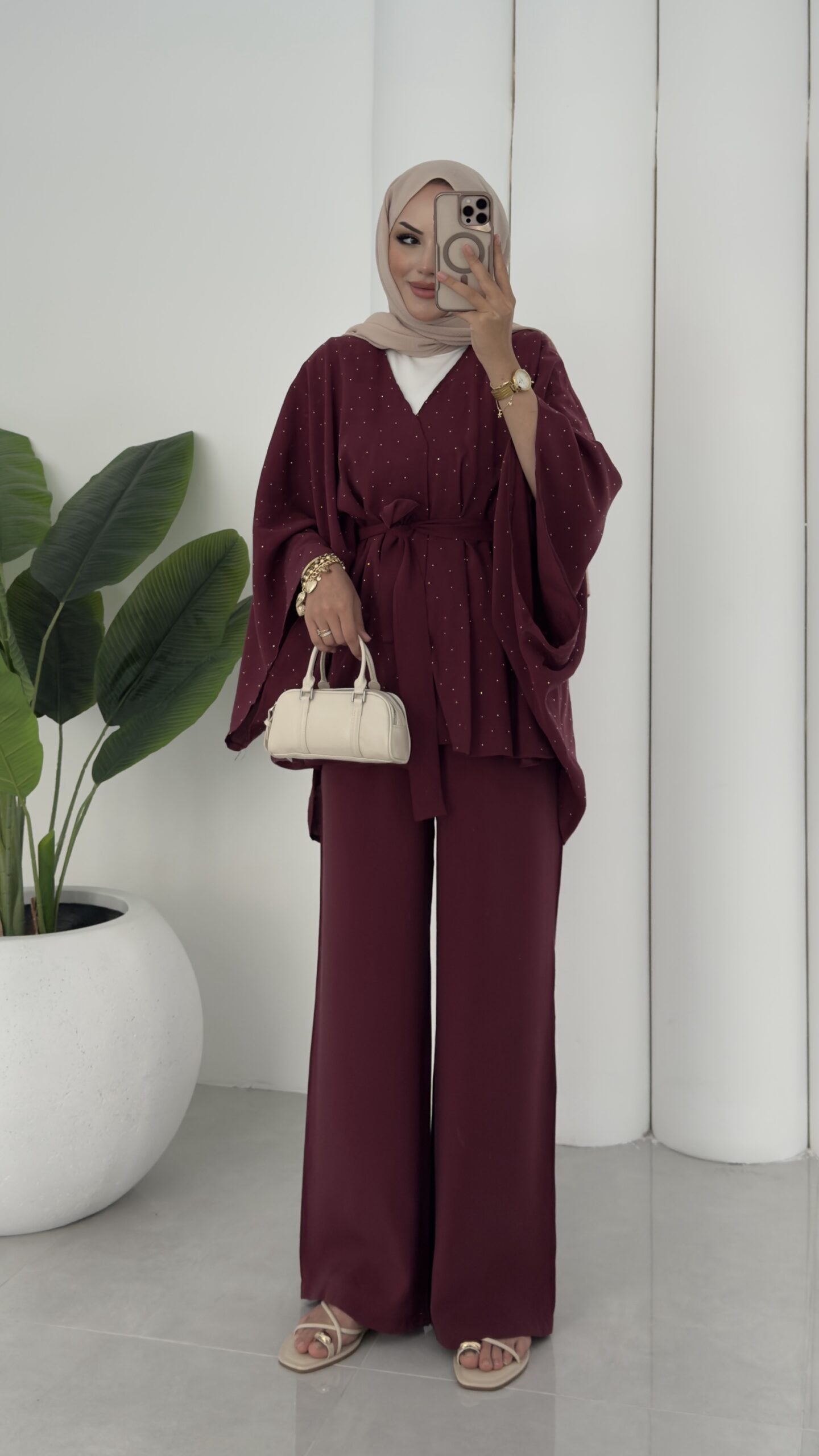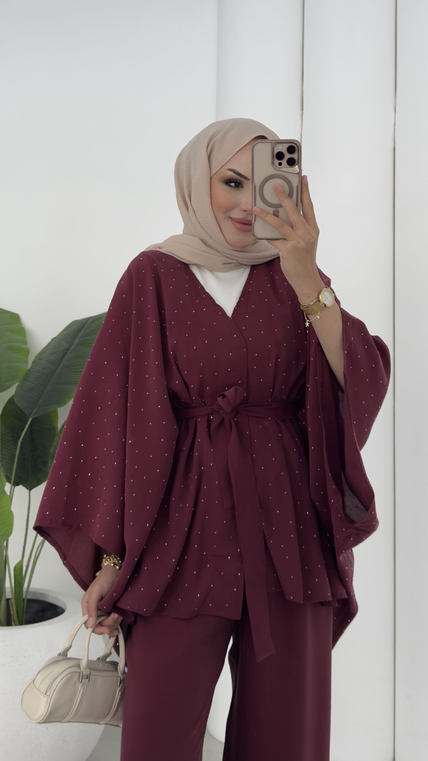 Hollywood Taşlı Kimono İkili Takım – Mürdüm