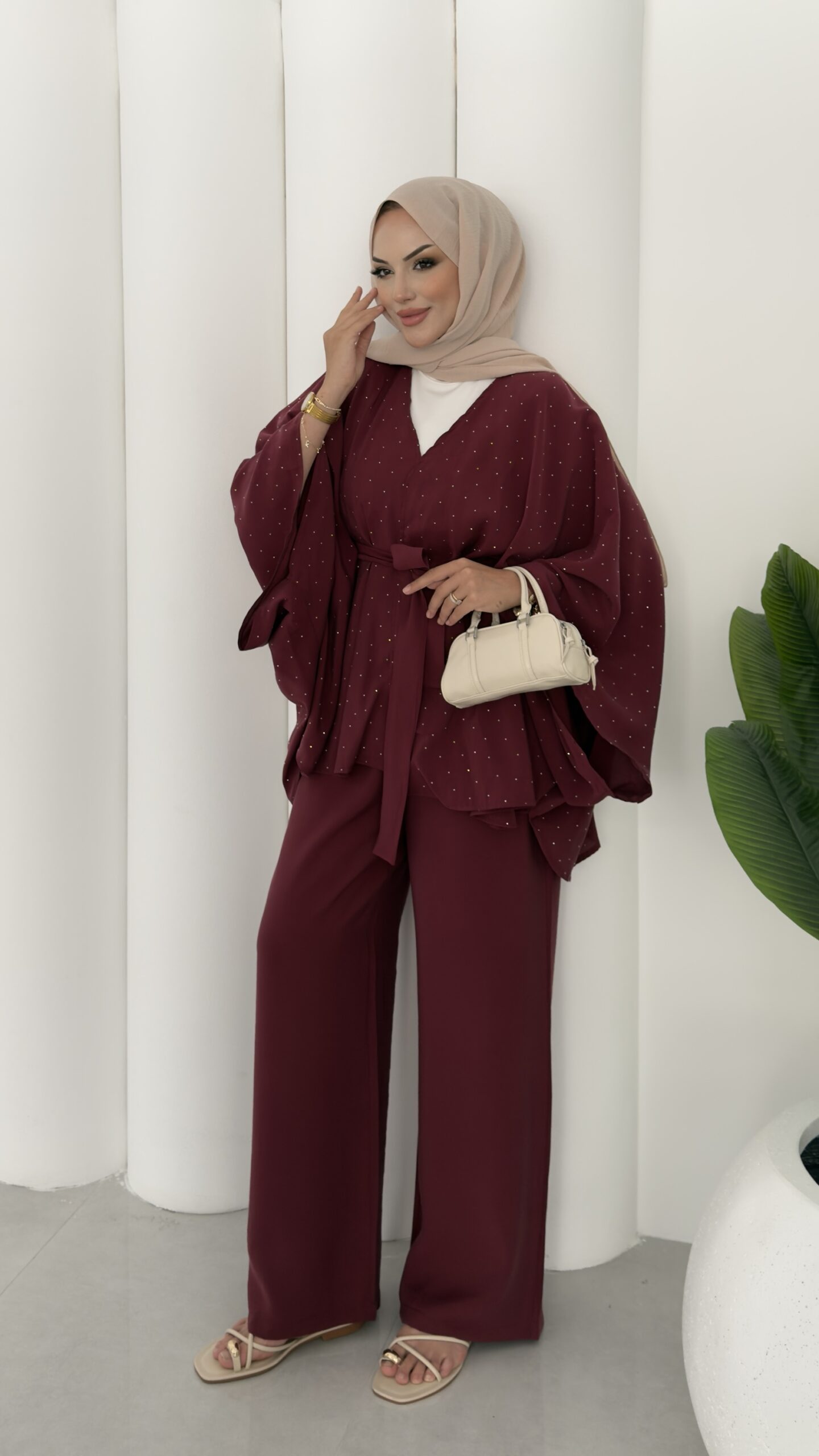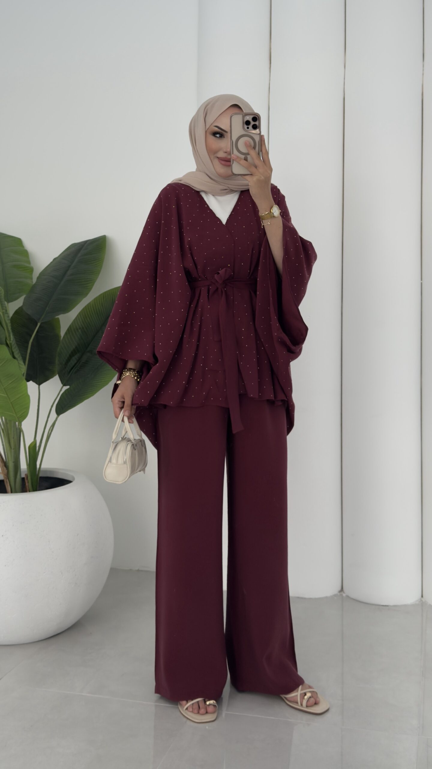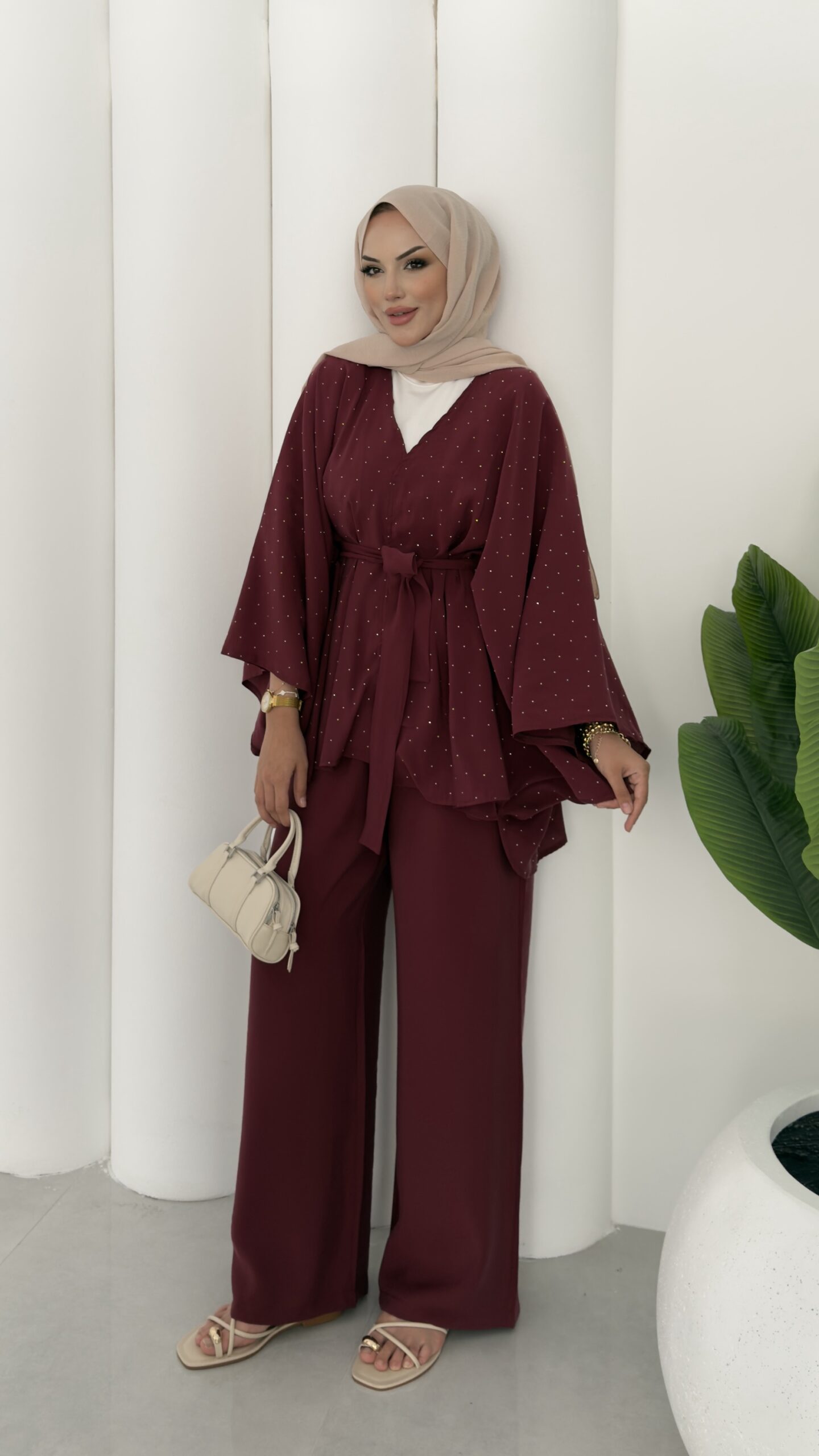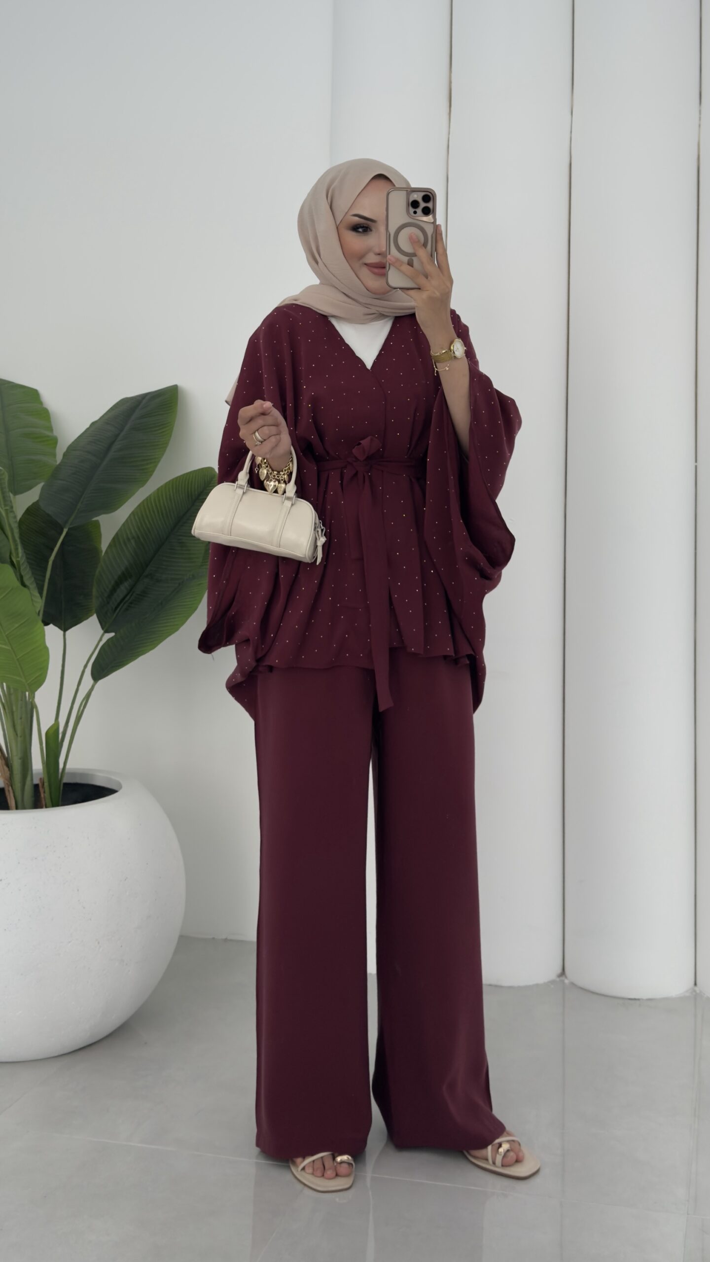 Hollywood Taşlı Kimono İkili Takım – Mürdüm