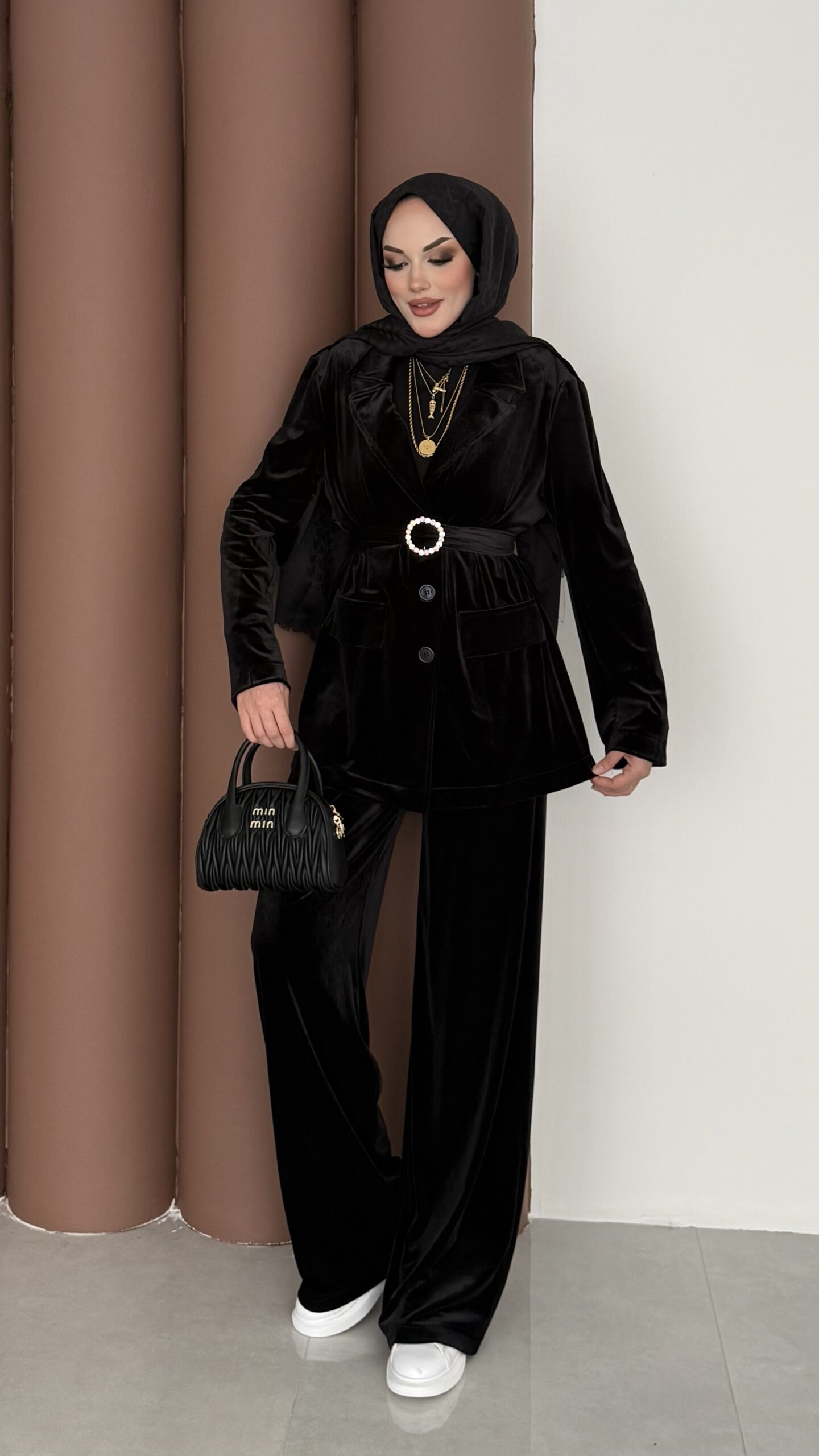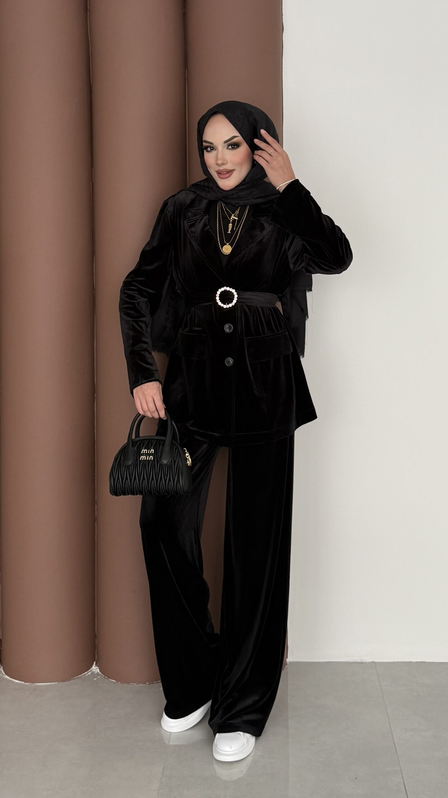 İconic Kadife Blazer İkili Takım – Siyah