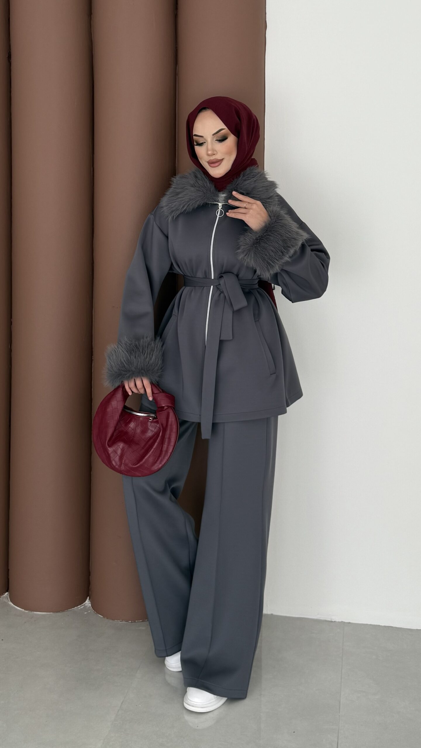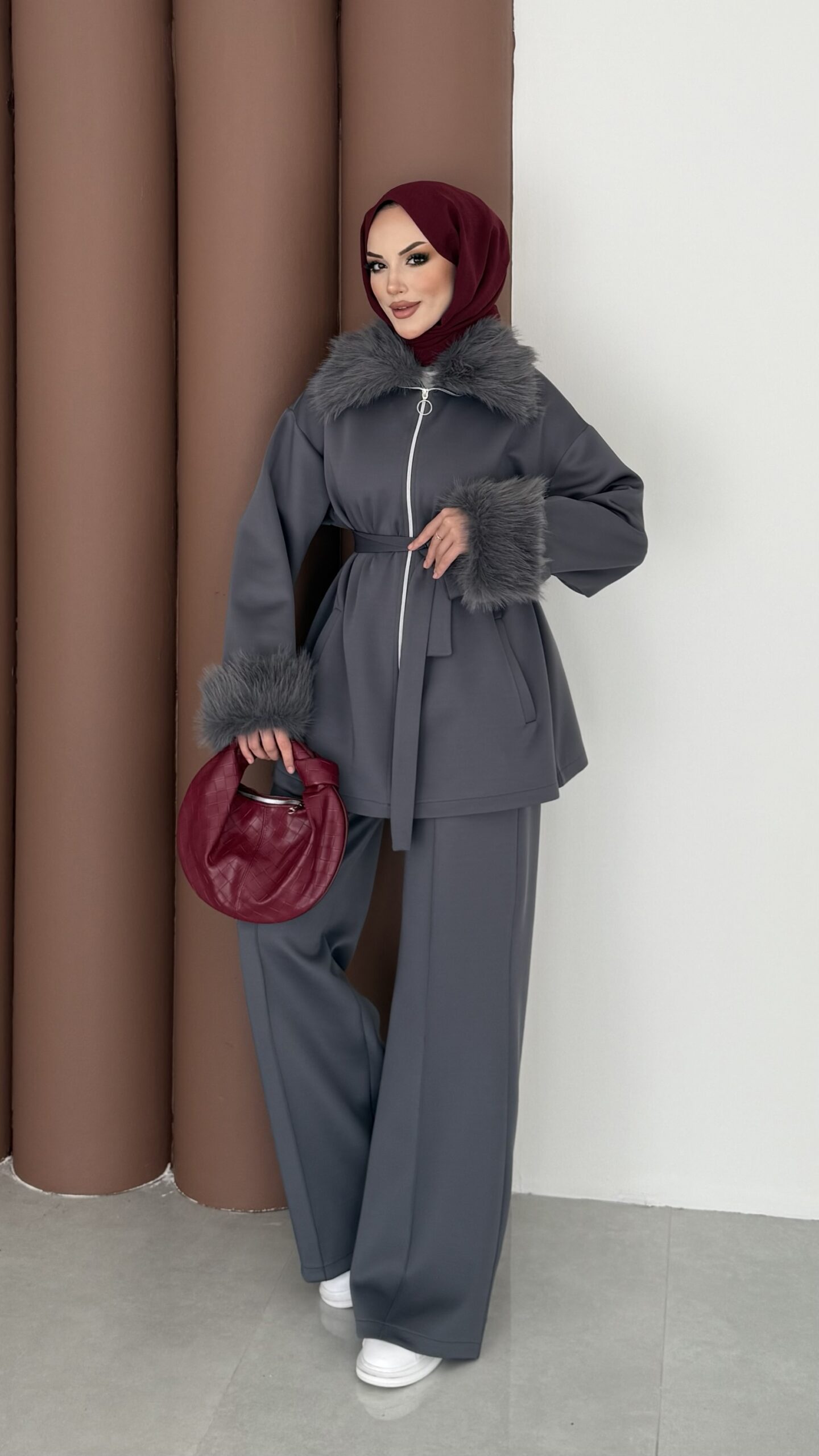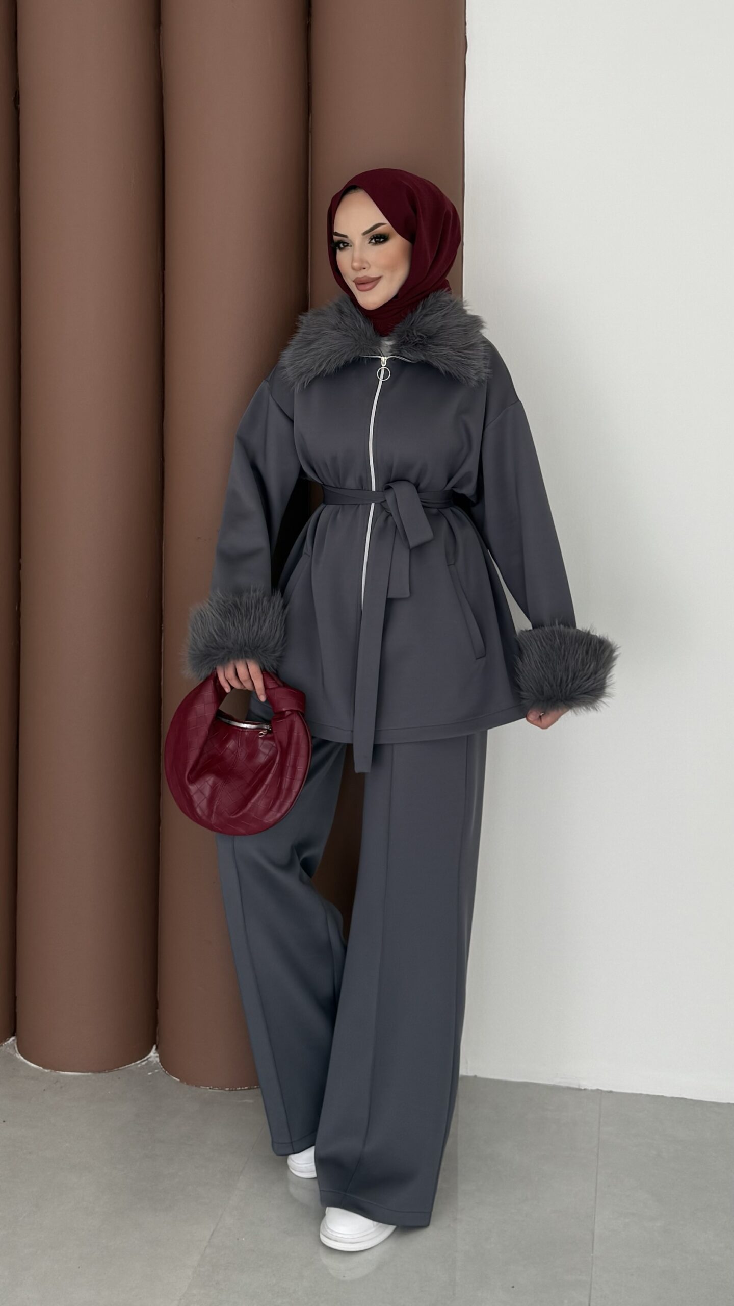 Luxury Kürklü Scuba İkli Takım – Antrasit