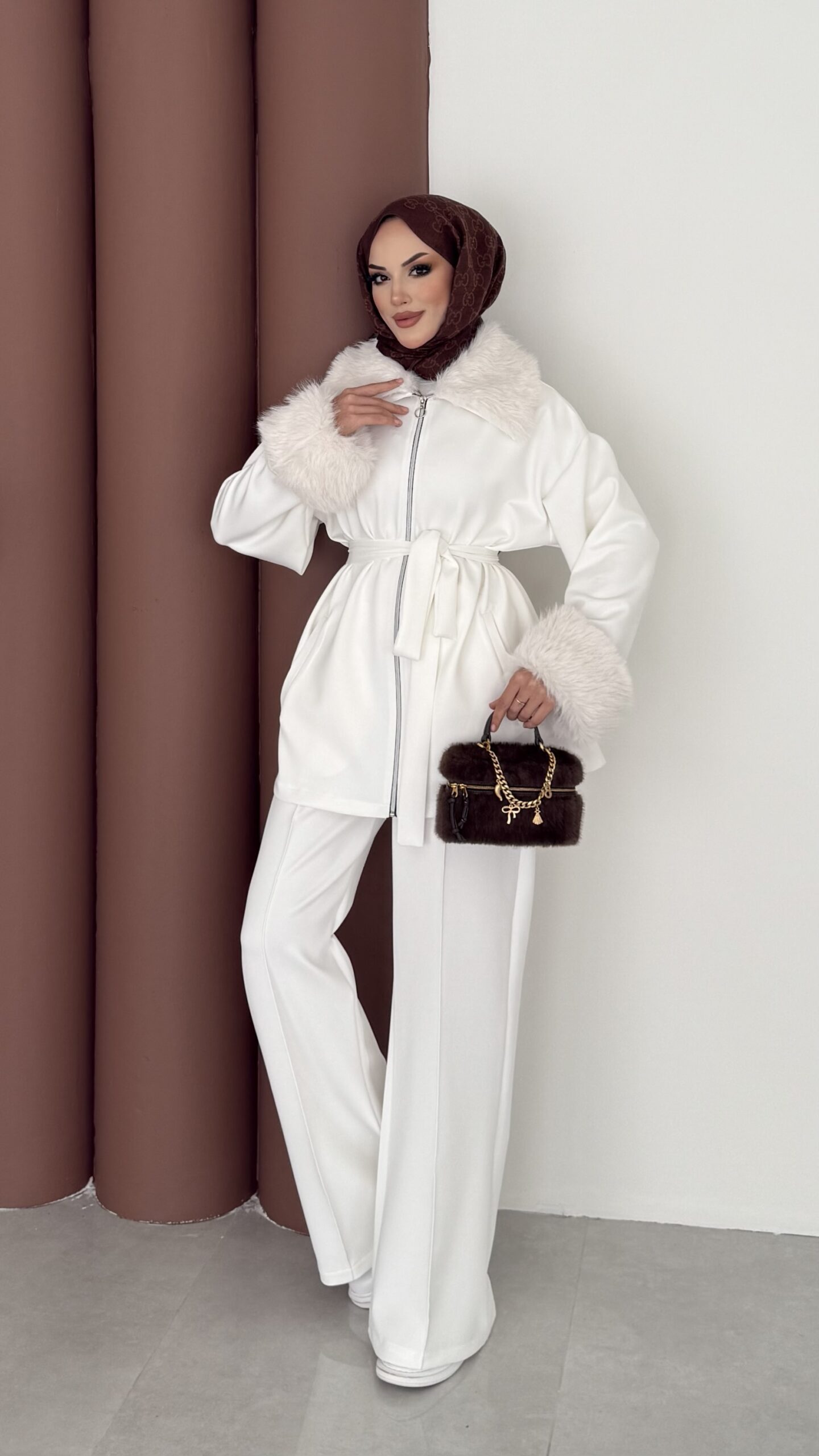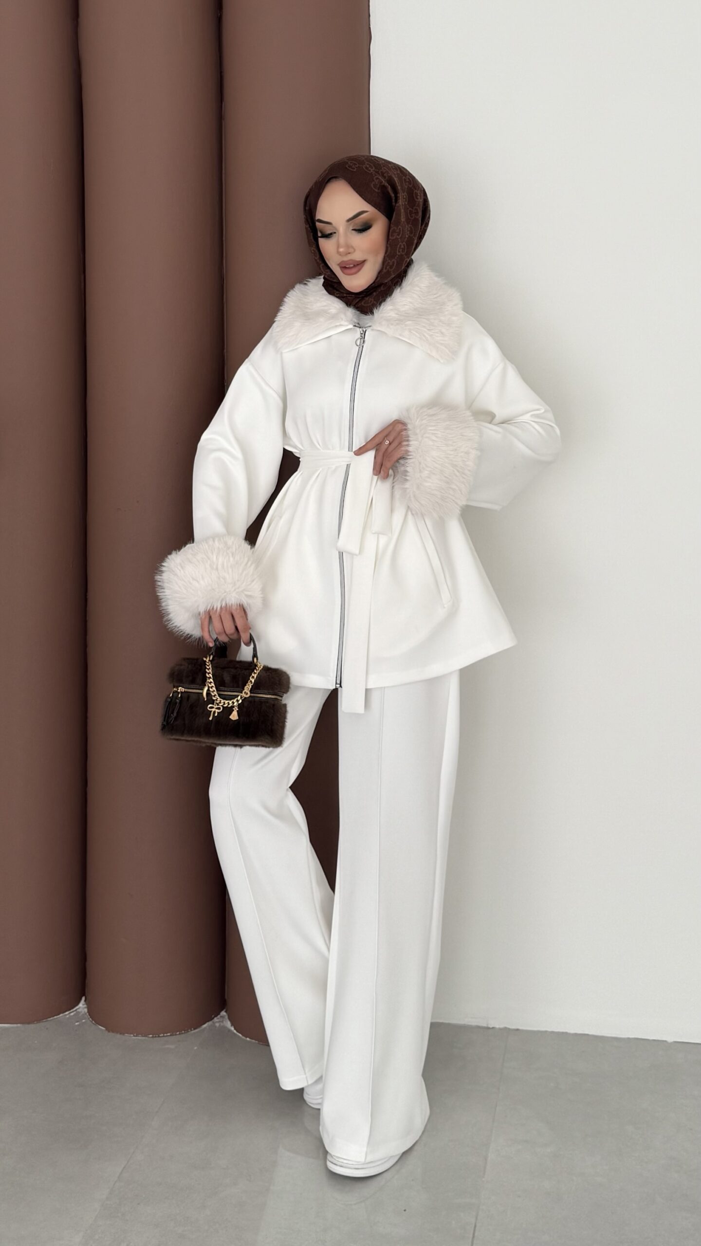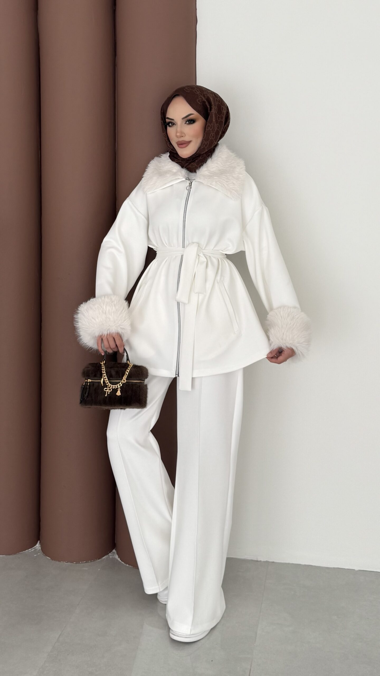 Luxury Kürklü Scuba İkli Takım – Beyaz