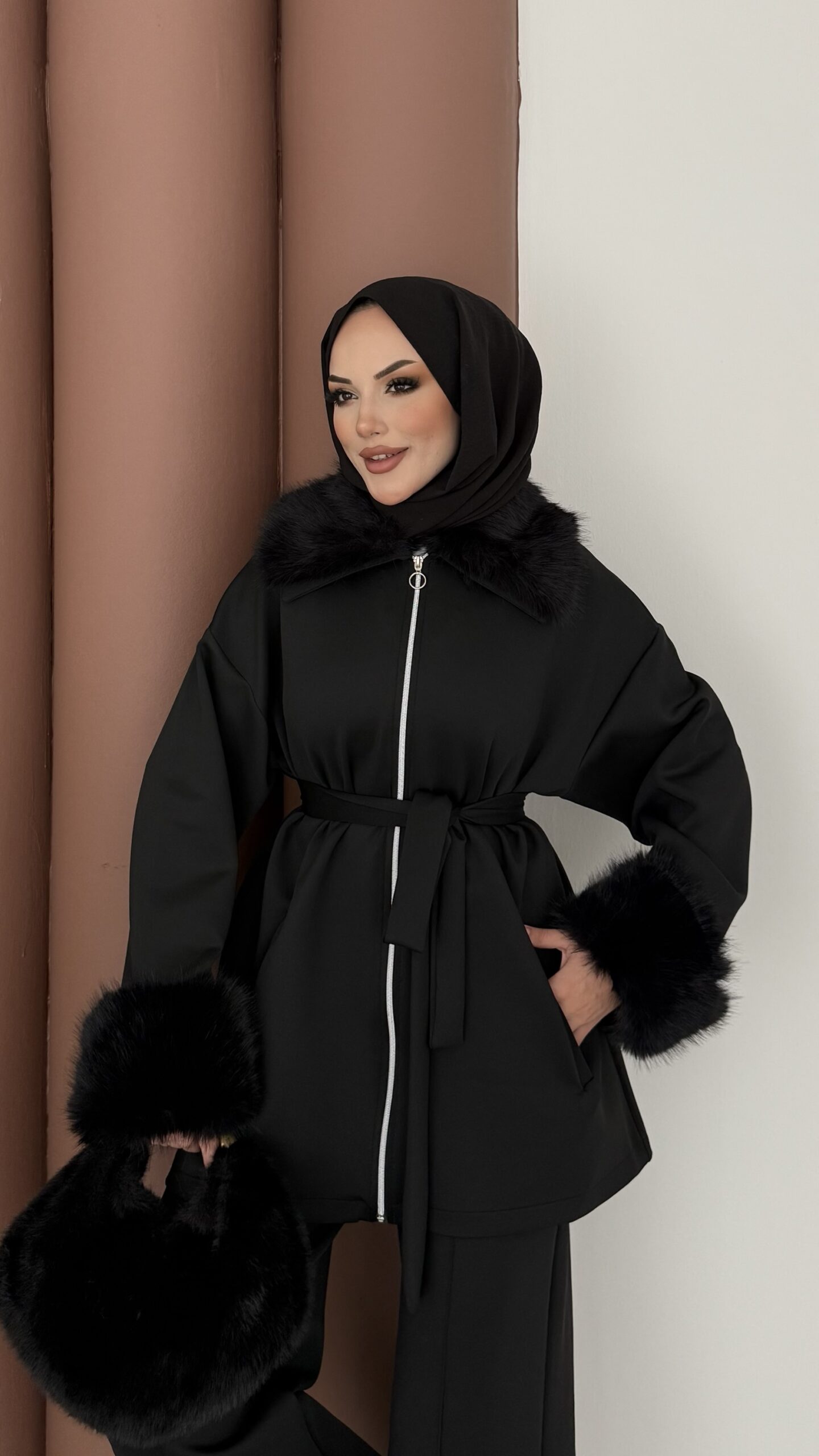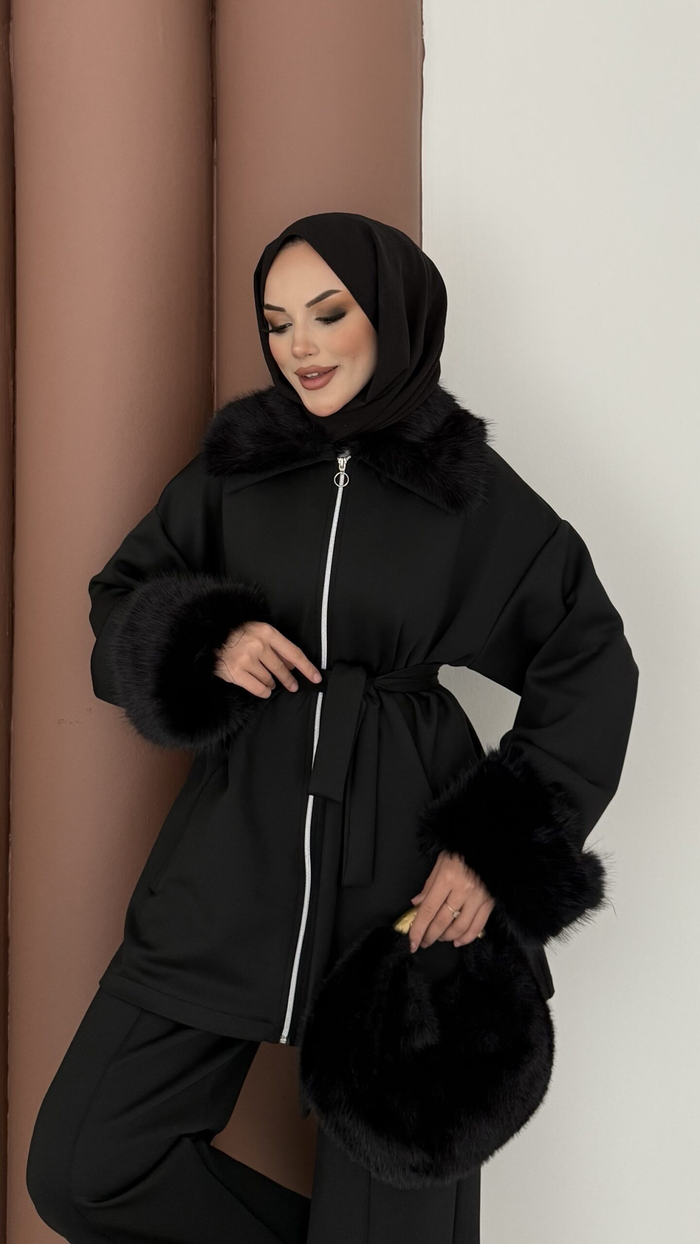 Luxury Kürklü Scuba İkli Takım – Siyah