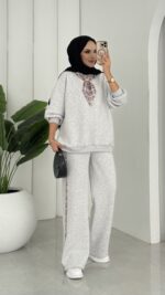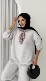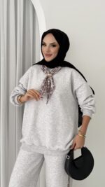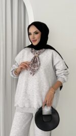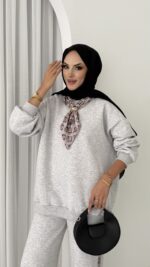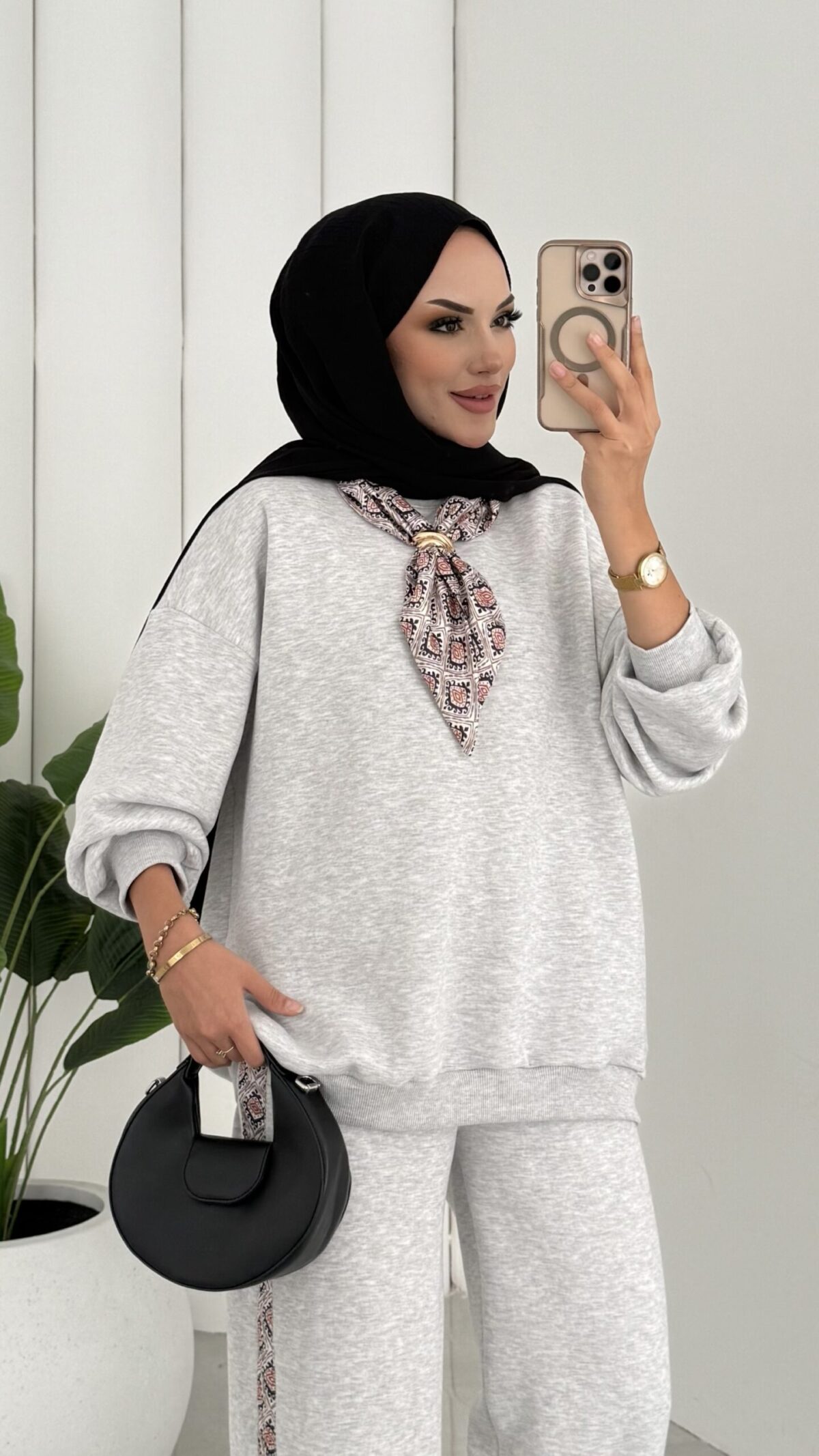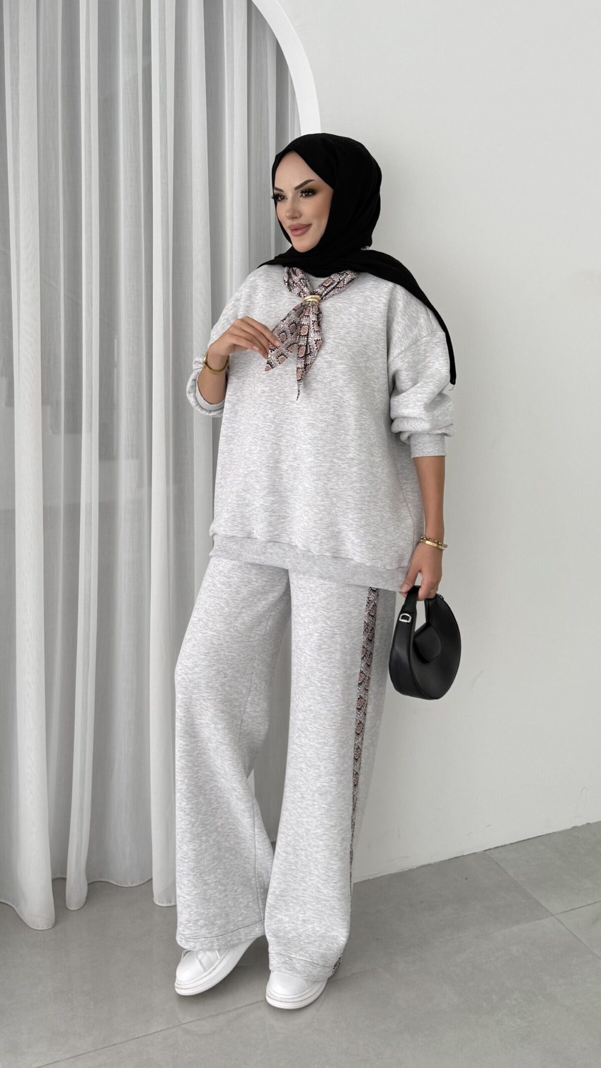 Fular Detaylı Şardonlu Sweat İkili Takım – Gri