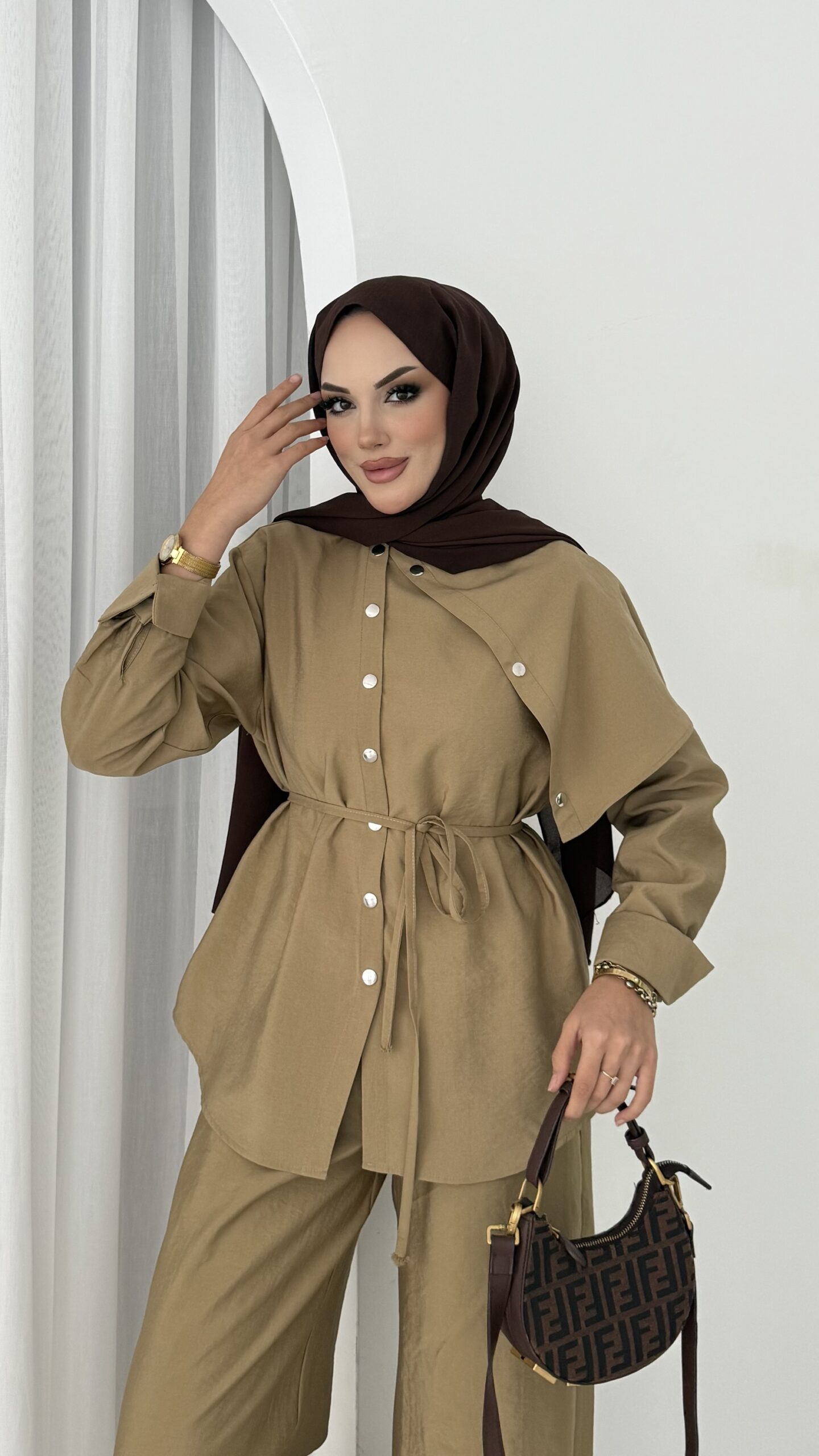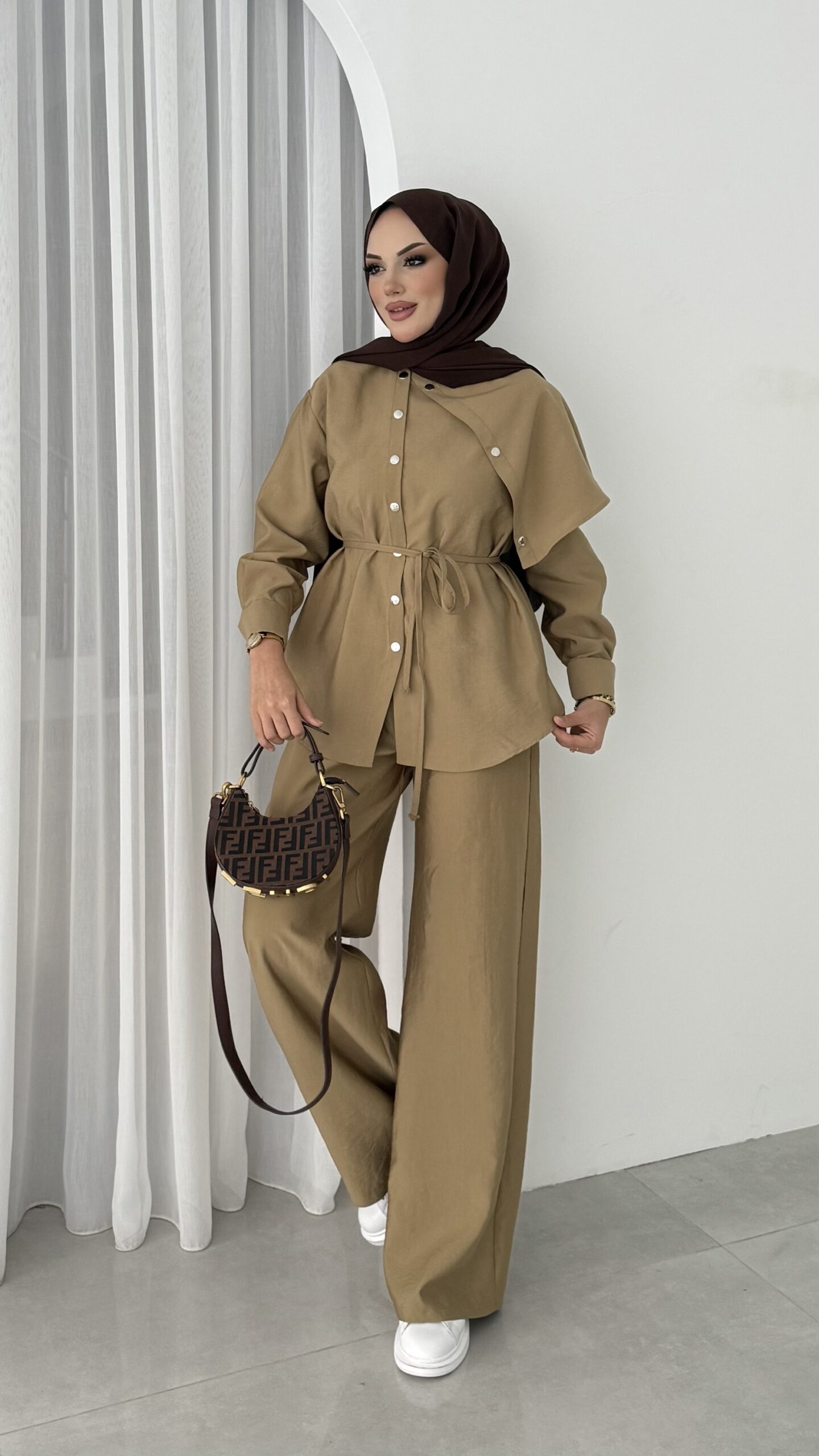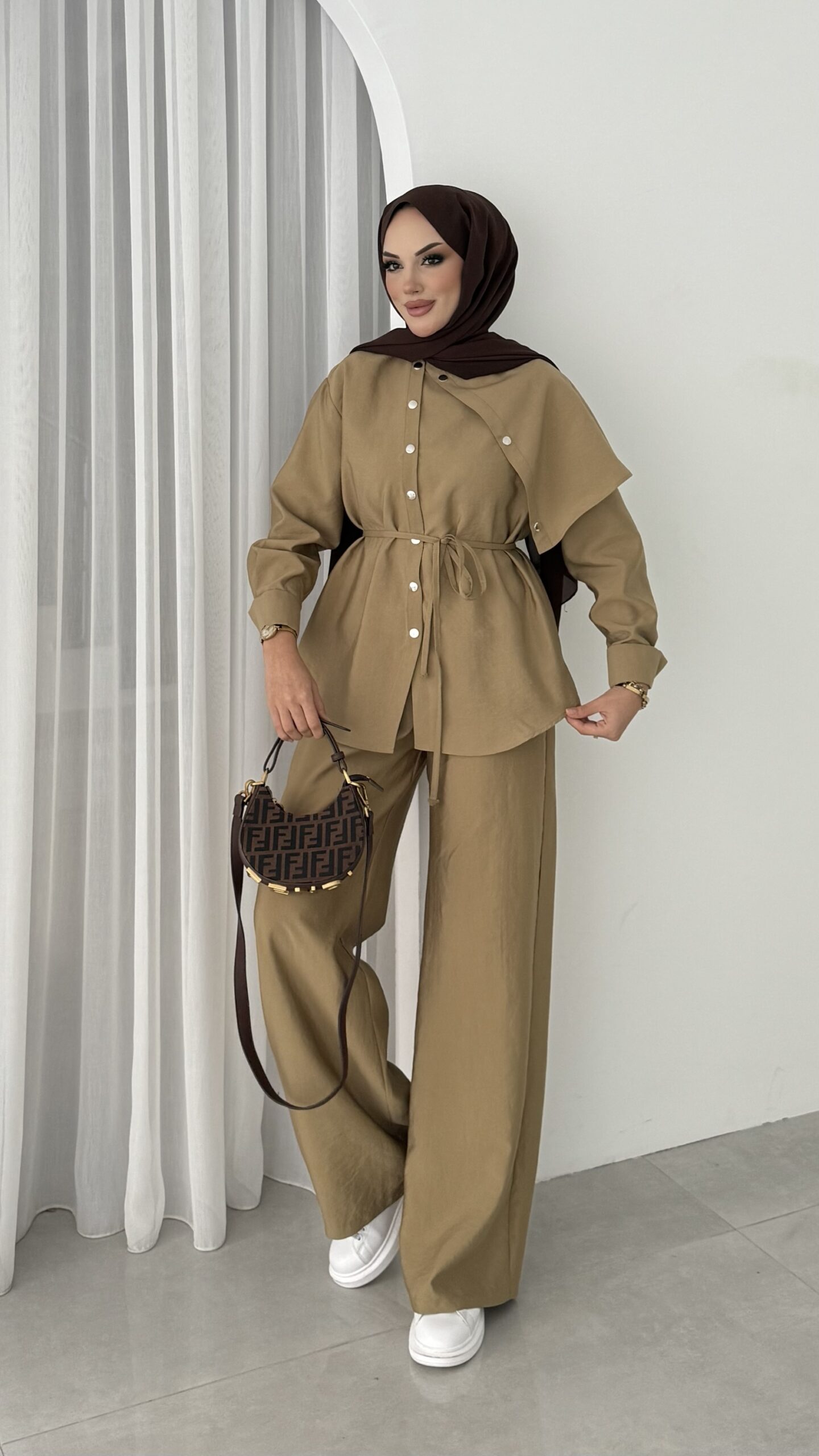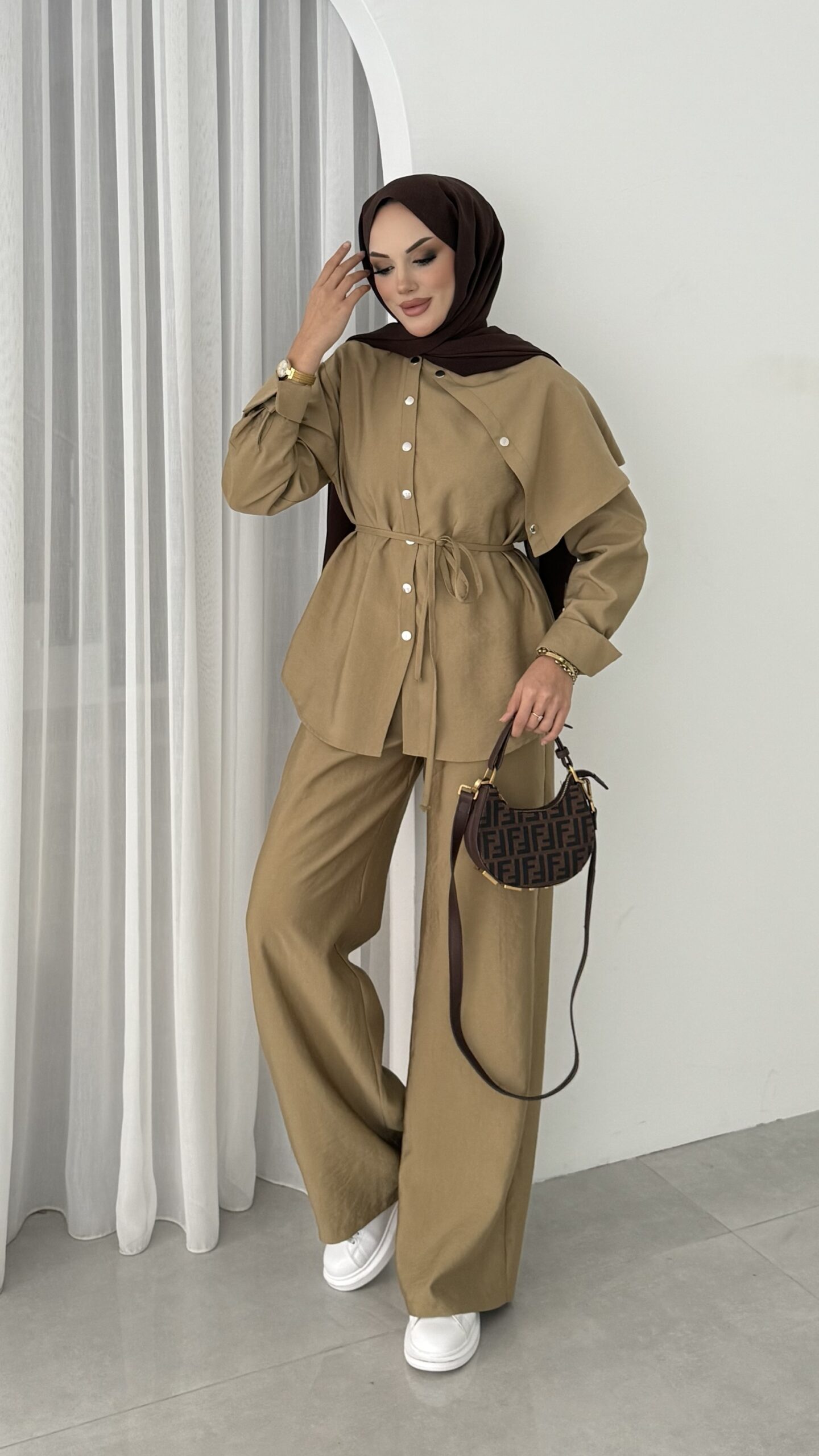 Qatar Fırfırlı Beli Lastikli Takım – Bej