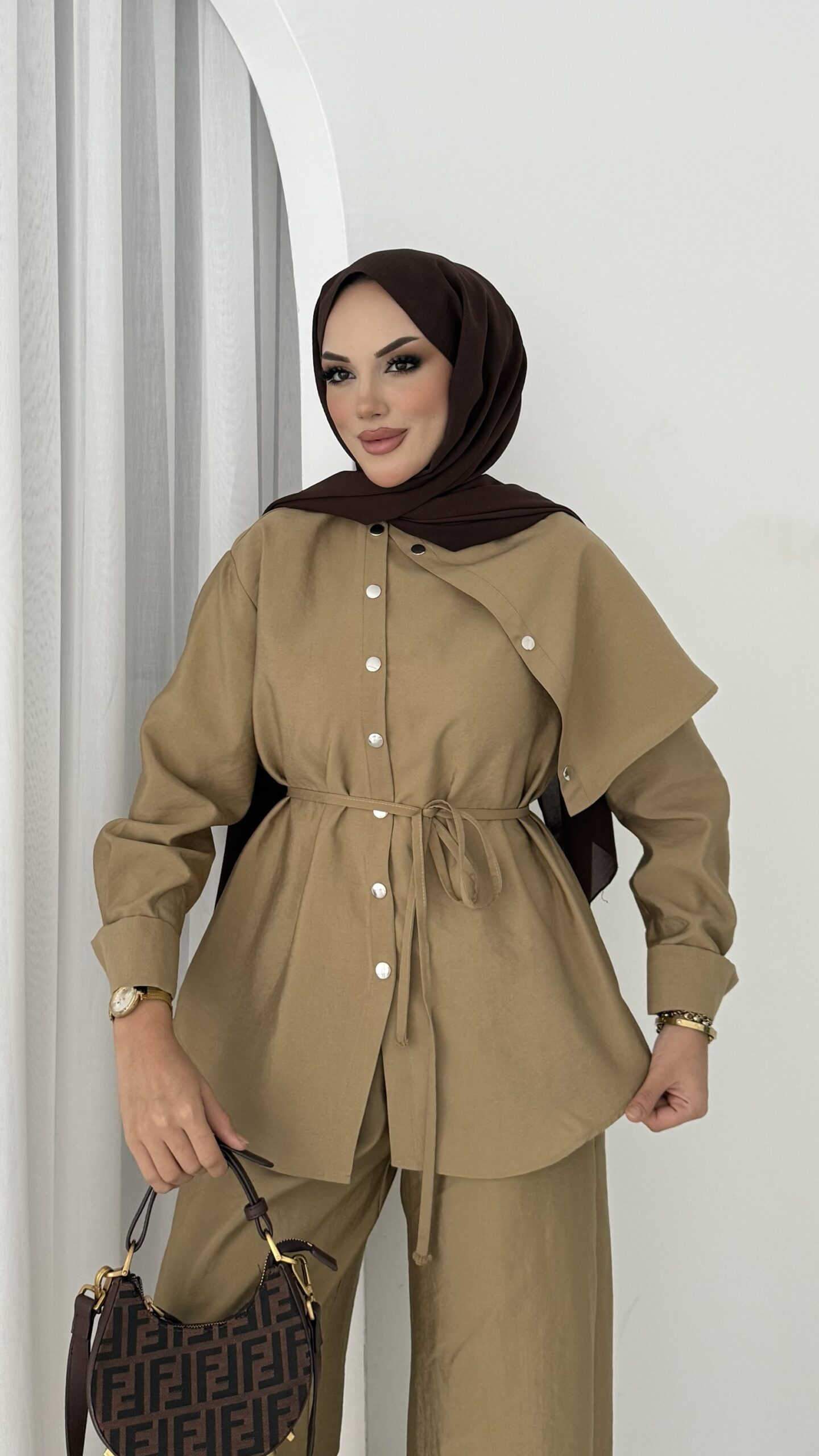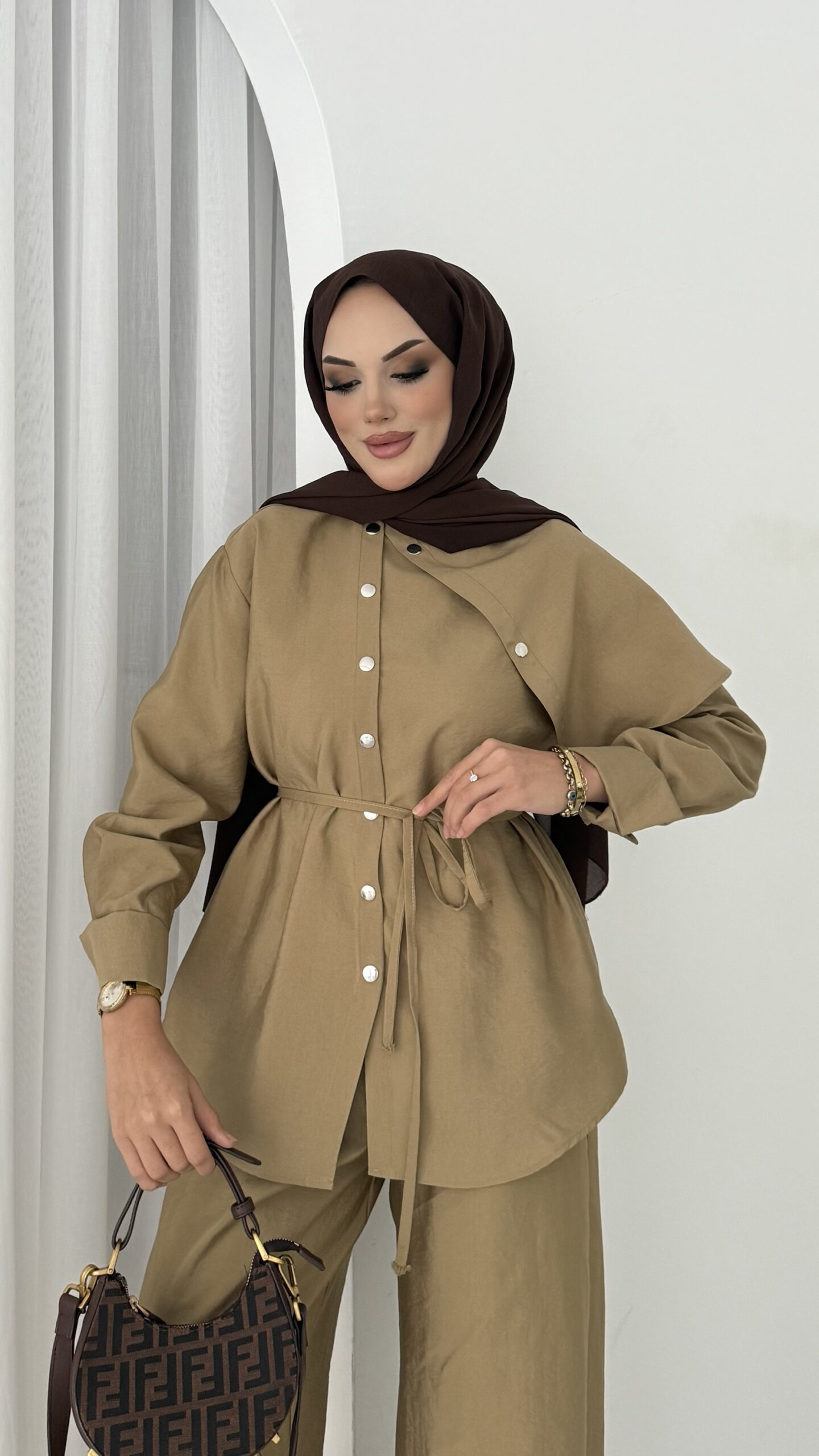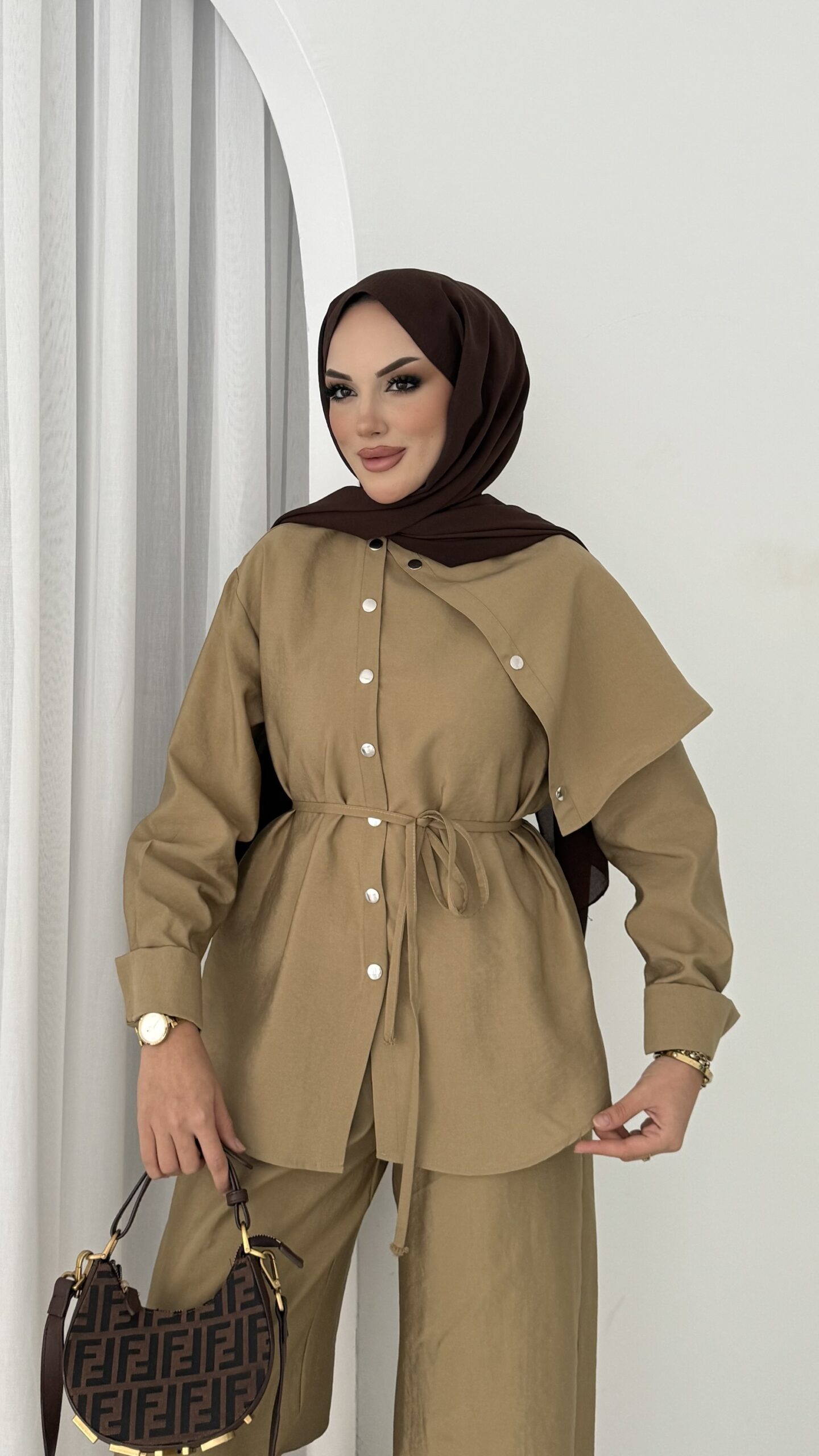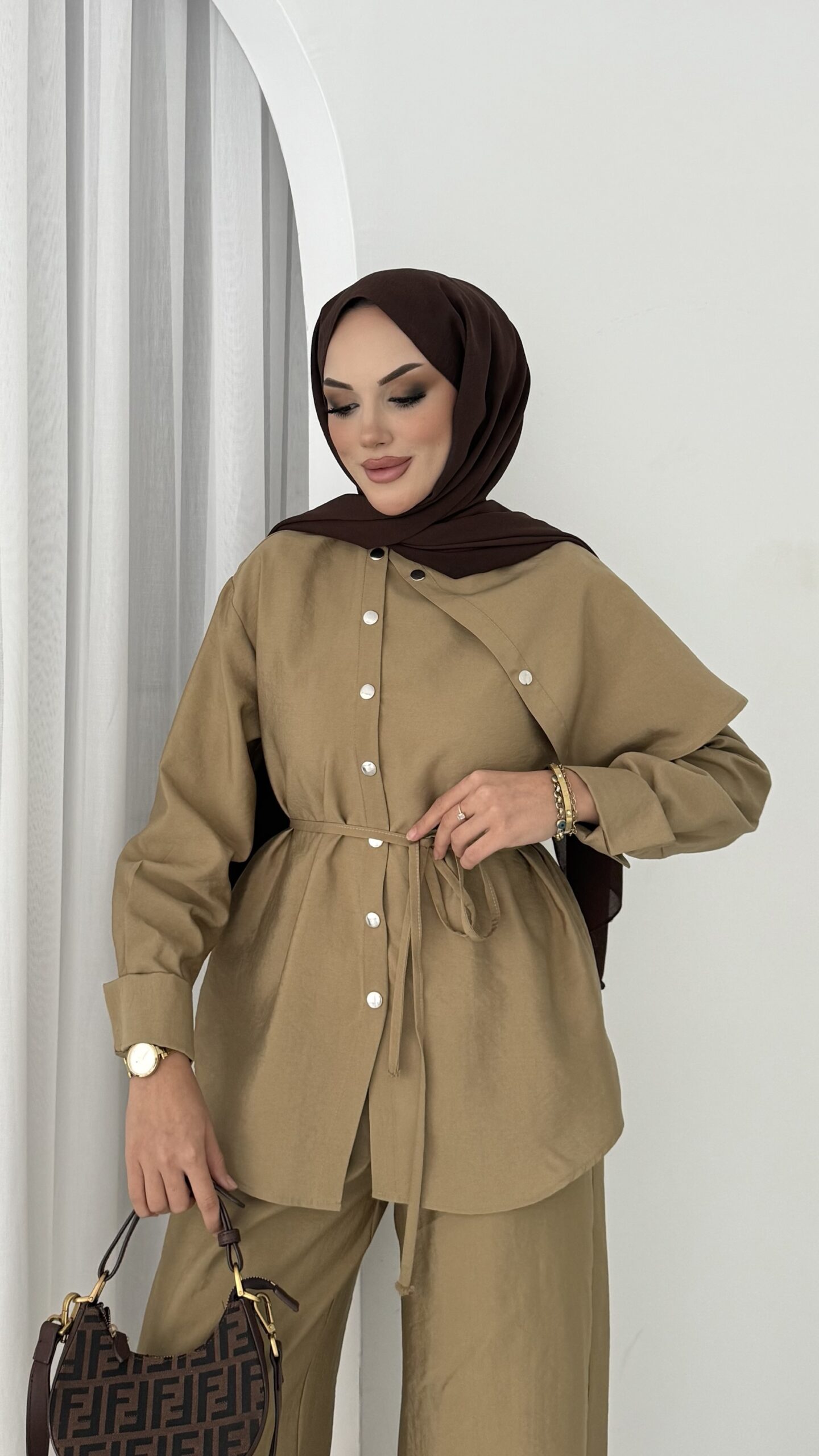 Qatar Fırfırlı Beli Lastikli Takım – Bej