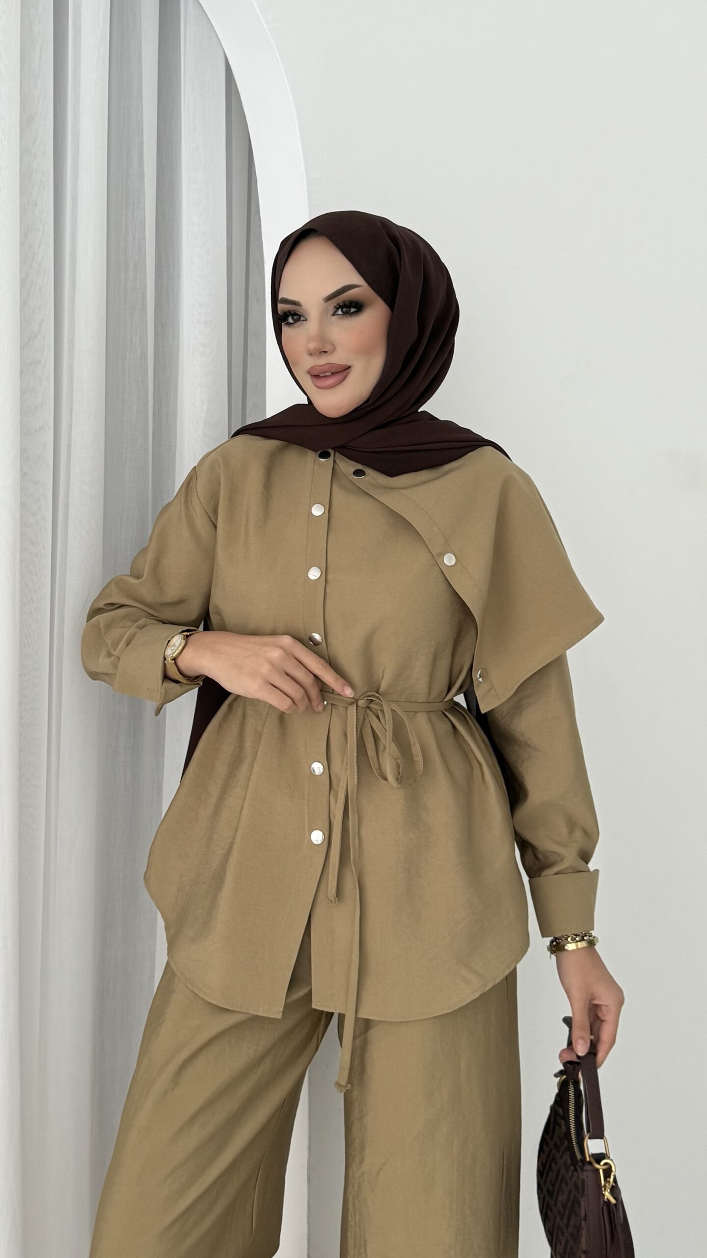 Stella Bağlamalı Yelek İkili Takım – Yağyeşil