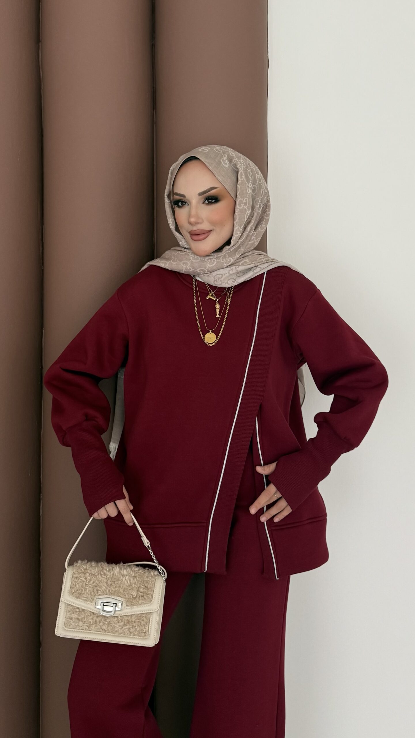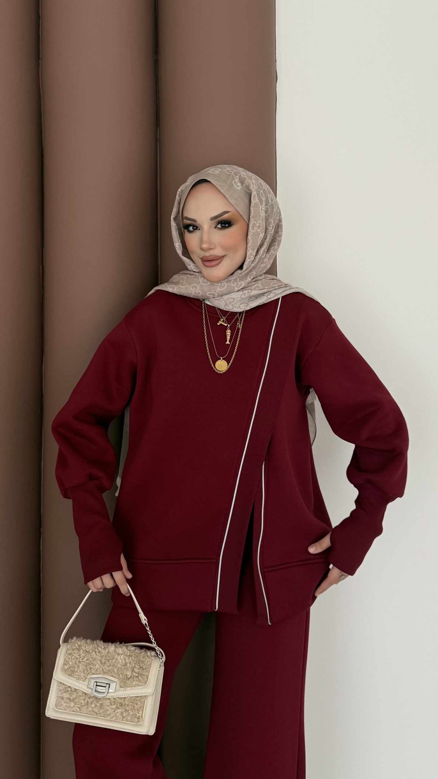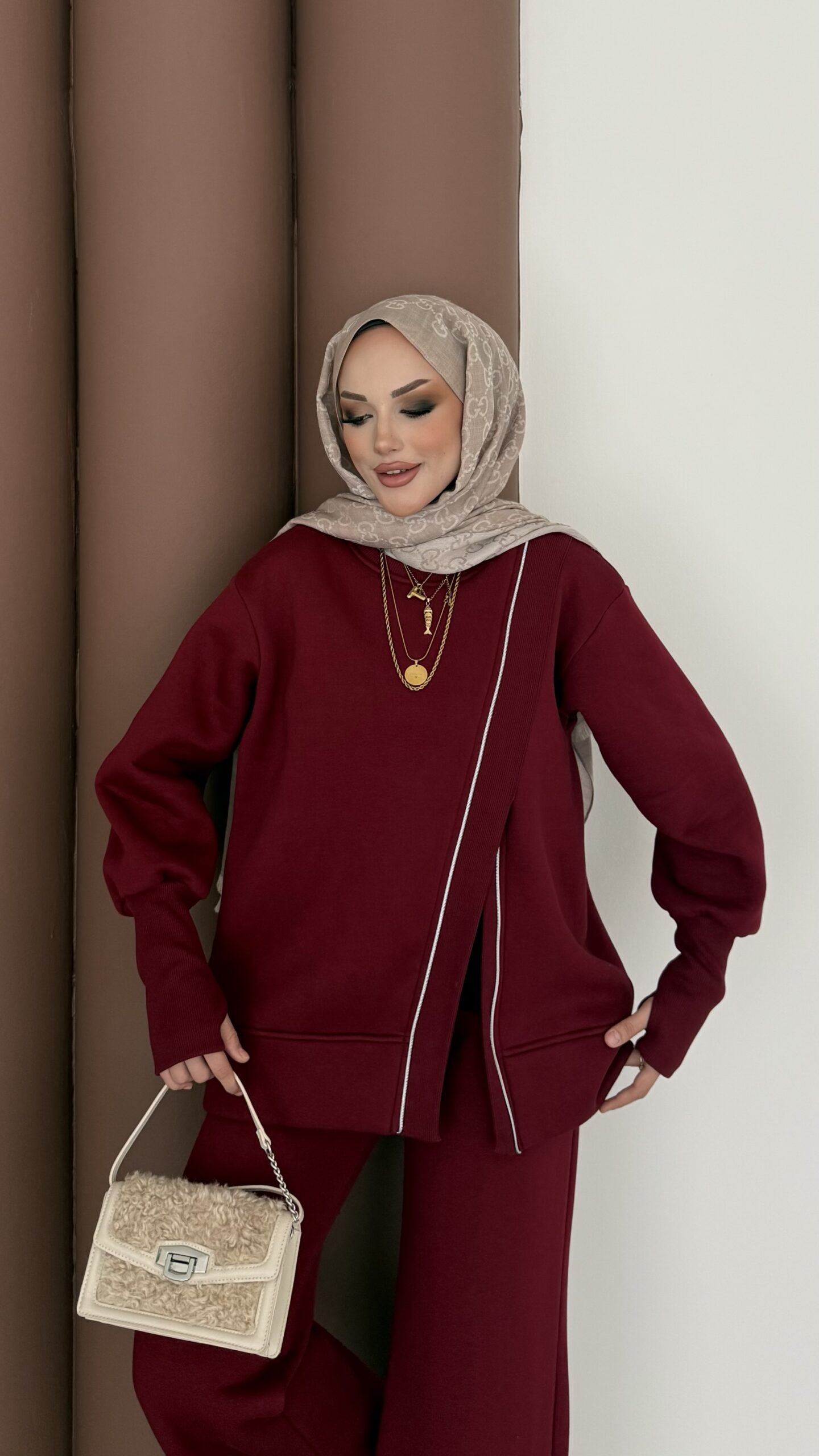 Muadil Asimetrik Fermuarlı İkili Takım – Bordo