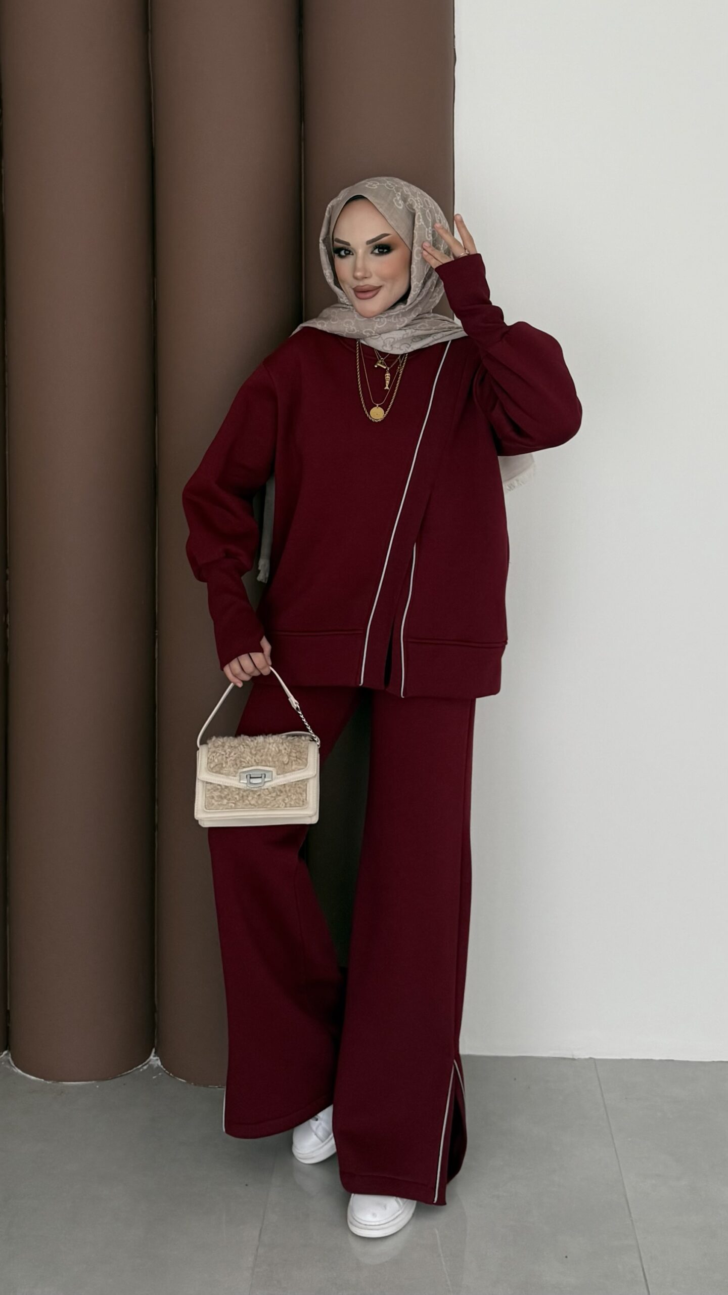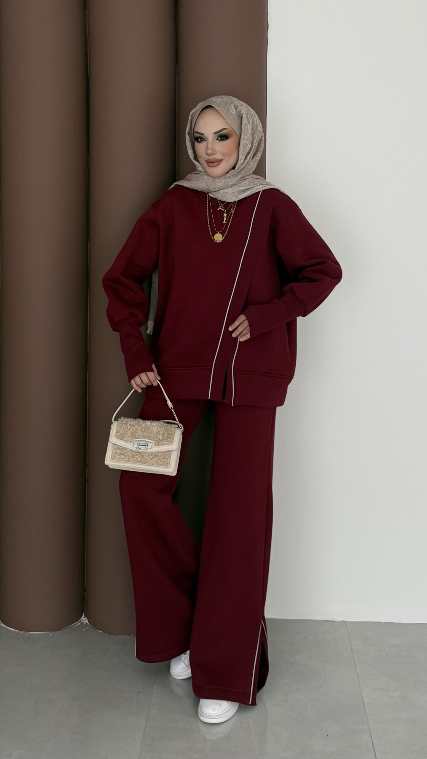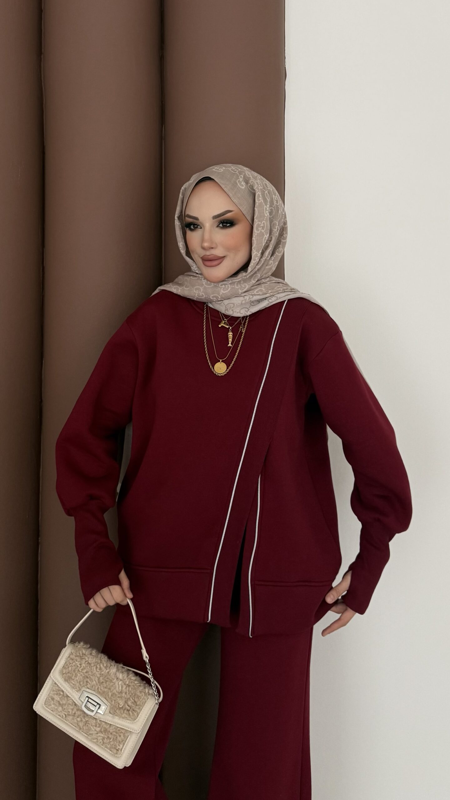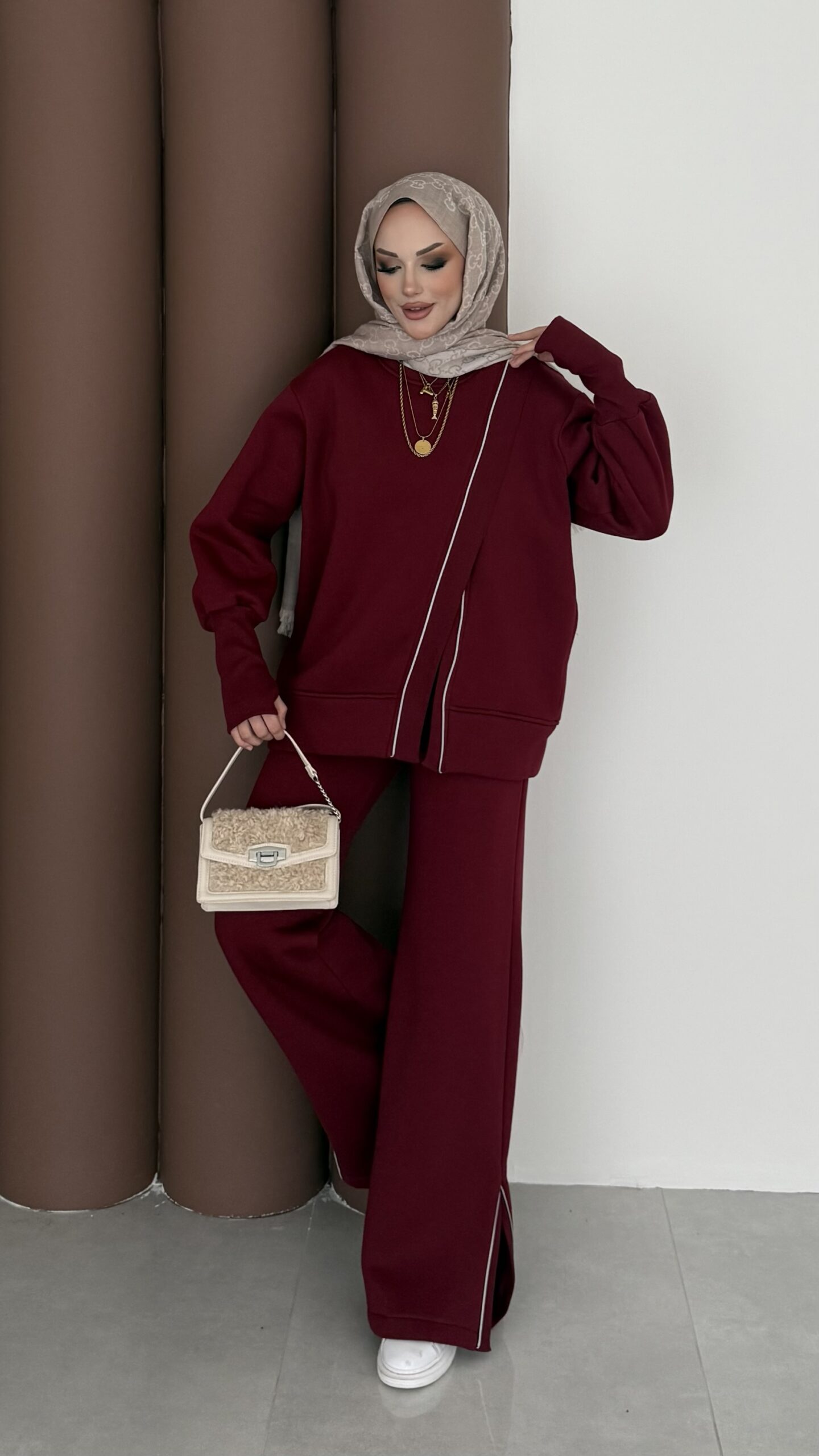 Muadil Asimetrik Fermuarlı İkili Takım – Bordo