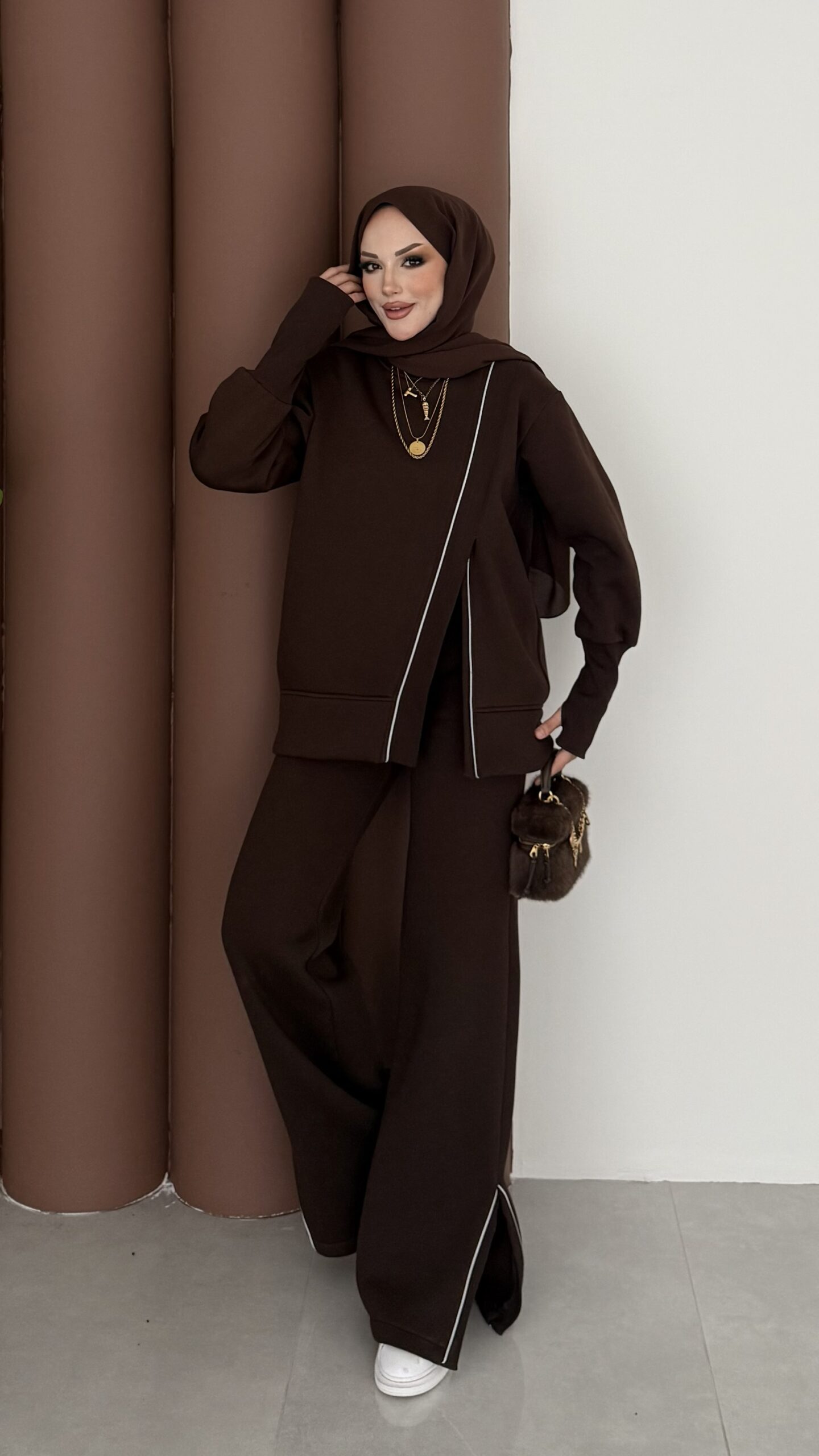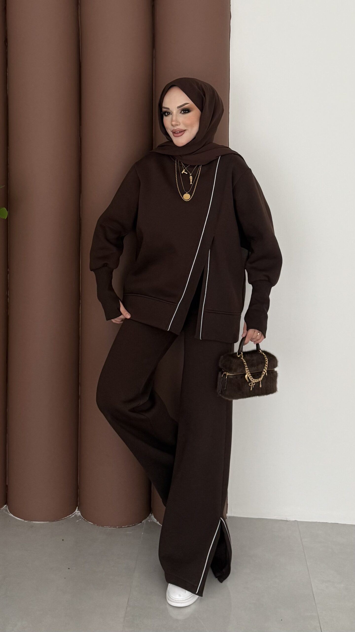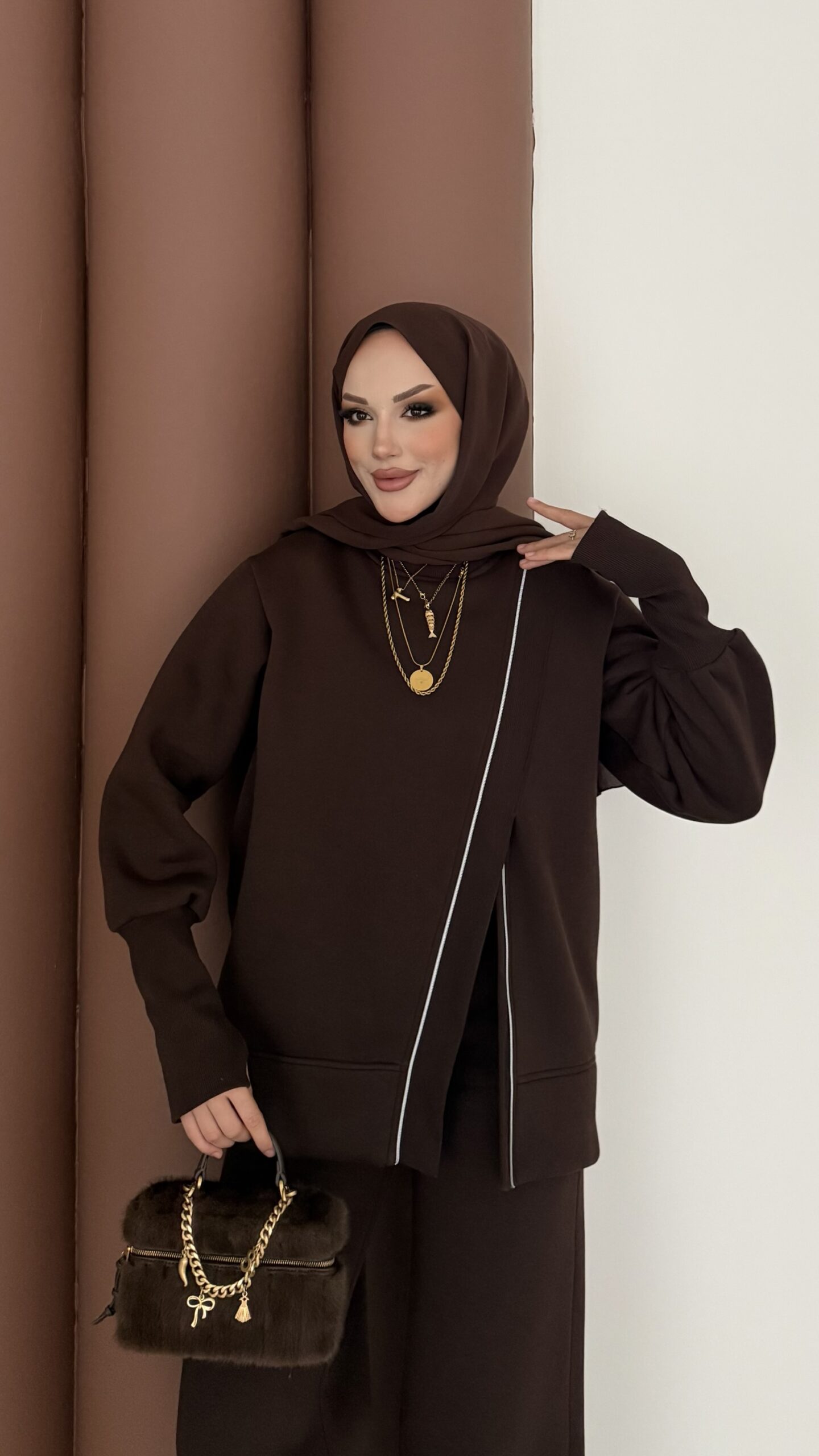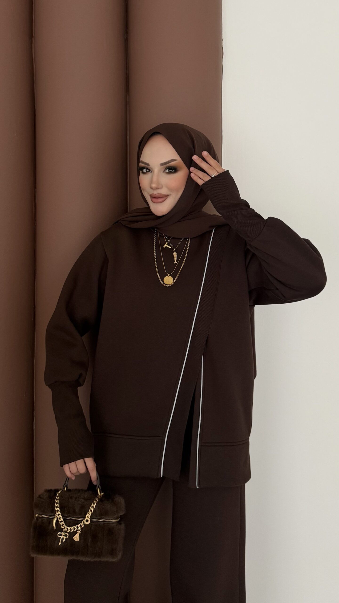 Muadil Asimetrik Fermuarlı İkili Takım – Kahverengi