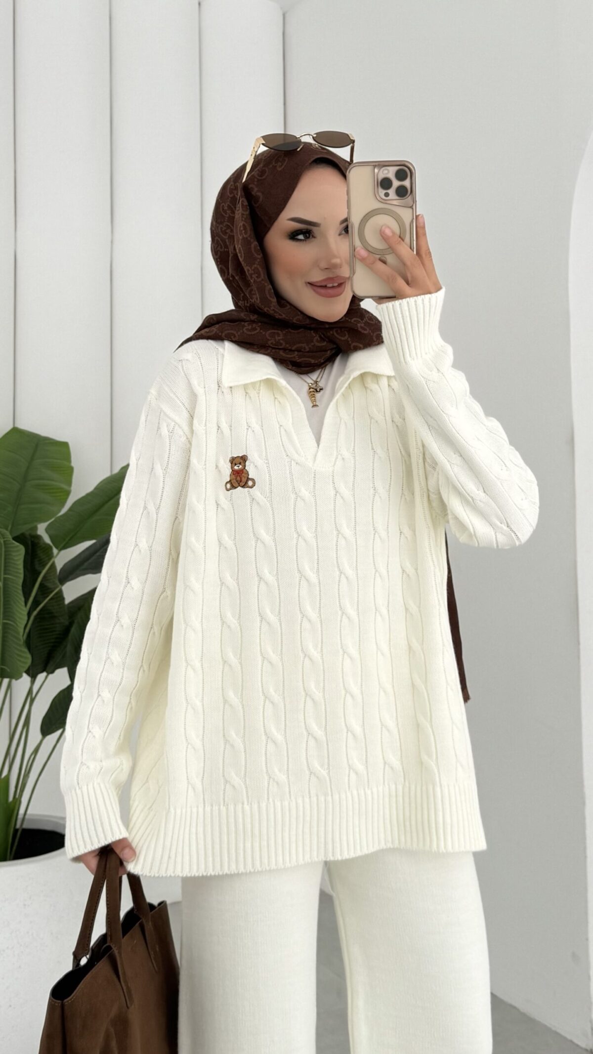 Muadil Ayıcık Nakışlı Triko İkli Takım – Ekru
