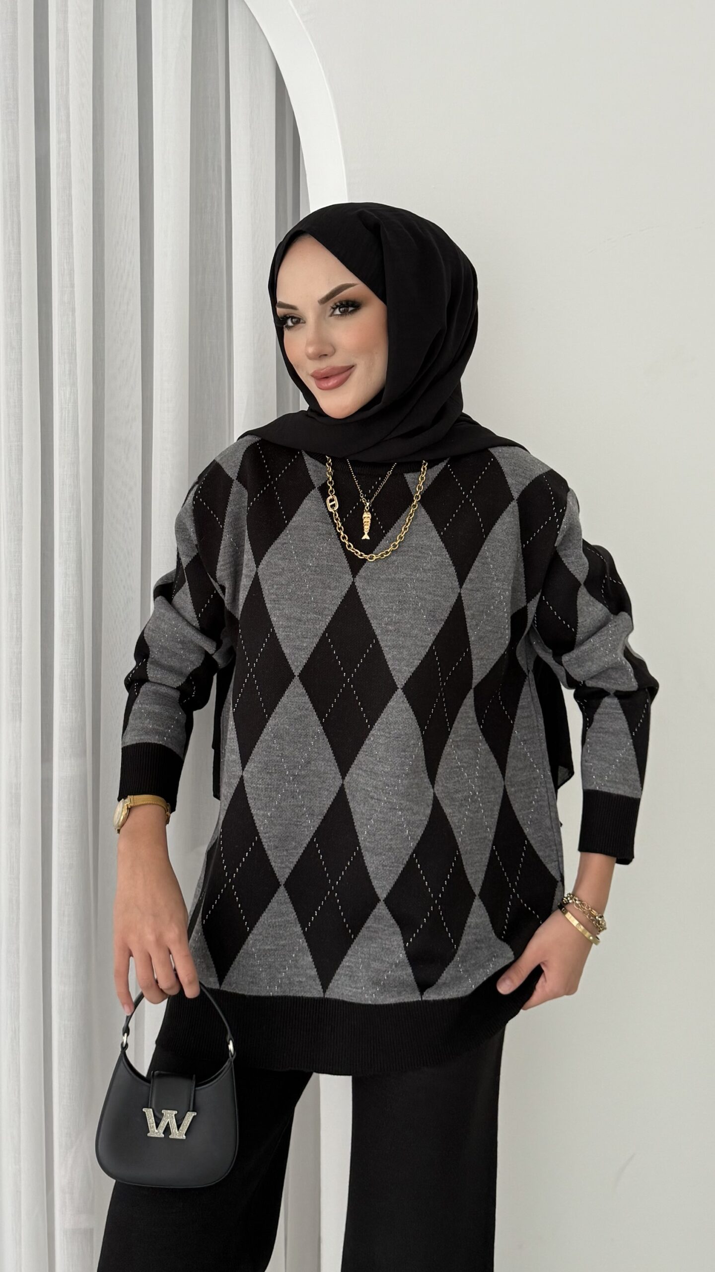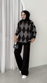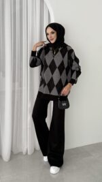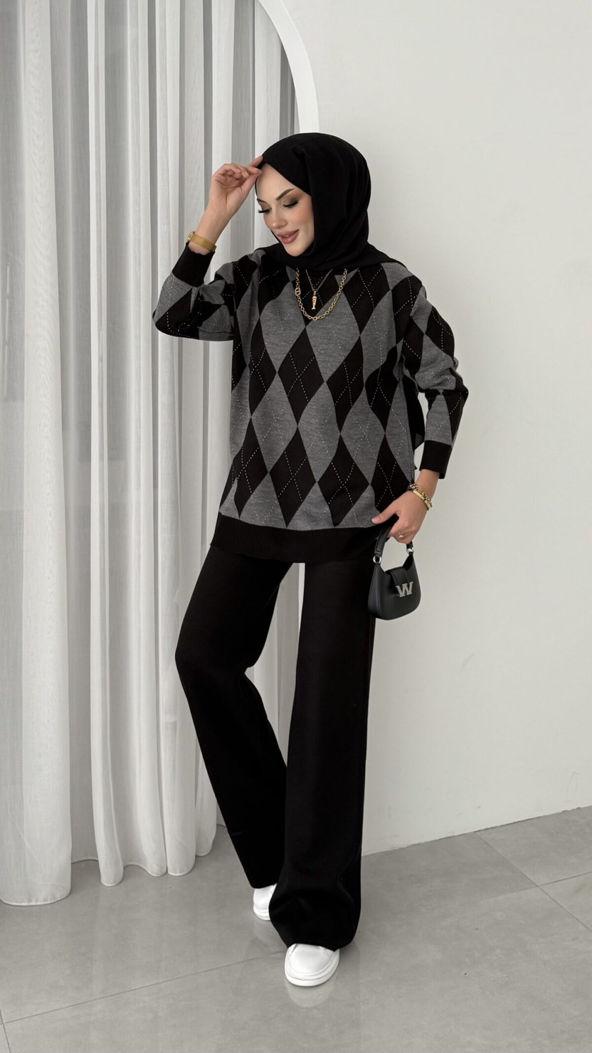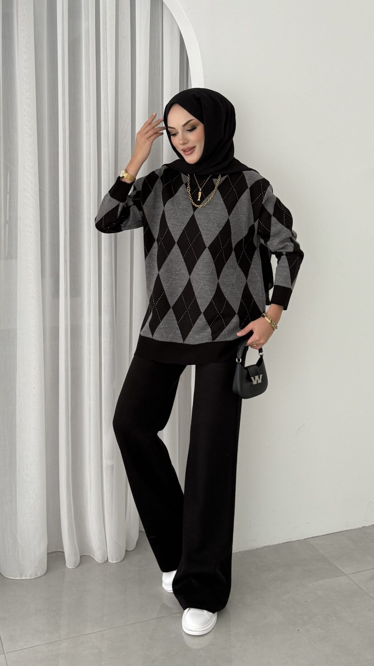Muadil Baklavia Desen Triko İkili Takım – Siyah