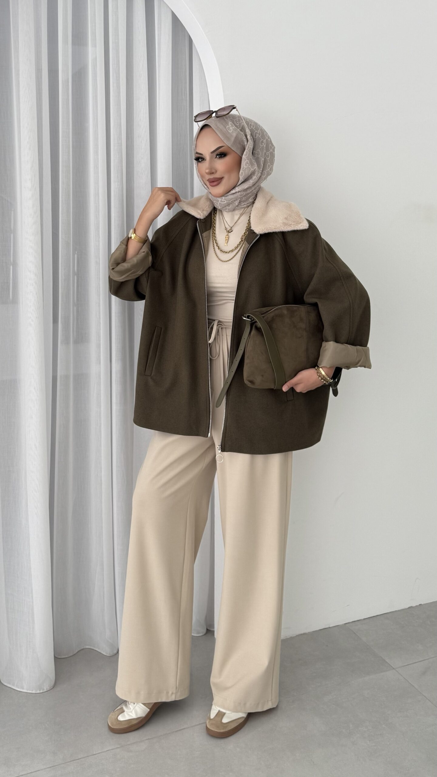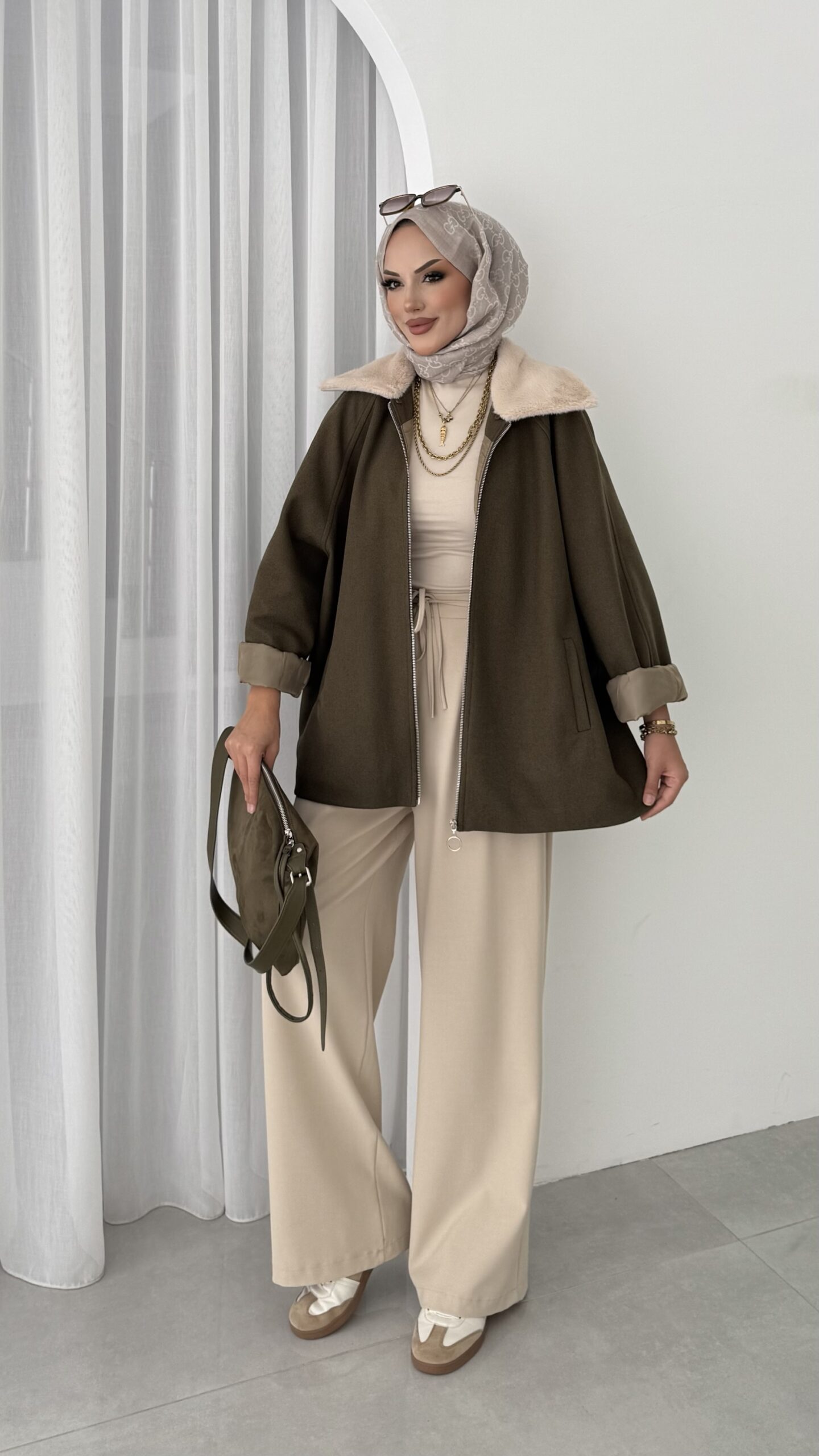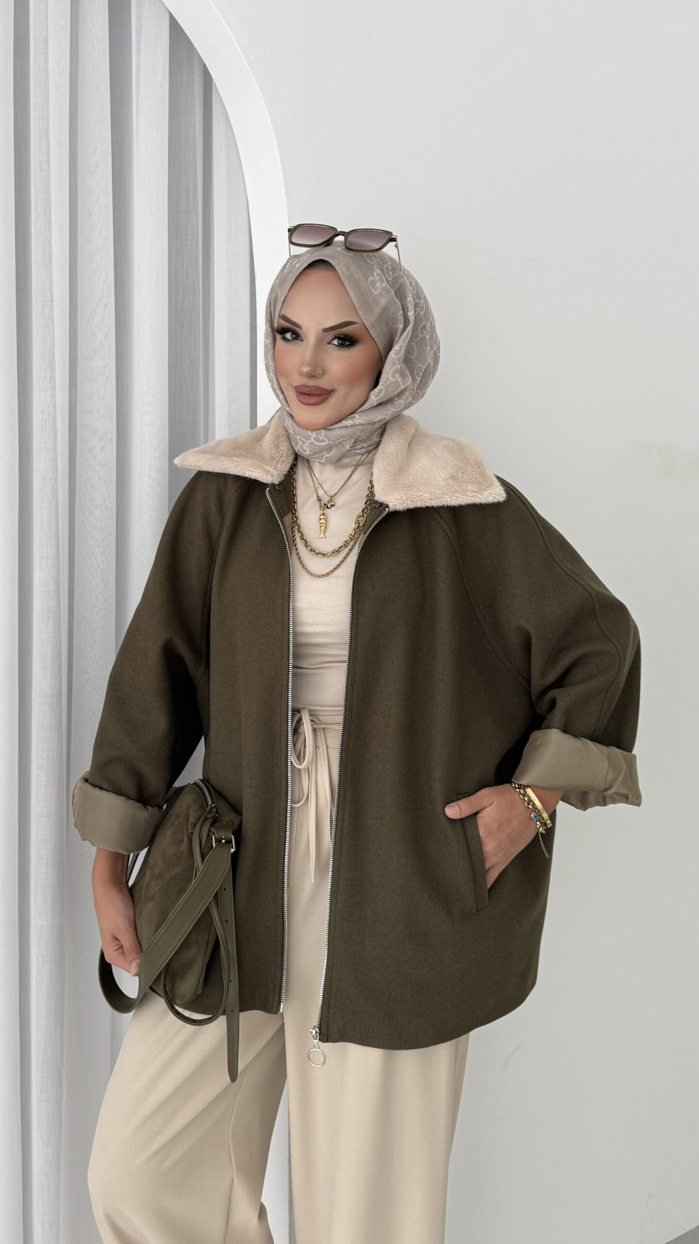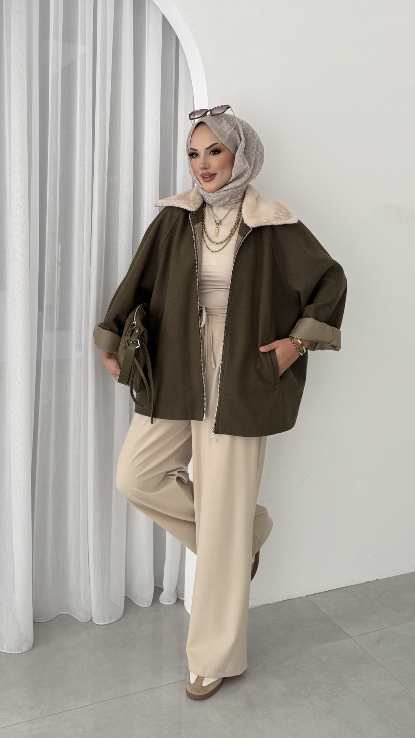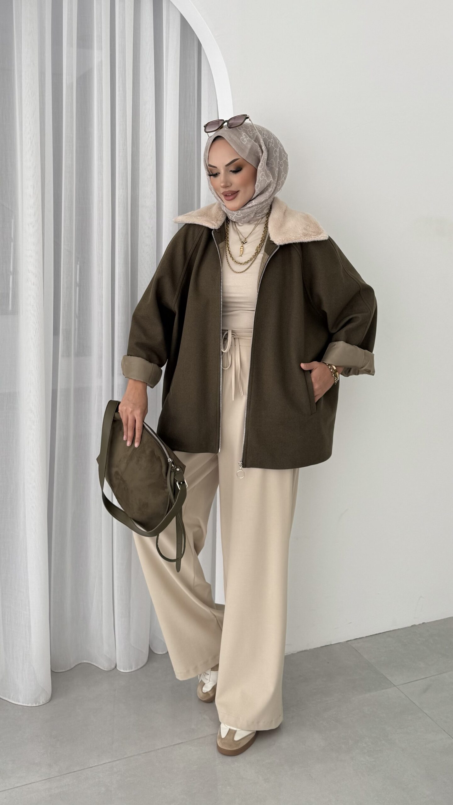 Muadil Kürk Yaka Kaşe Ceket – Haki