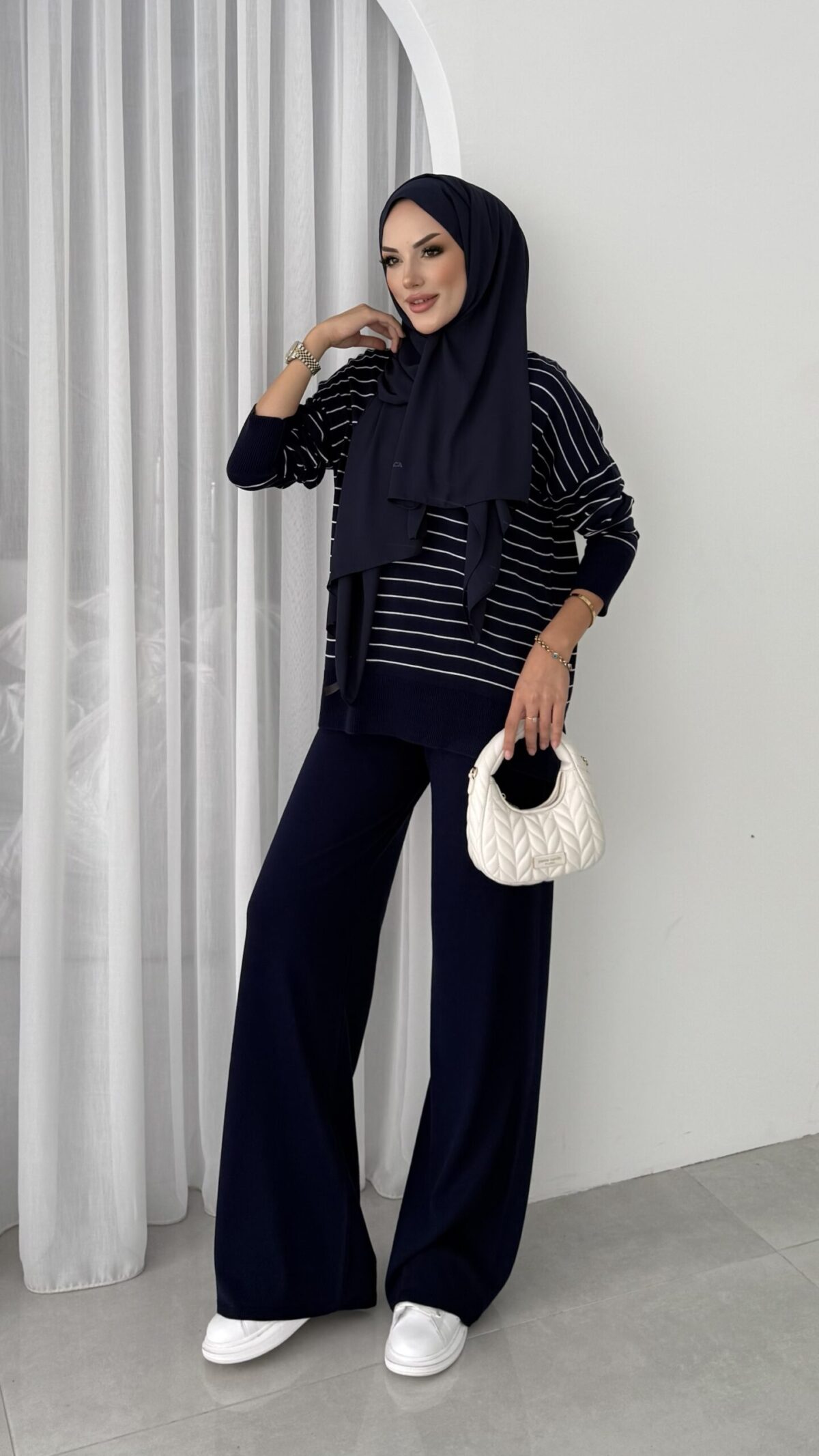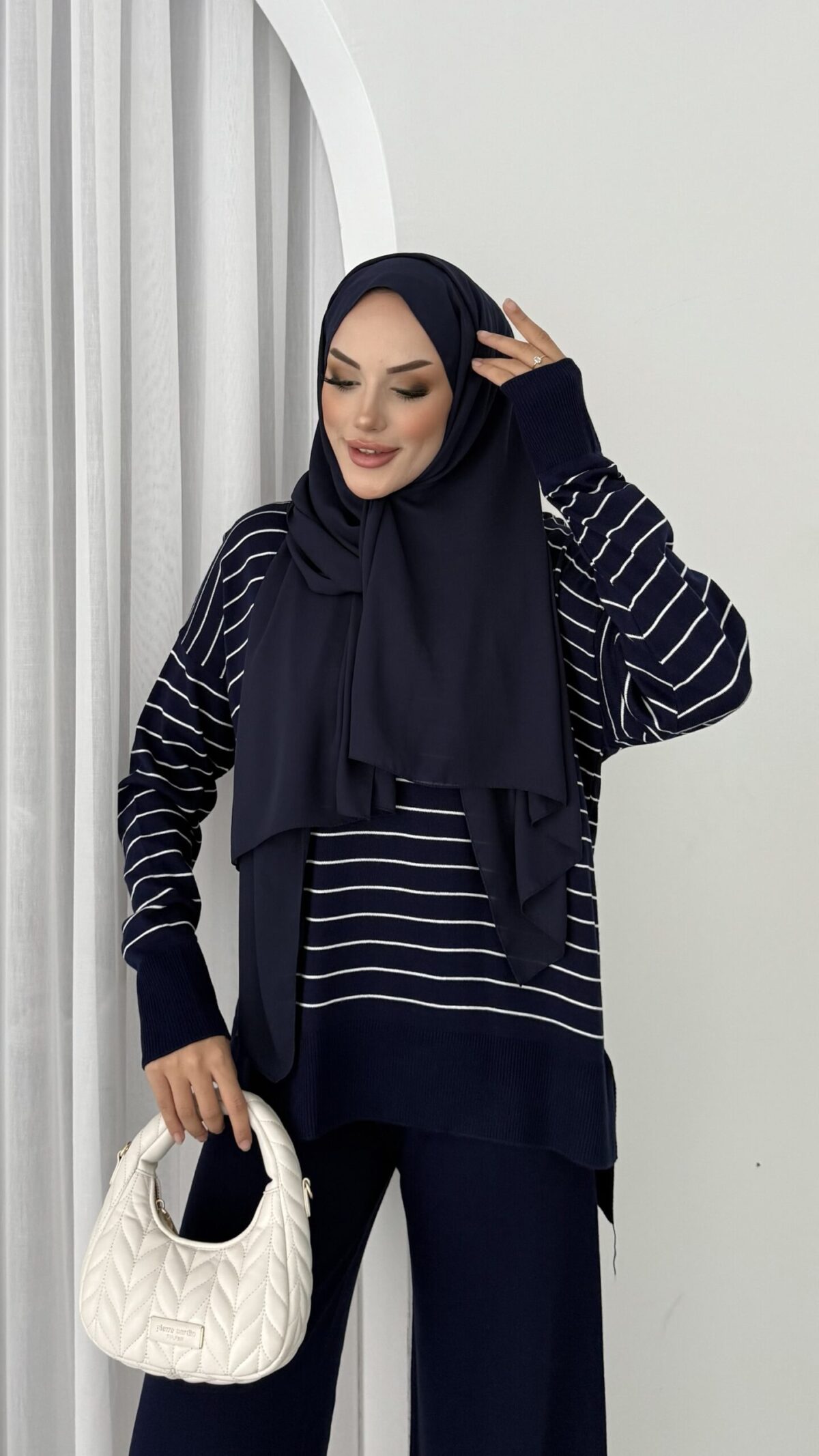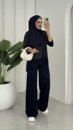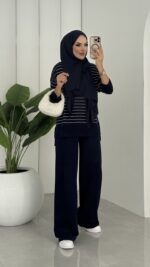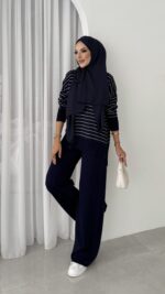 Premium Merserize Çizgili Triko İki Takım – Lacivert