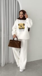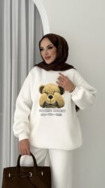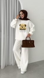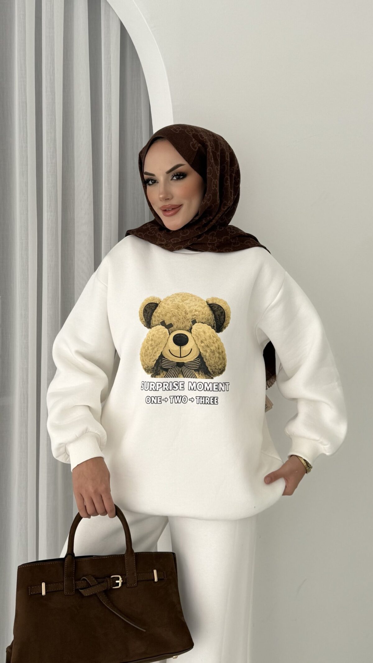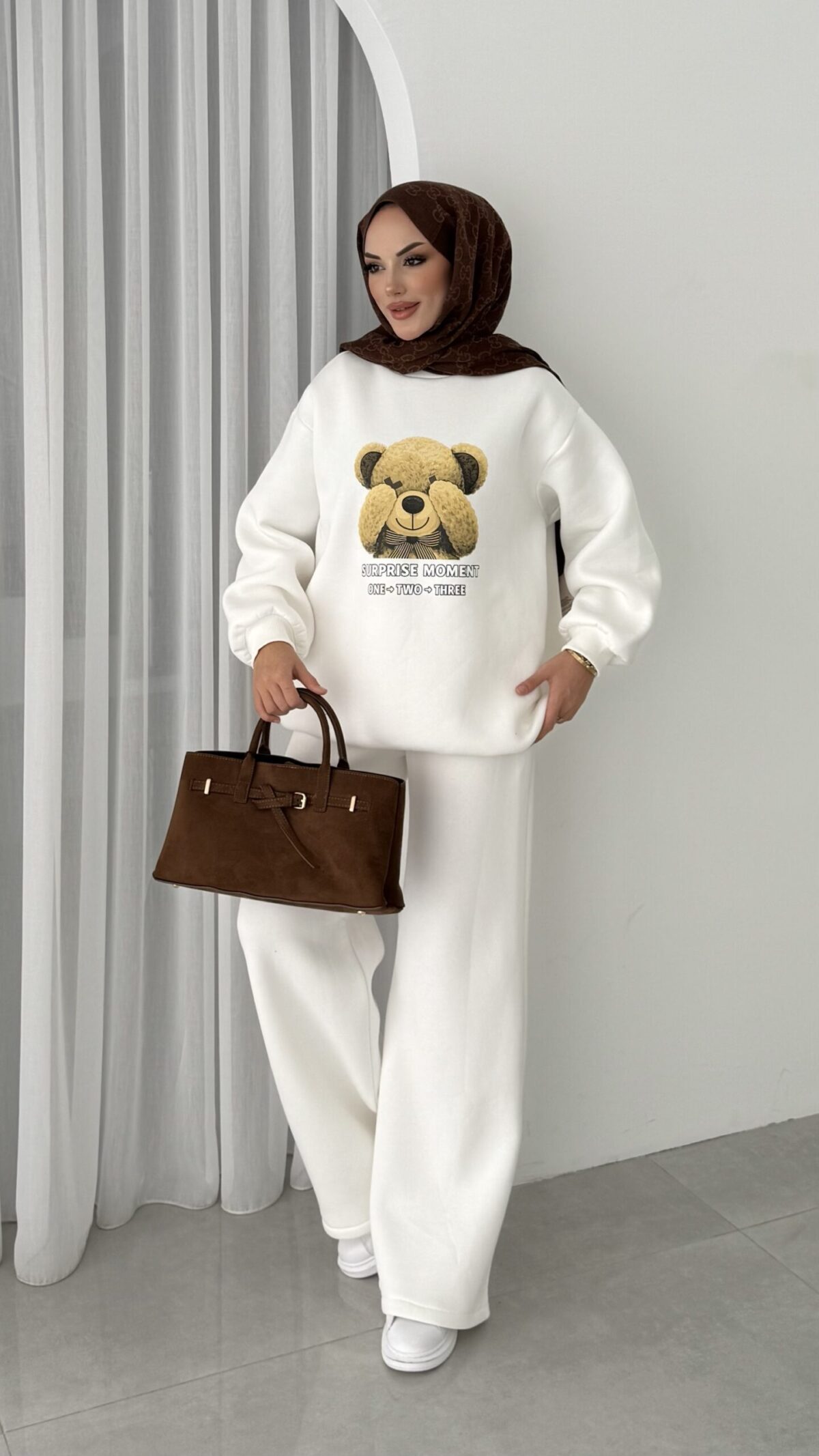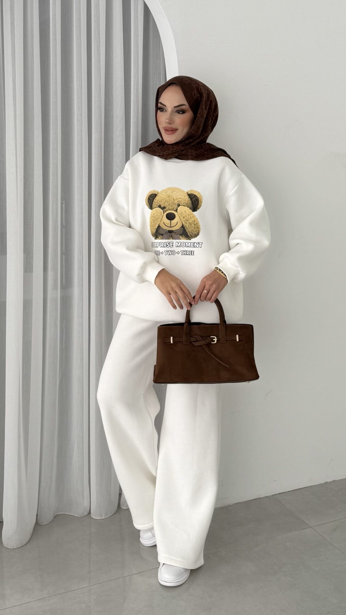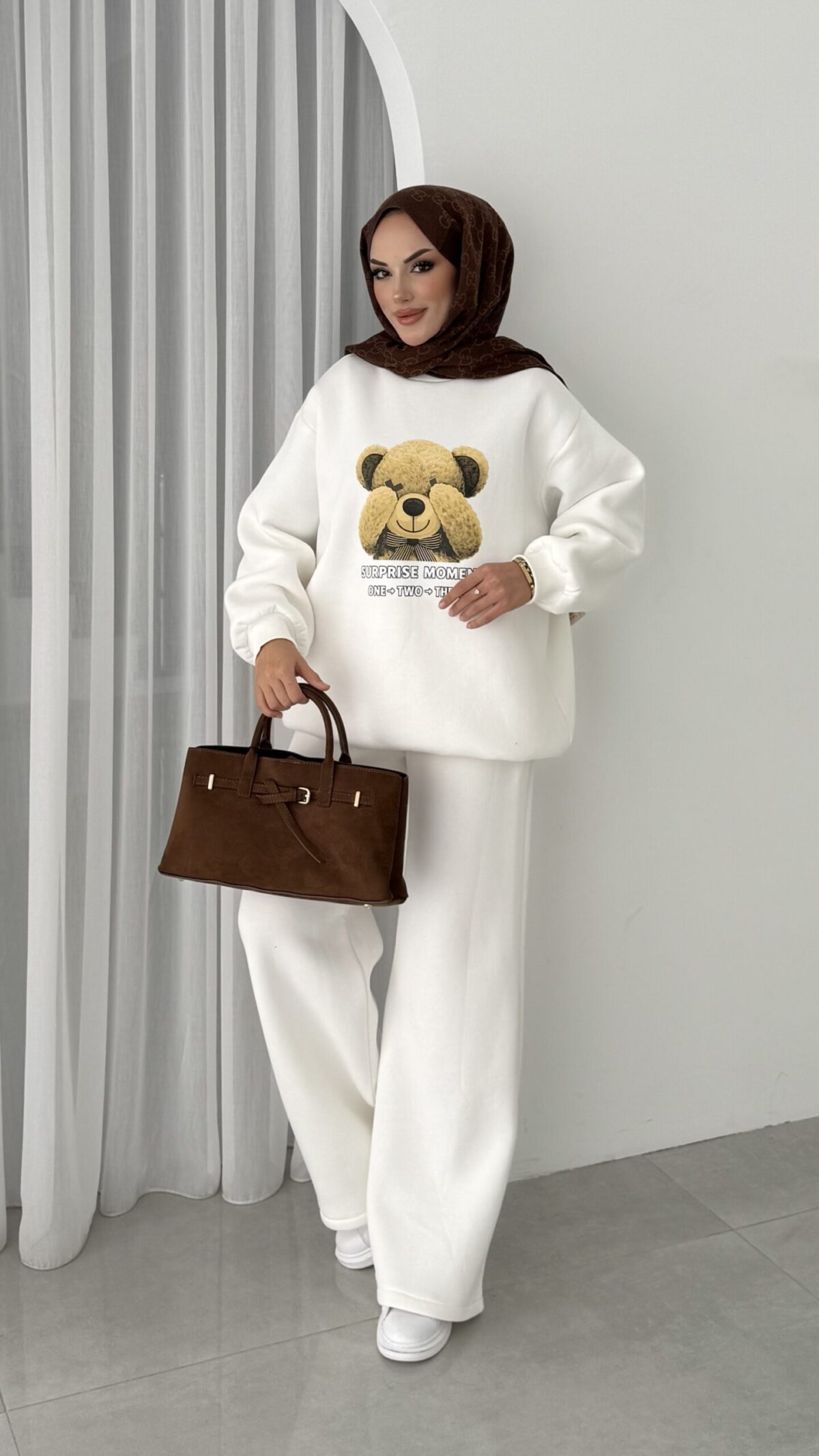 Puffy Şardonlu Sweat İkili Takım – Beyaz