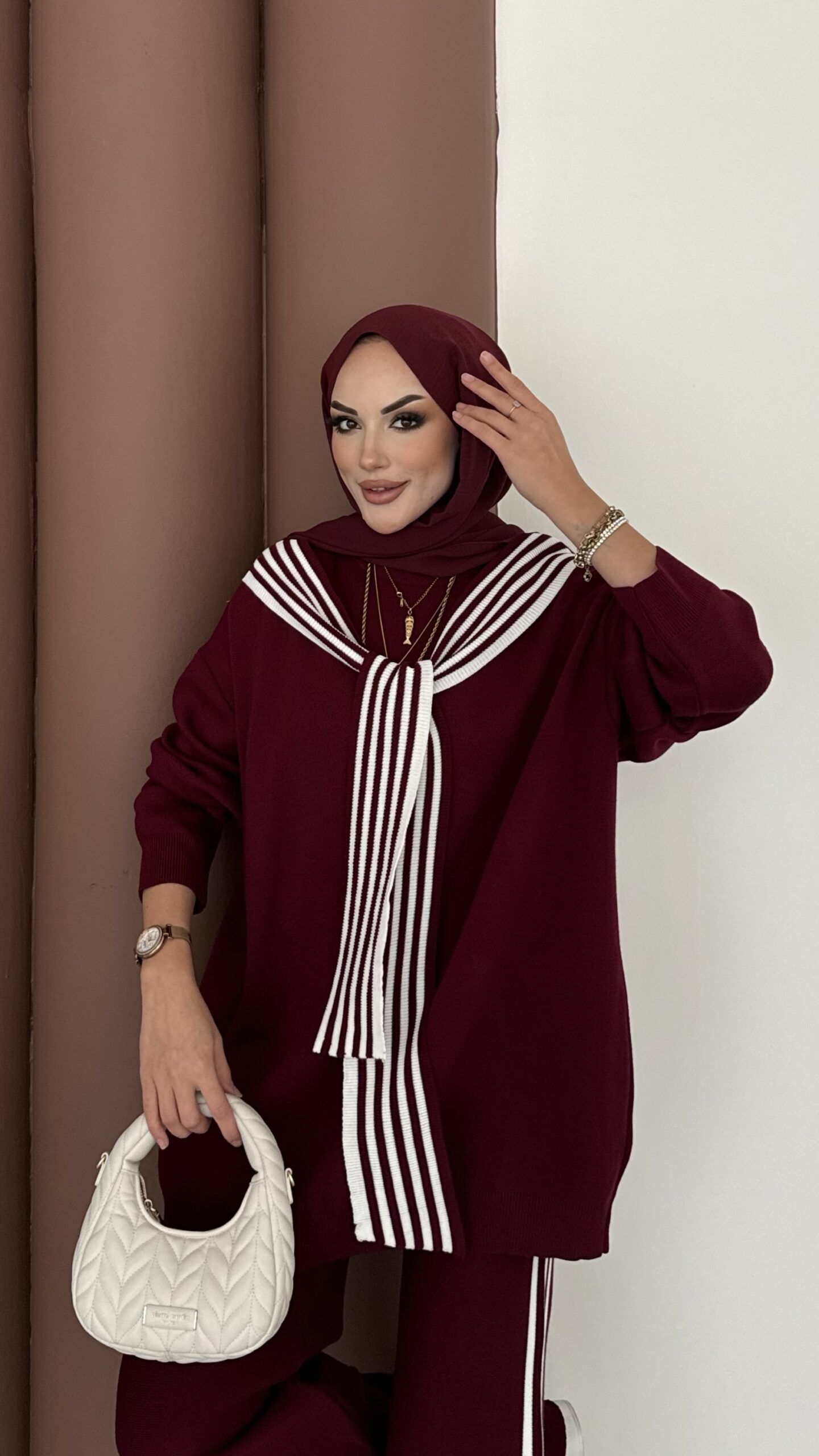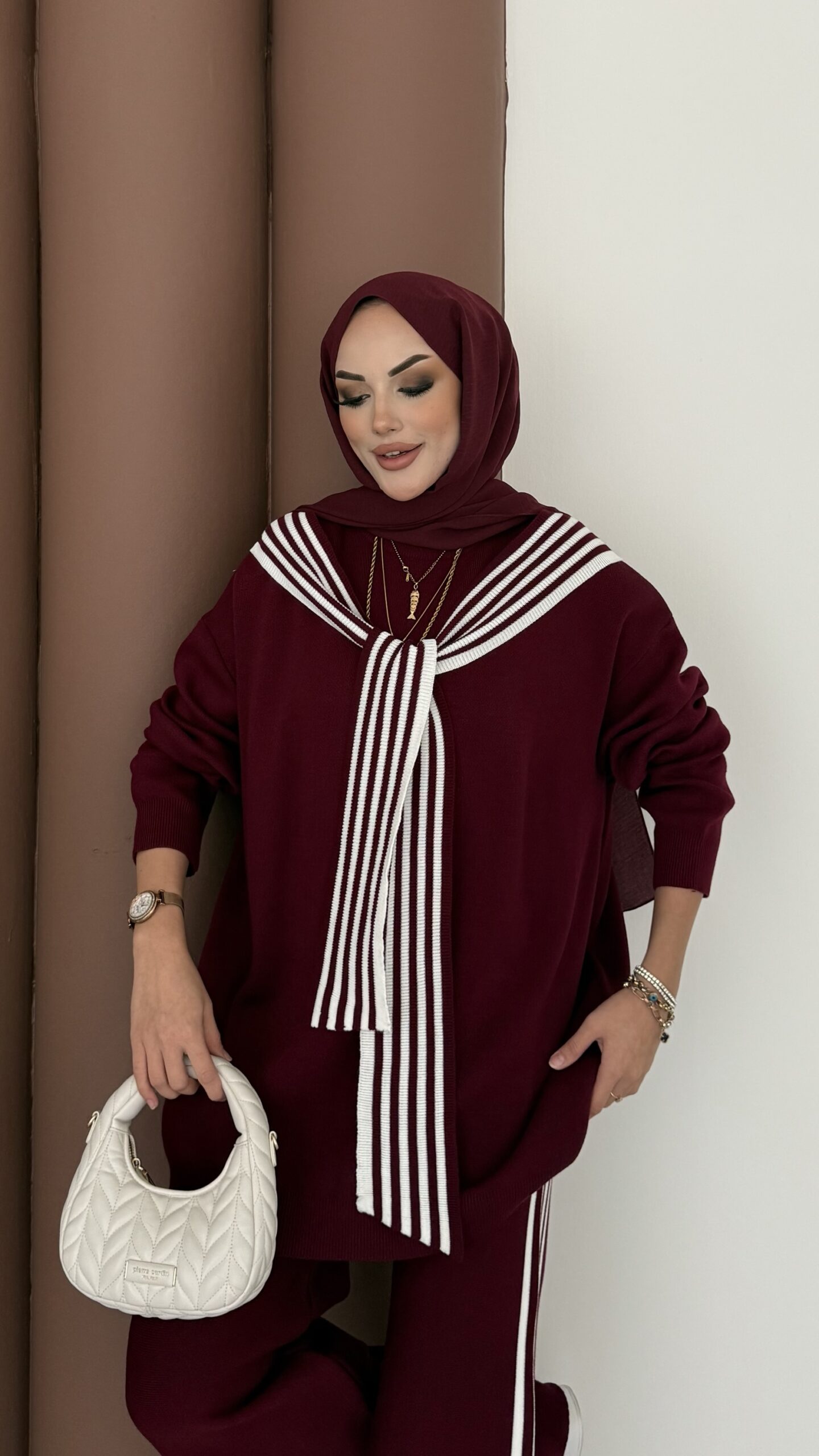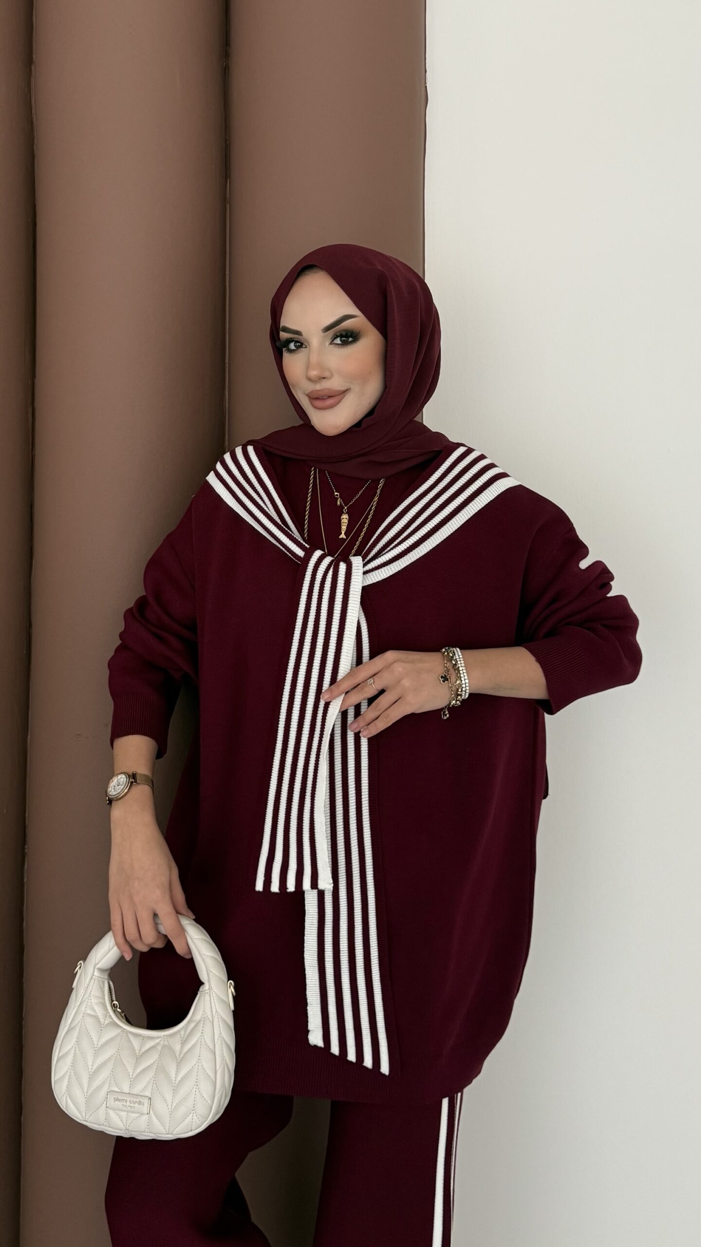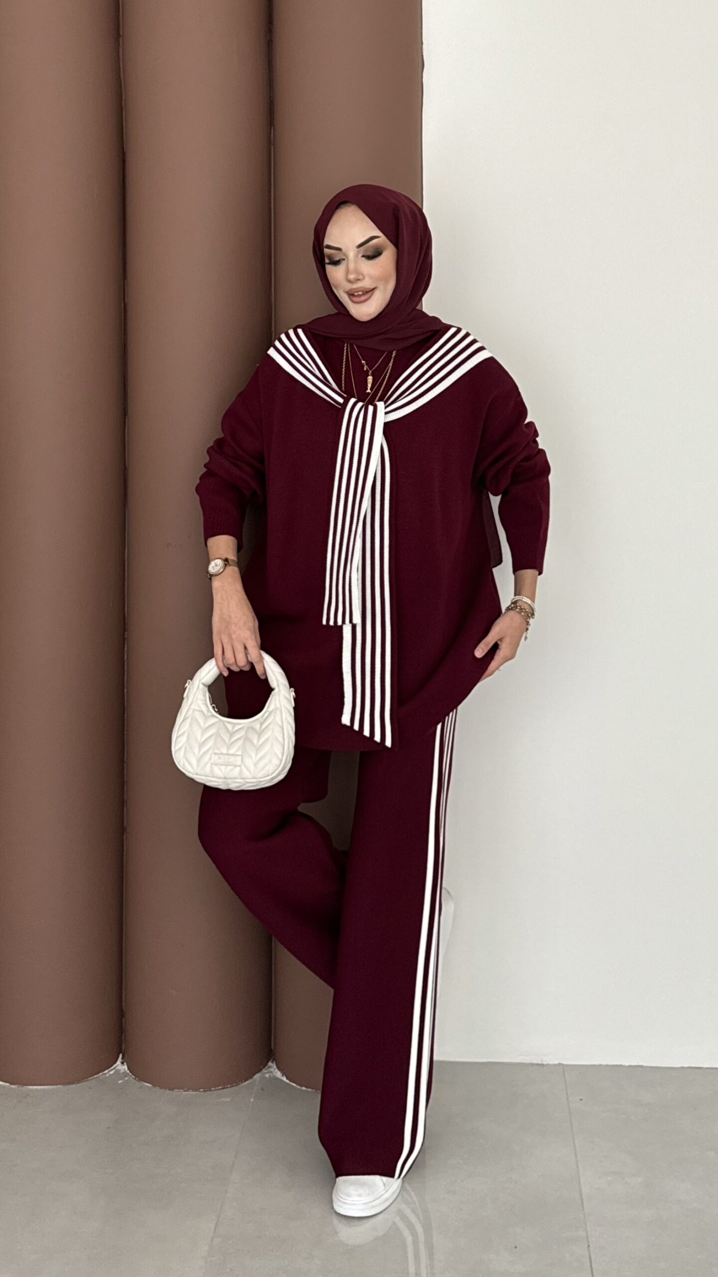 Rally Çizgili Triko İkili Takım – Bordo