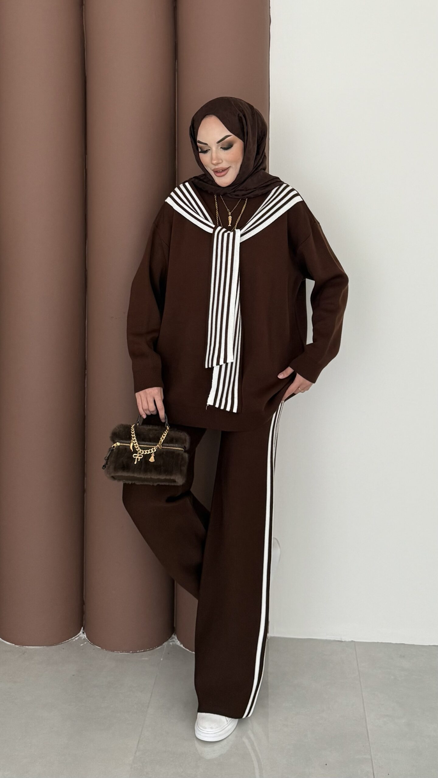 Rally Çizgili Triko İkili Takım – Kahverengi