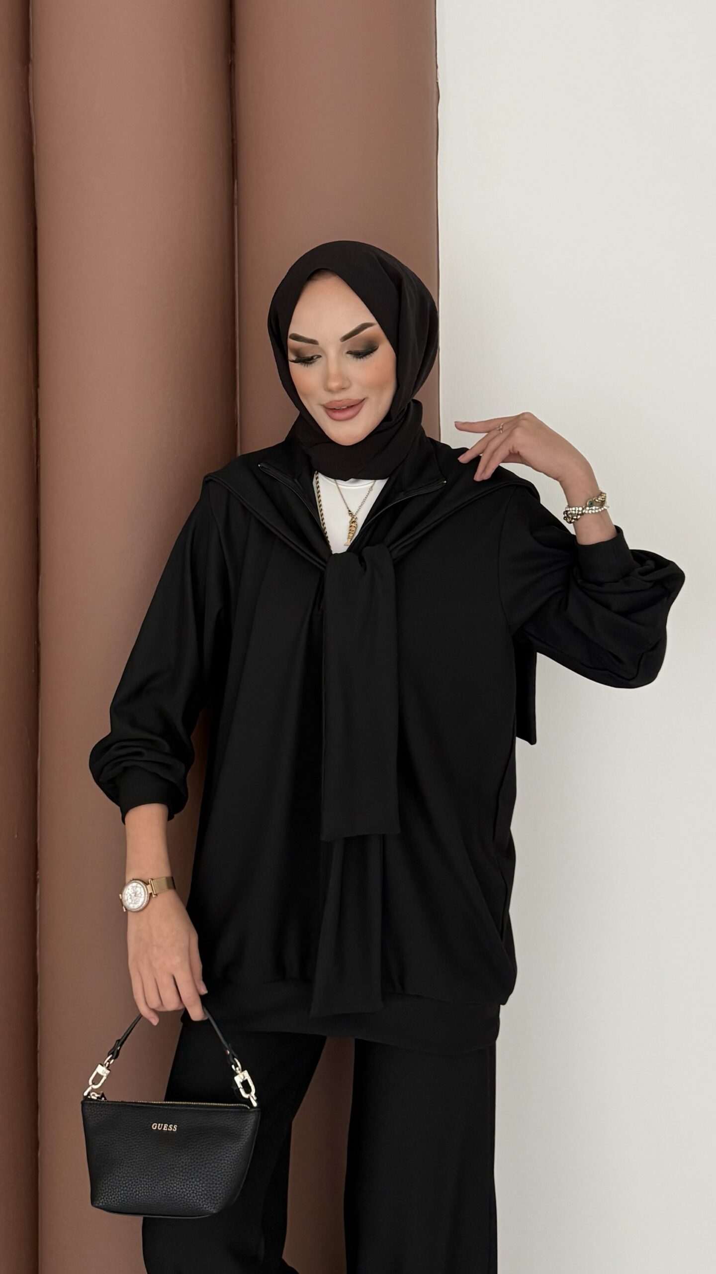 Ghalia Fermuarlı Kot Etekli Takım – Lacivert