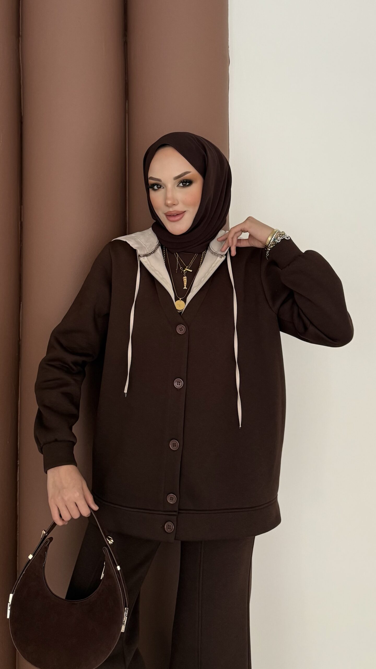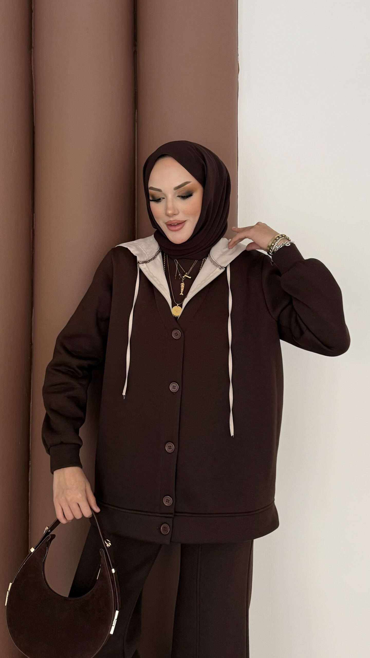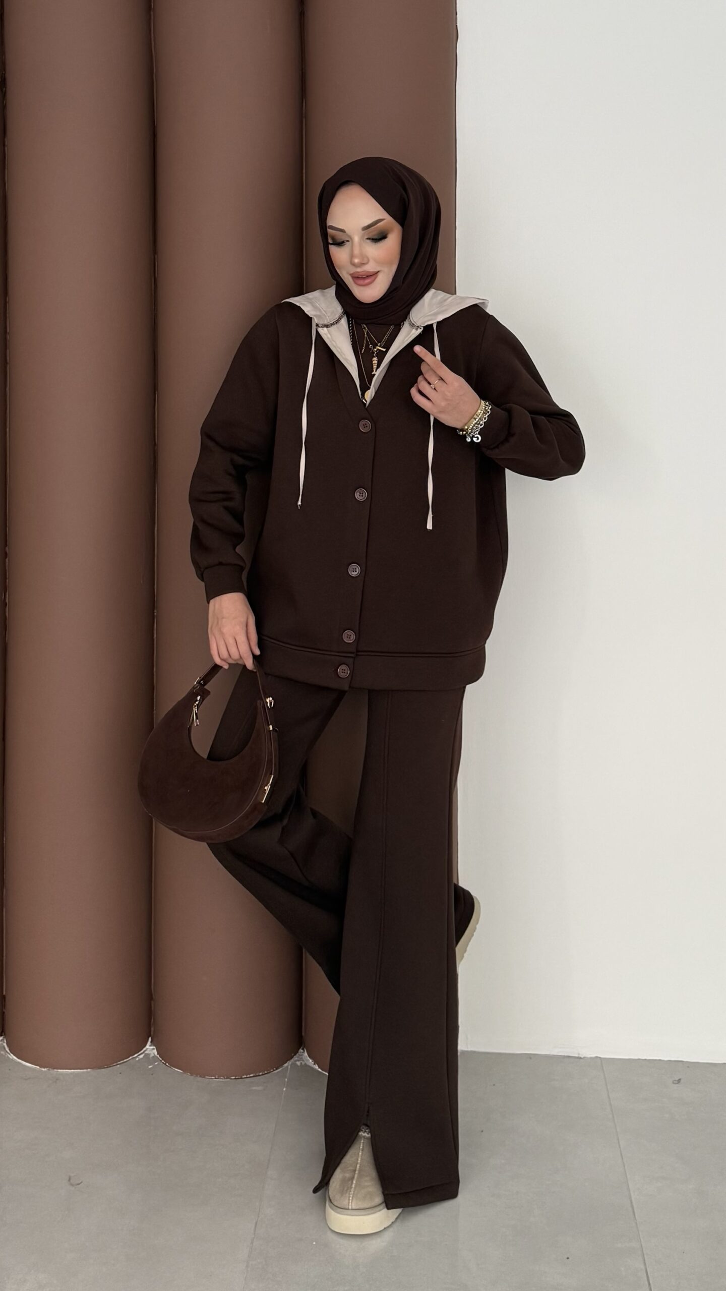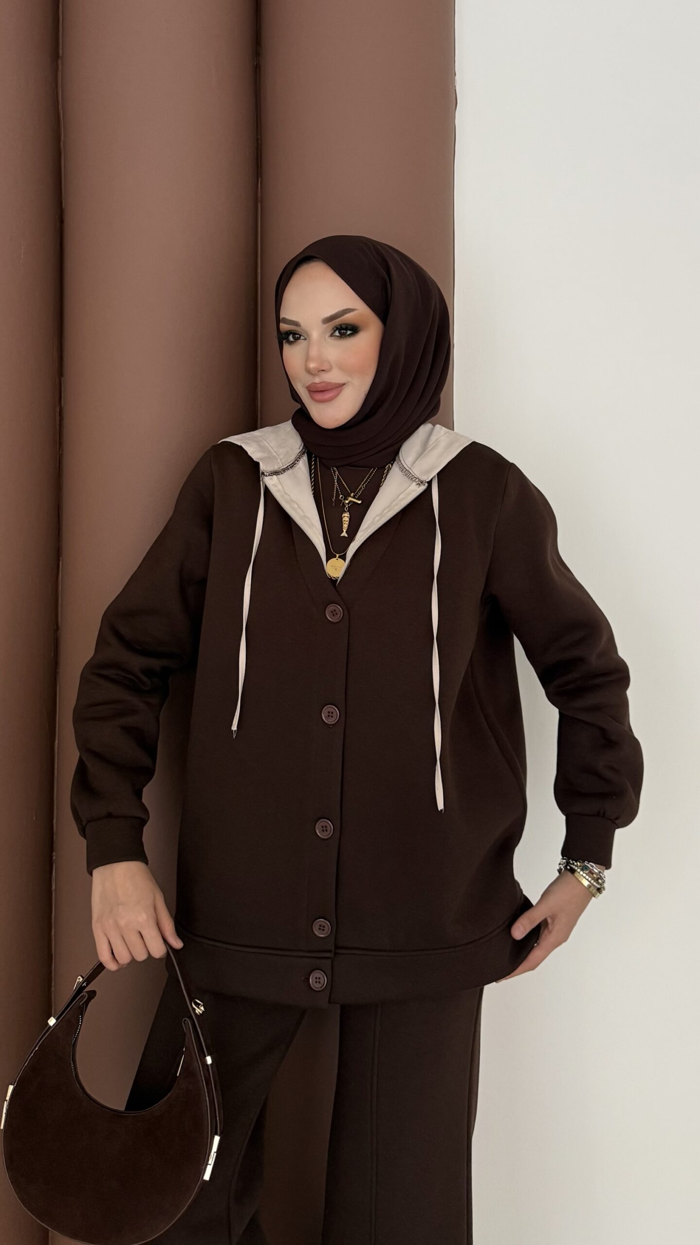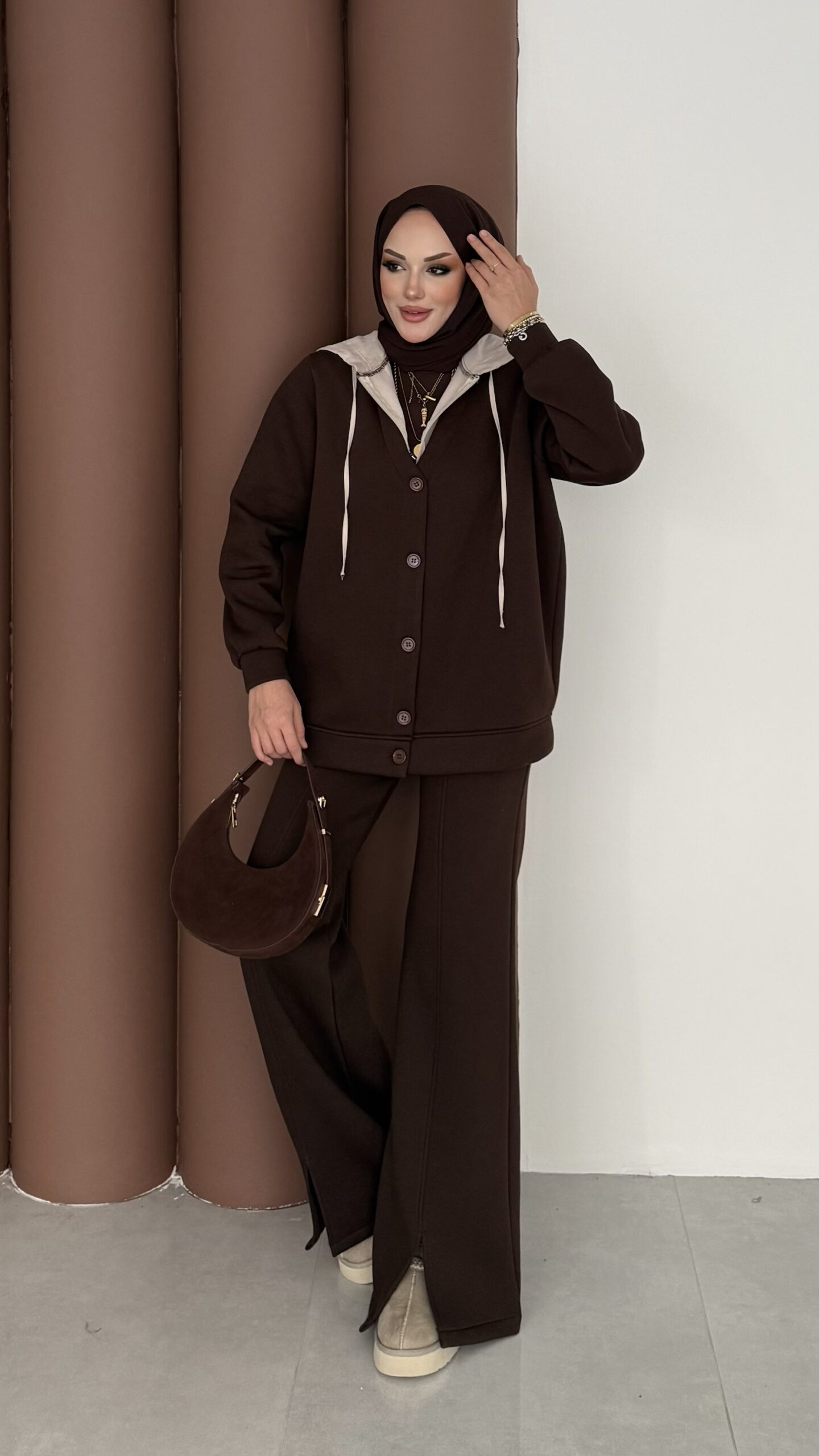 Snow Trenç Kapşonlu Şardonlu İkili Takım – Kahverengi