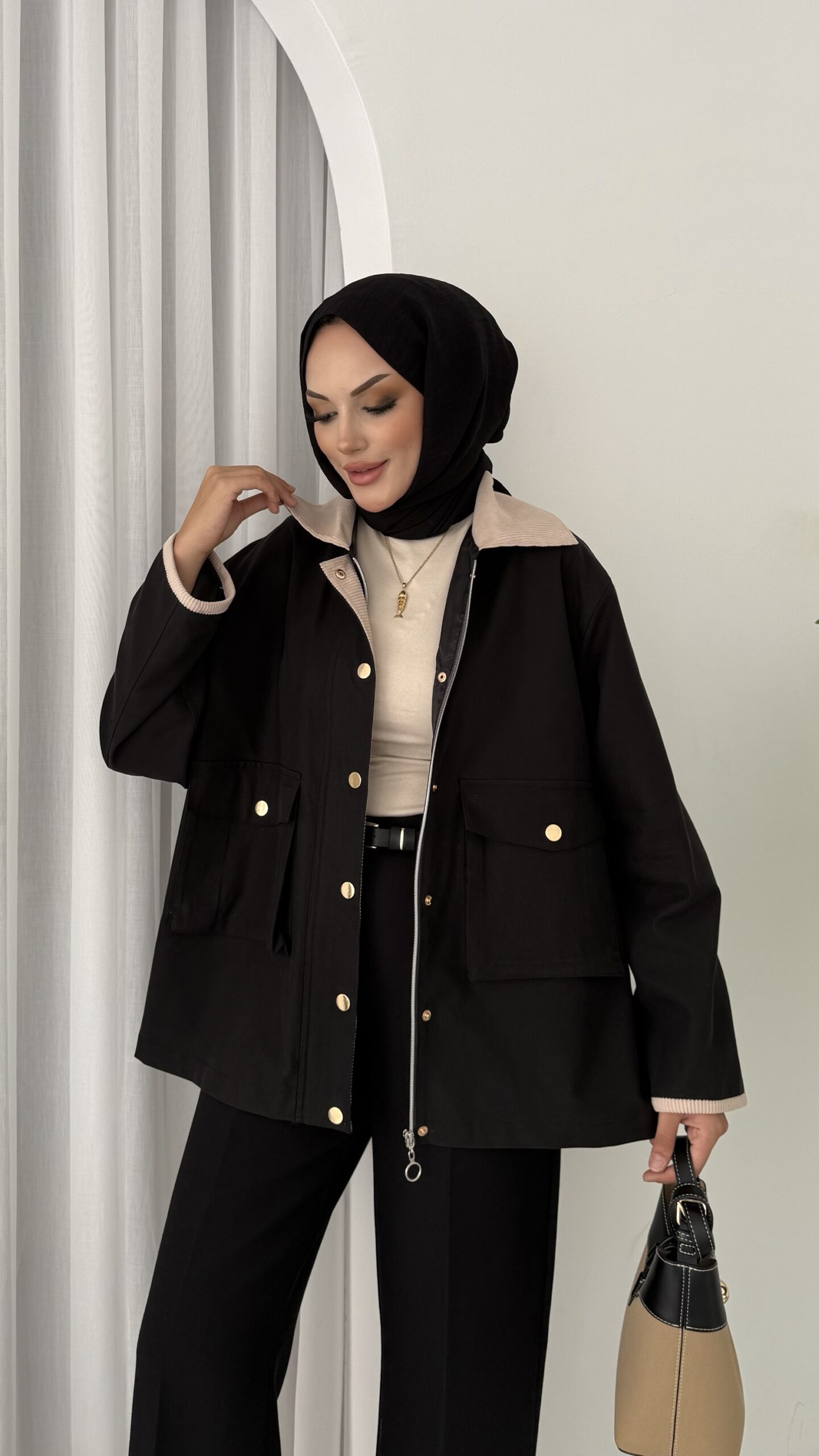 Stradi Muadil Kadife Yaka Ceket – Siyah