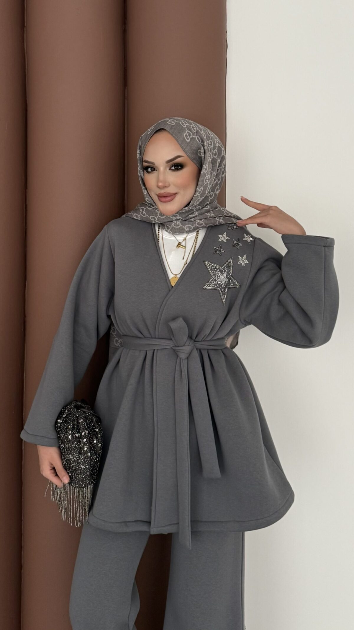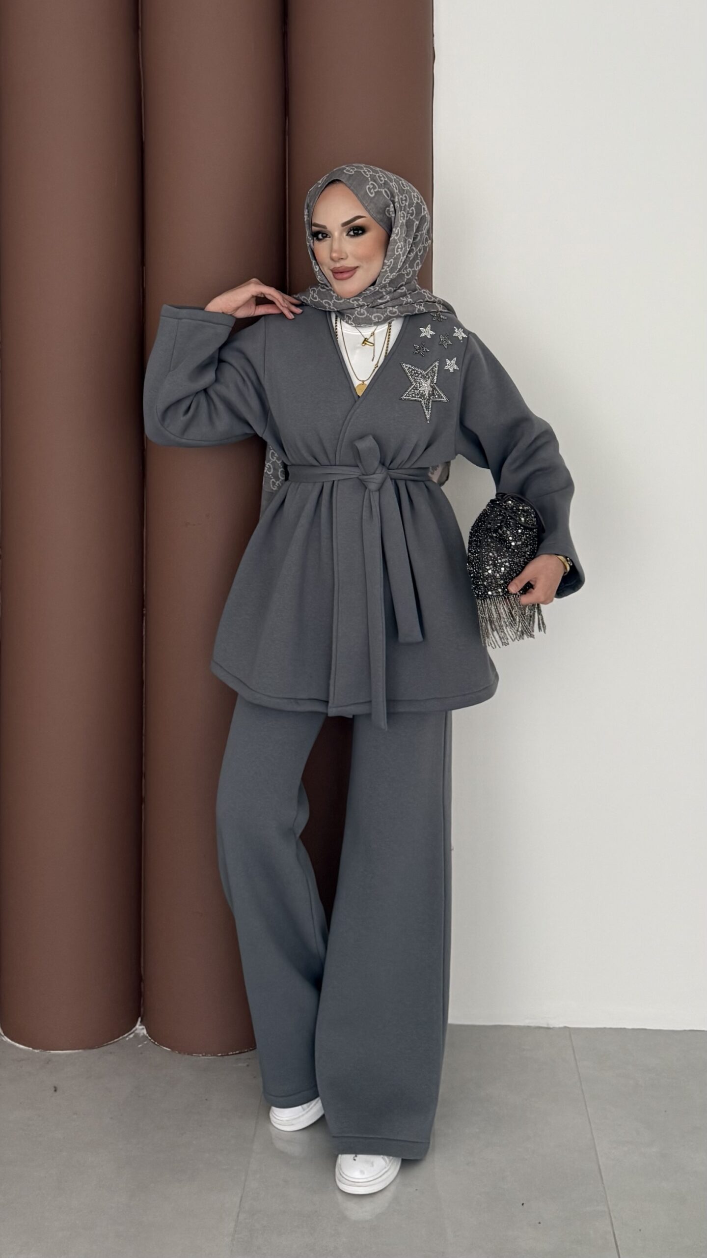 Yıldız Nakışlı Şardonlu İkili Takım – Antrasit