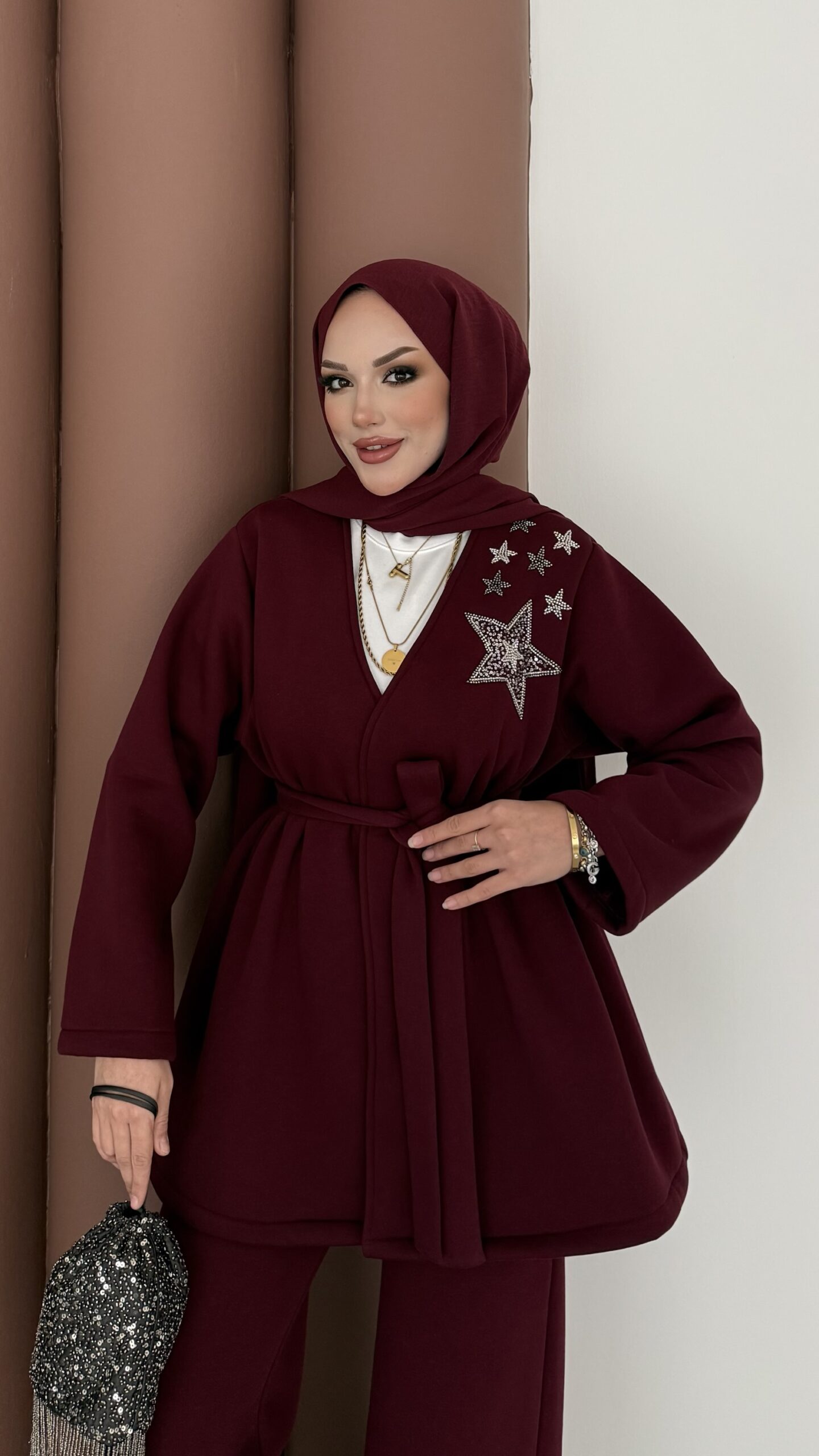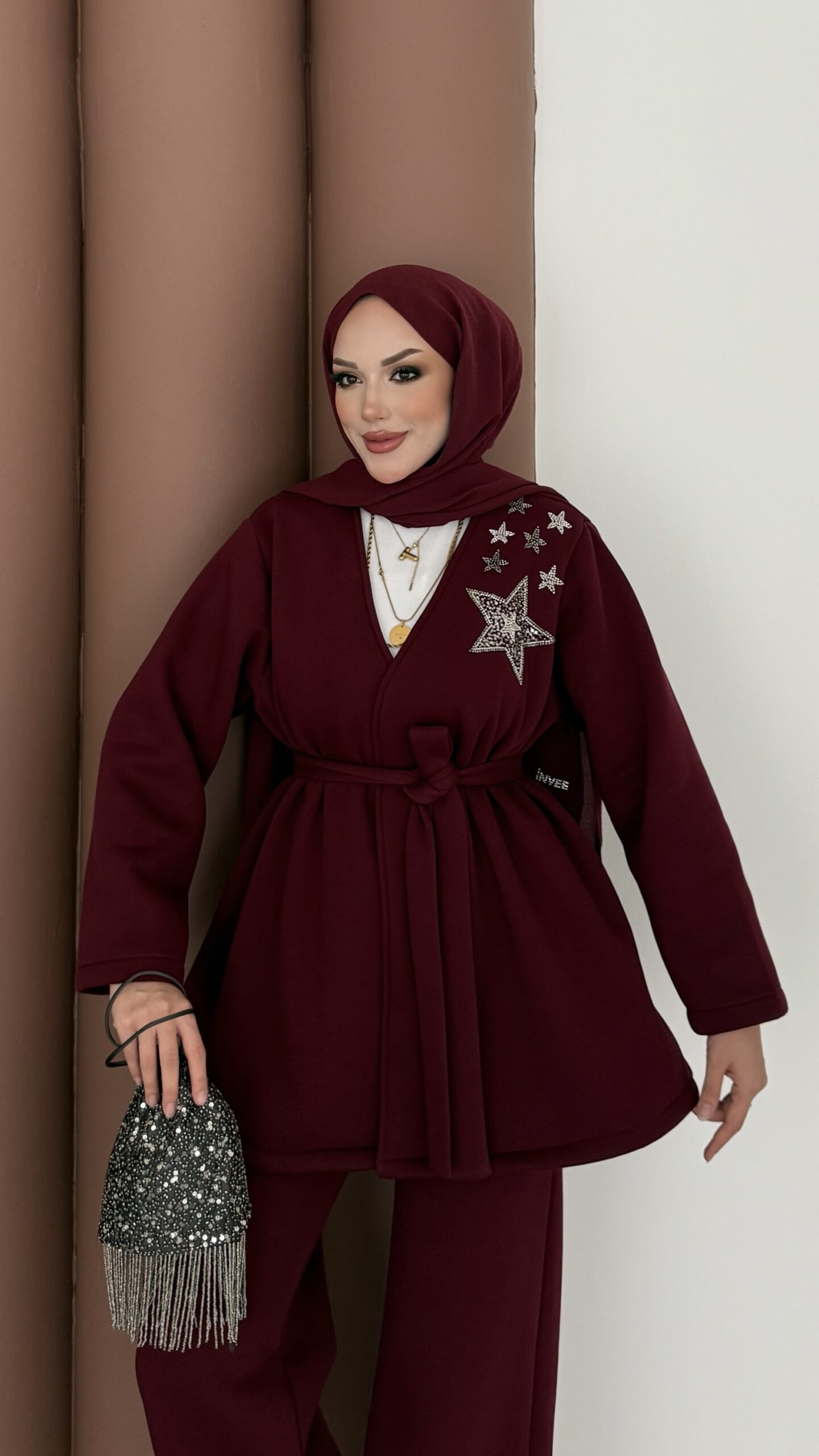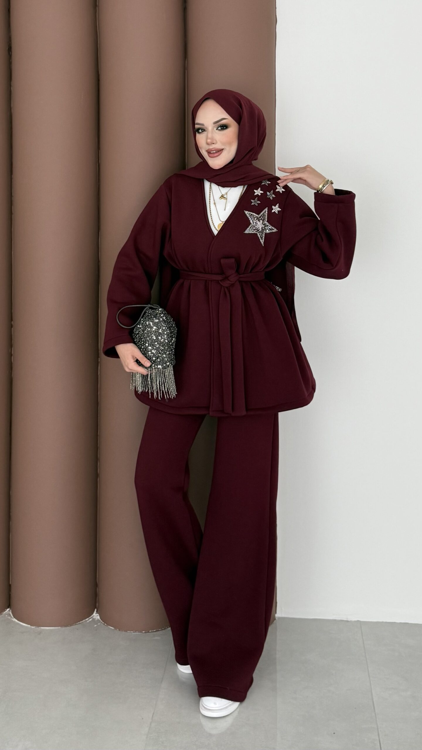 Yıldız Nakışlı Şardonlu İkili Takım – Bordo