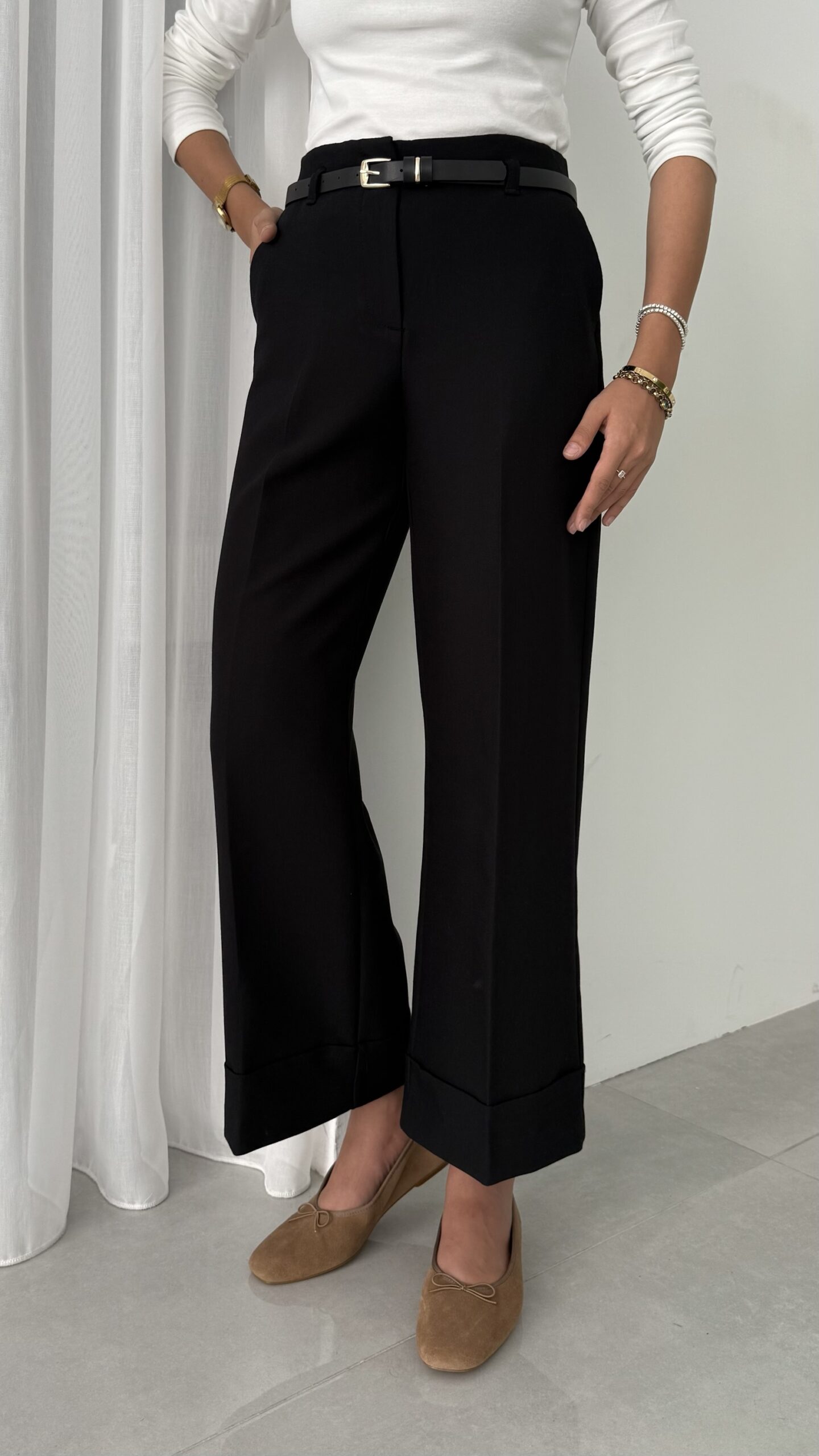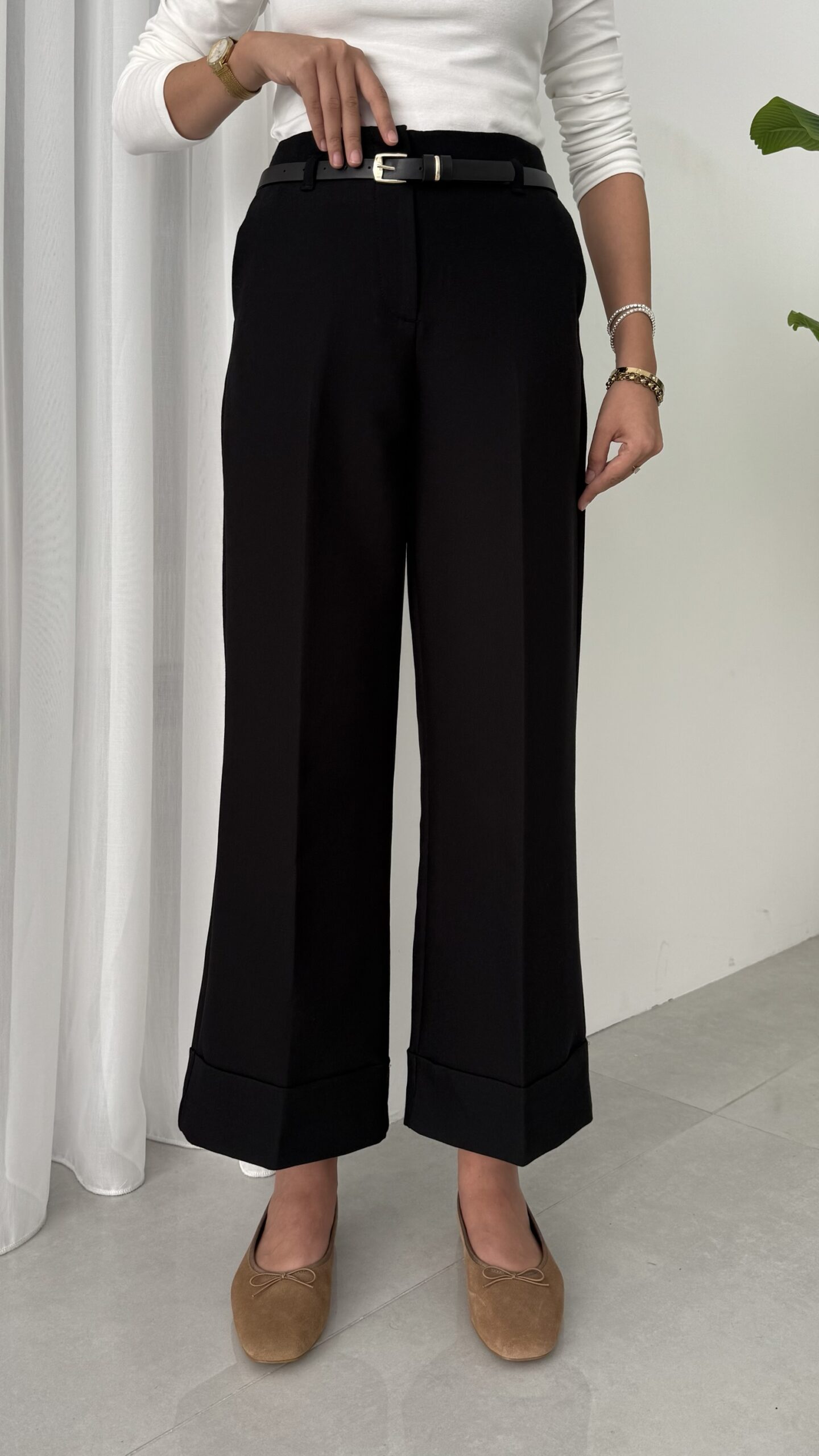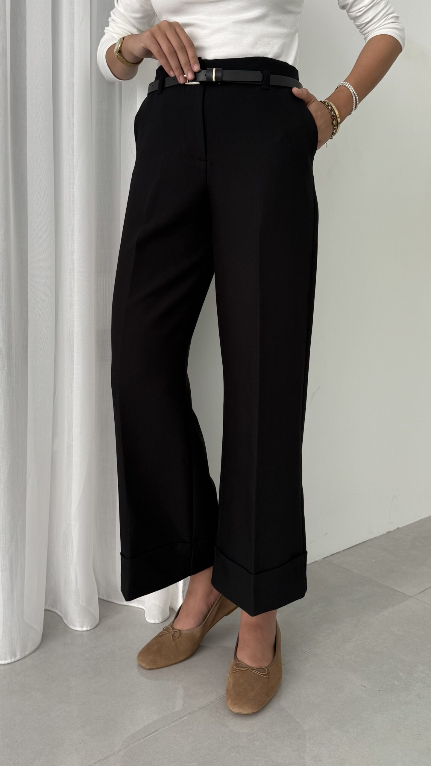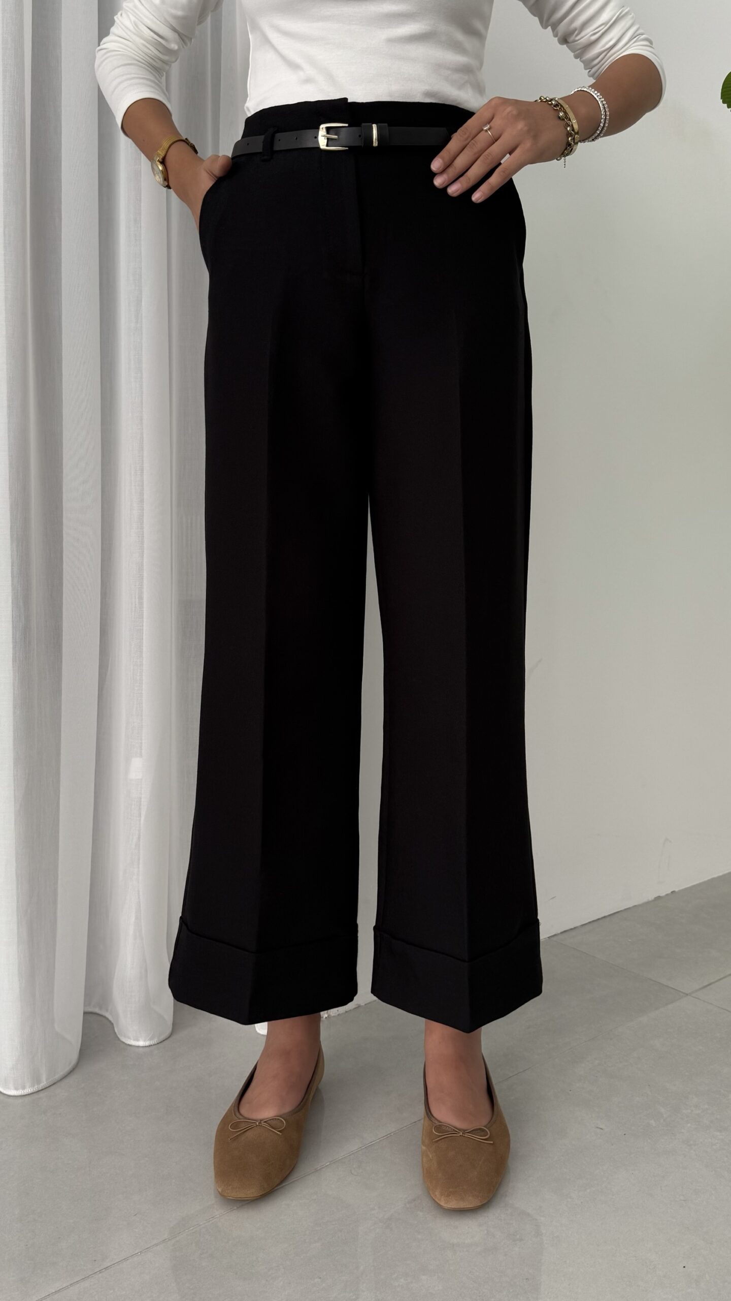 Zra Marka Muadili Kemerli Kıvrık Paça Pantolon – Siyah