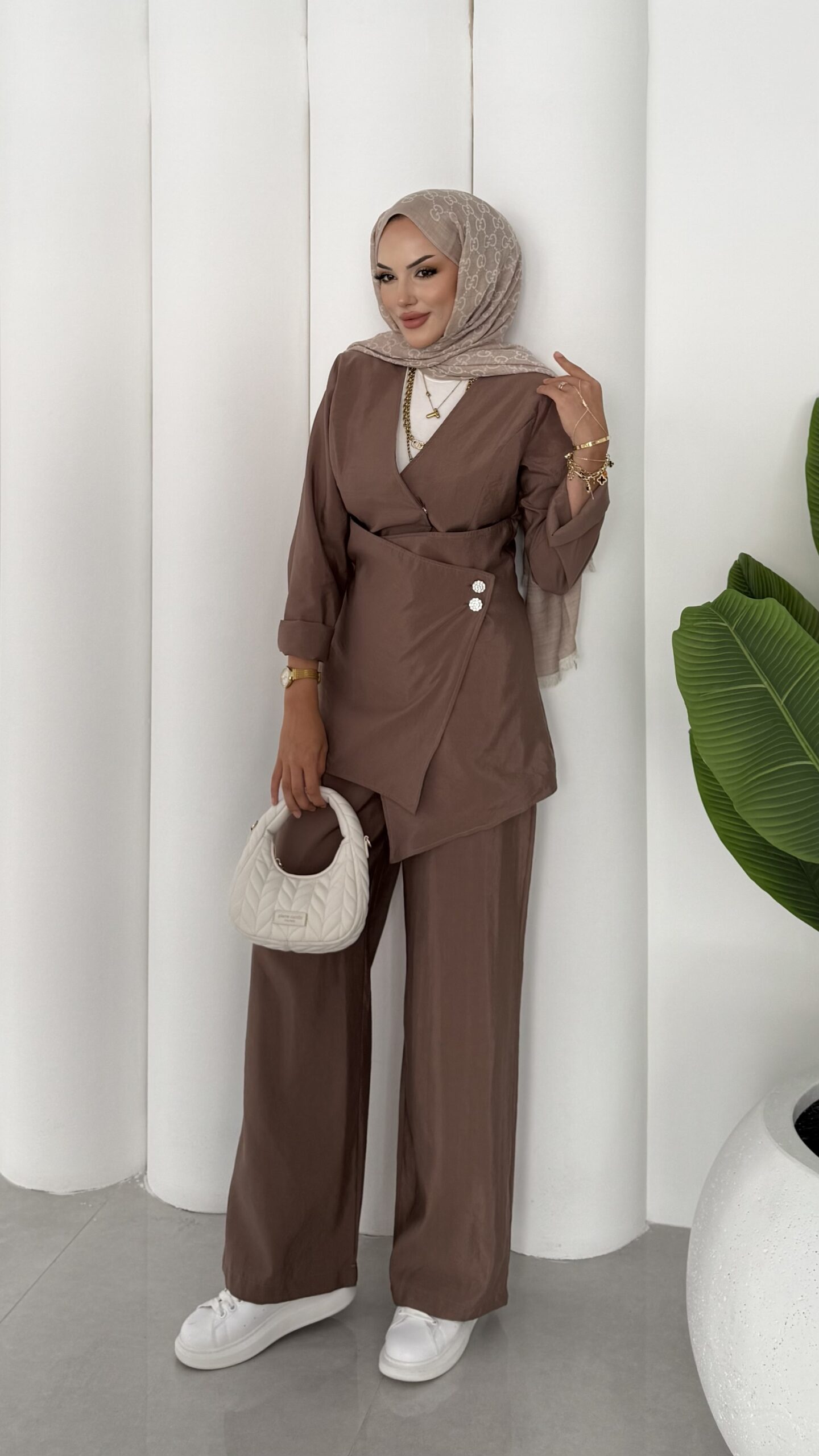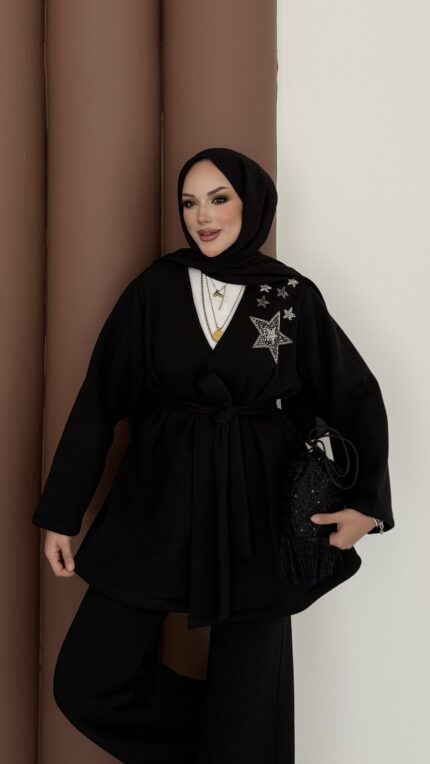 Fashion Premium Taşlı İkli Takım – Kahverengi