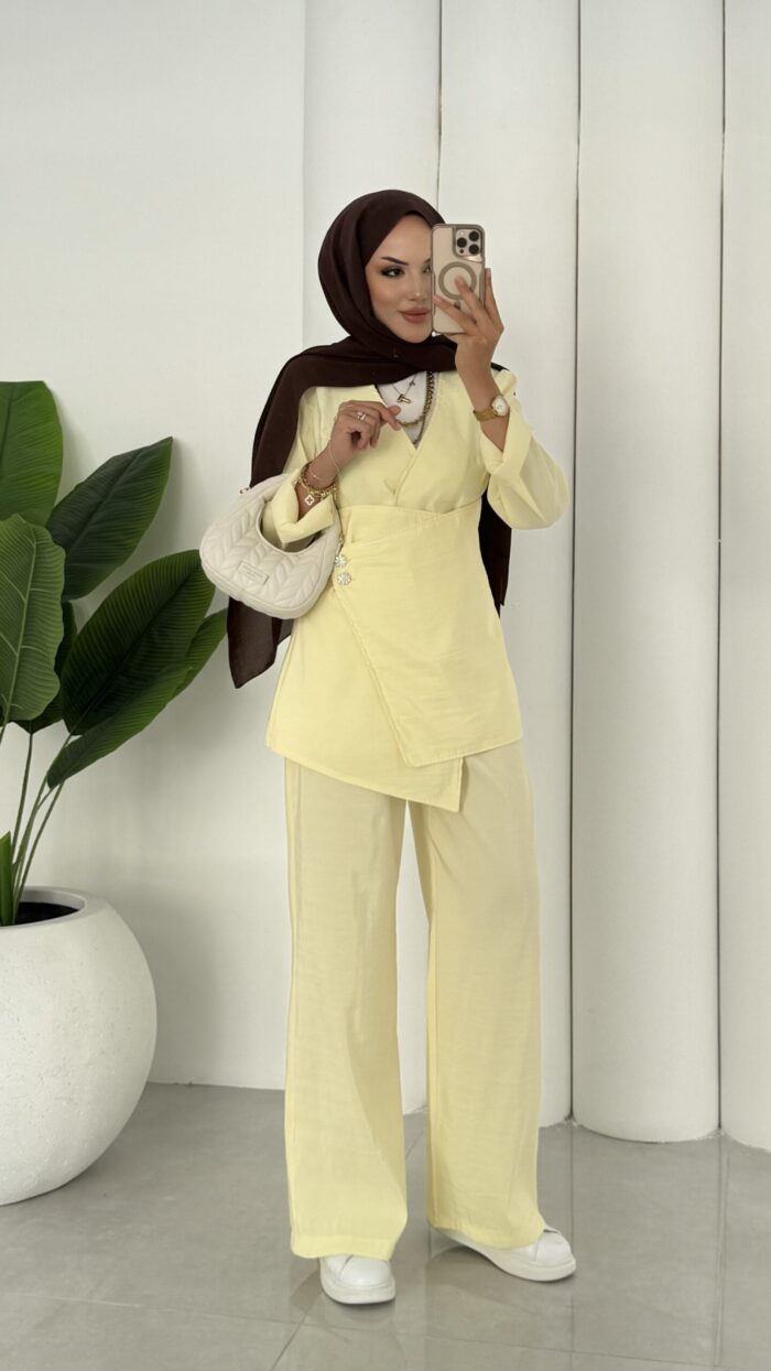 Fashion Premium Taşlı İkli Takım – Sarı