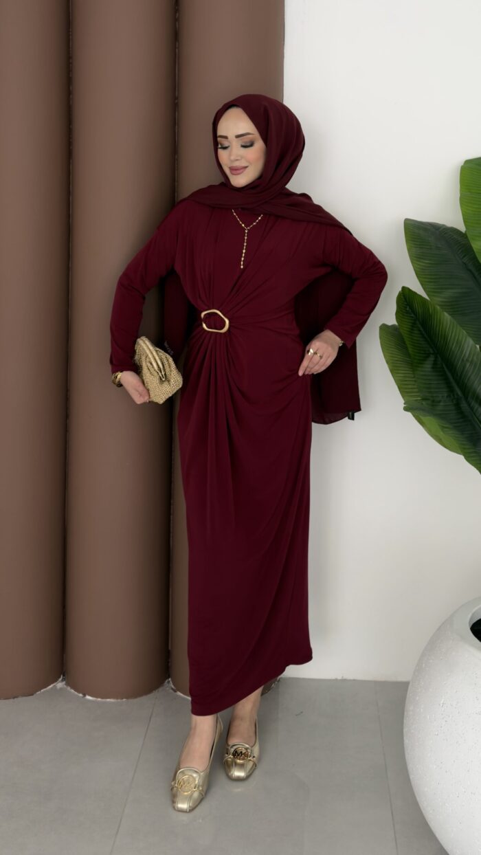 Fiori Sandy Tokalı Elbise – Bordo