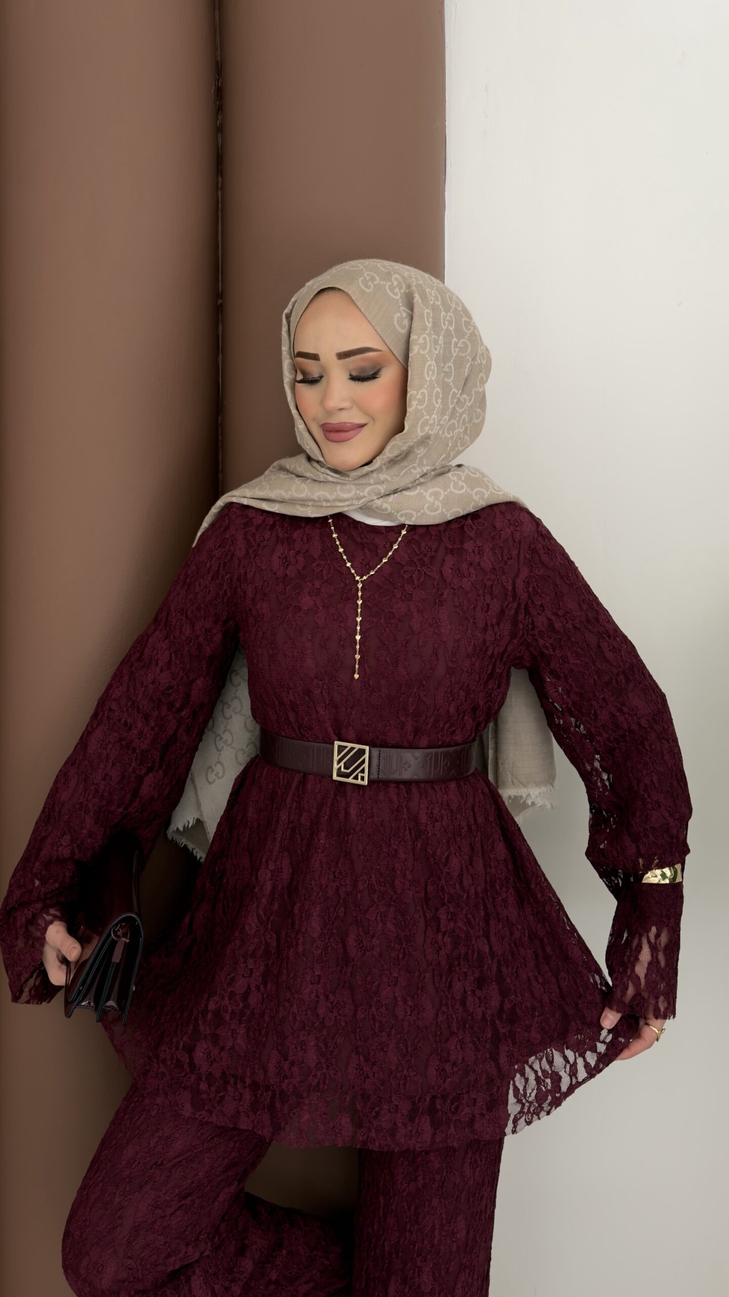 Elite Dantelli Kot İkili Takım - Kahverengi