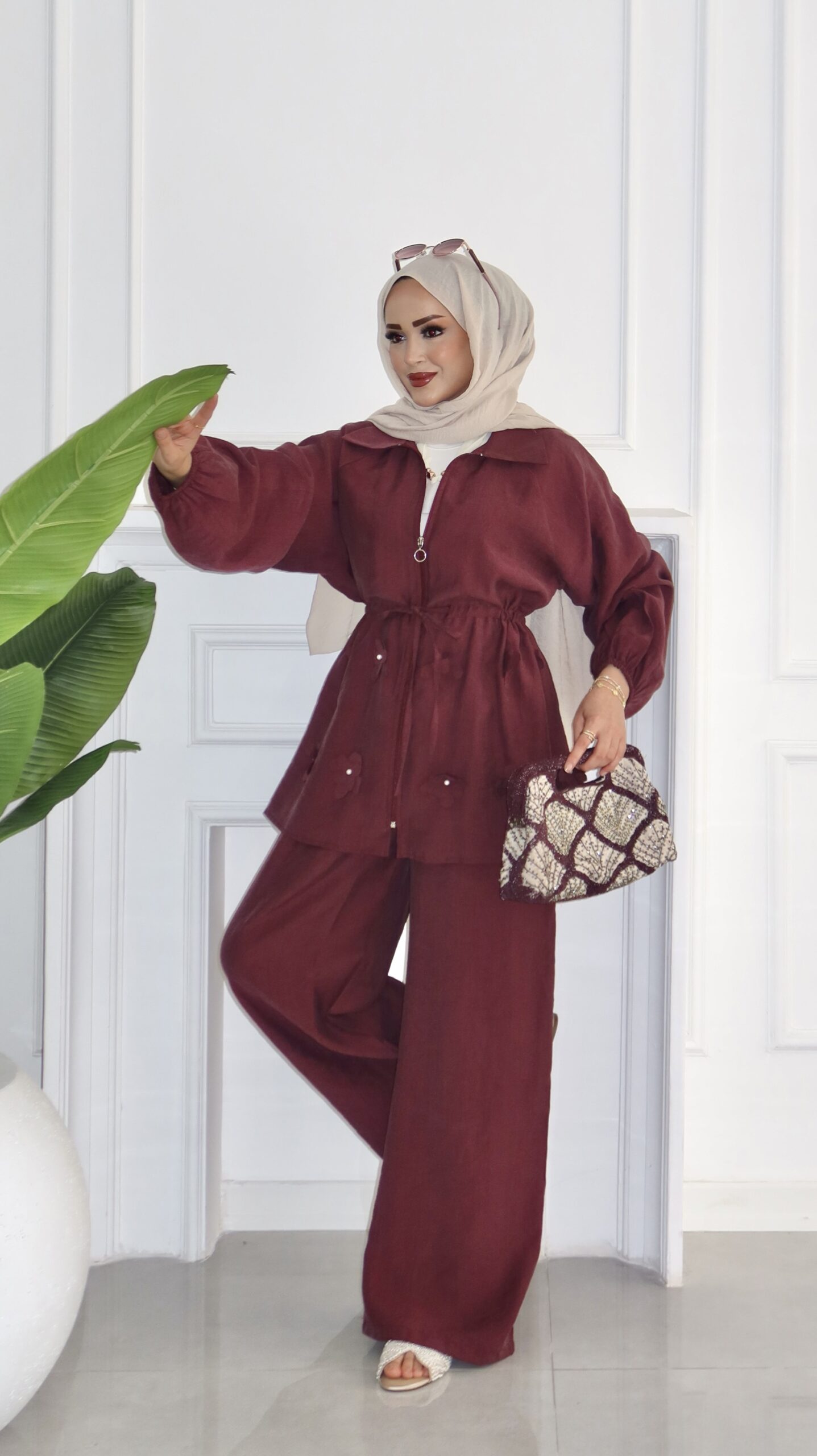 Flower İnci Tensel İkili Takım – Mürdüm