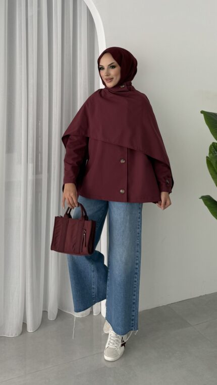 Peluş Garnili Şardonlu İkili Takım – Bordo