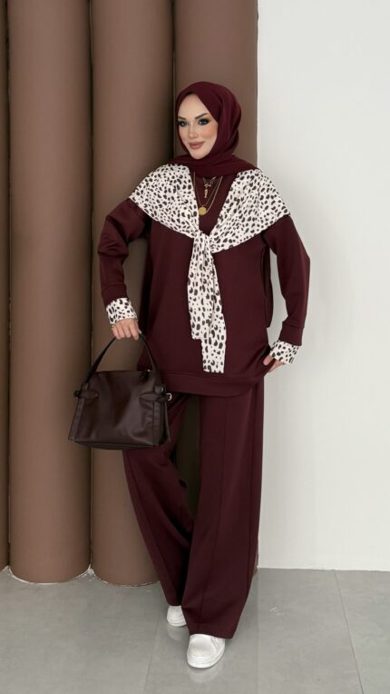 Diamond Taşlı Büzgülü Scuba İkili Takım – Kahverengi