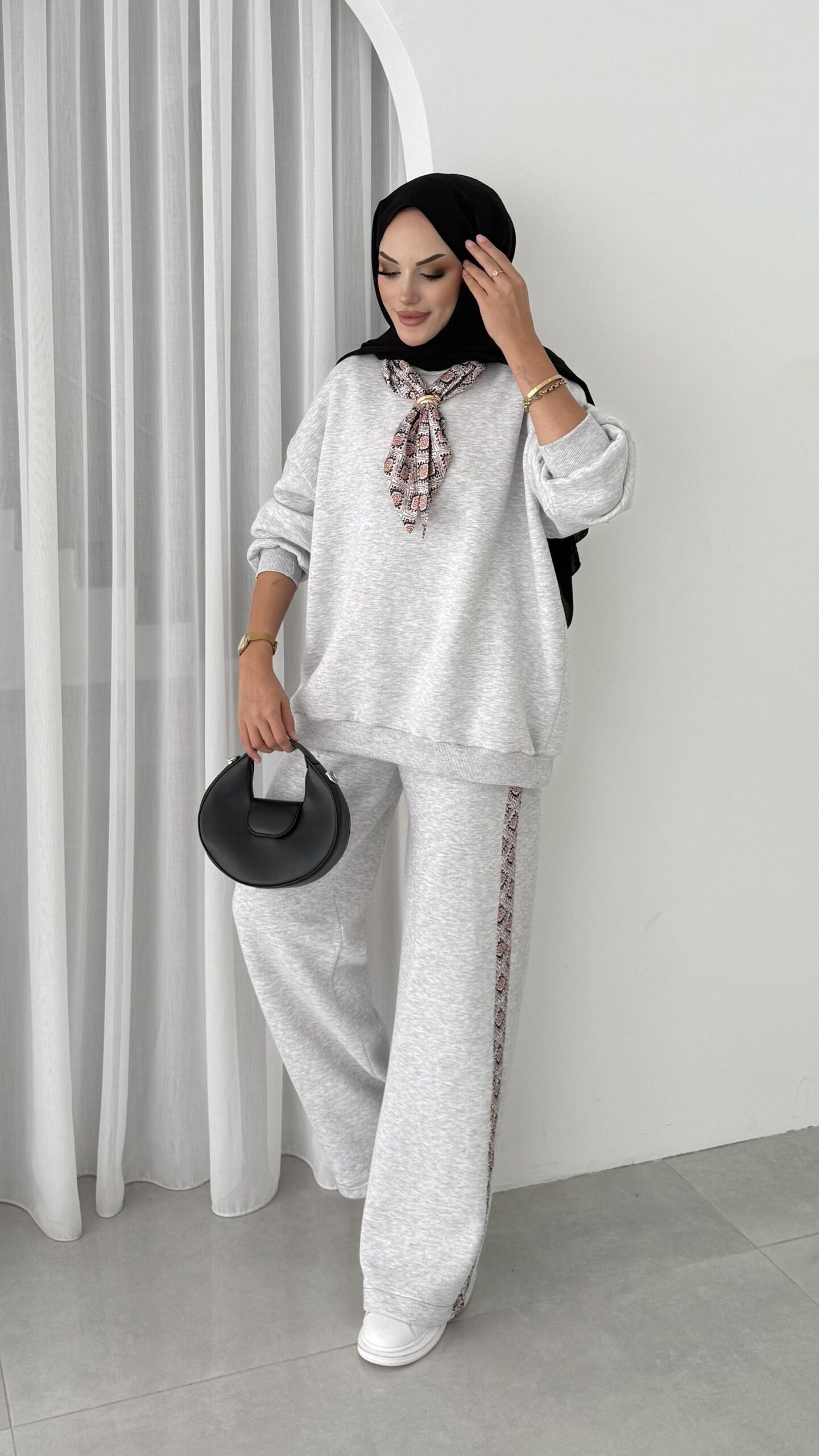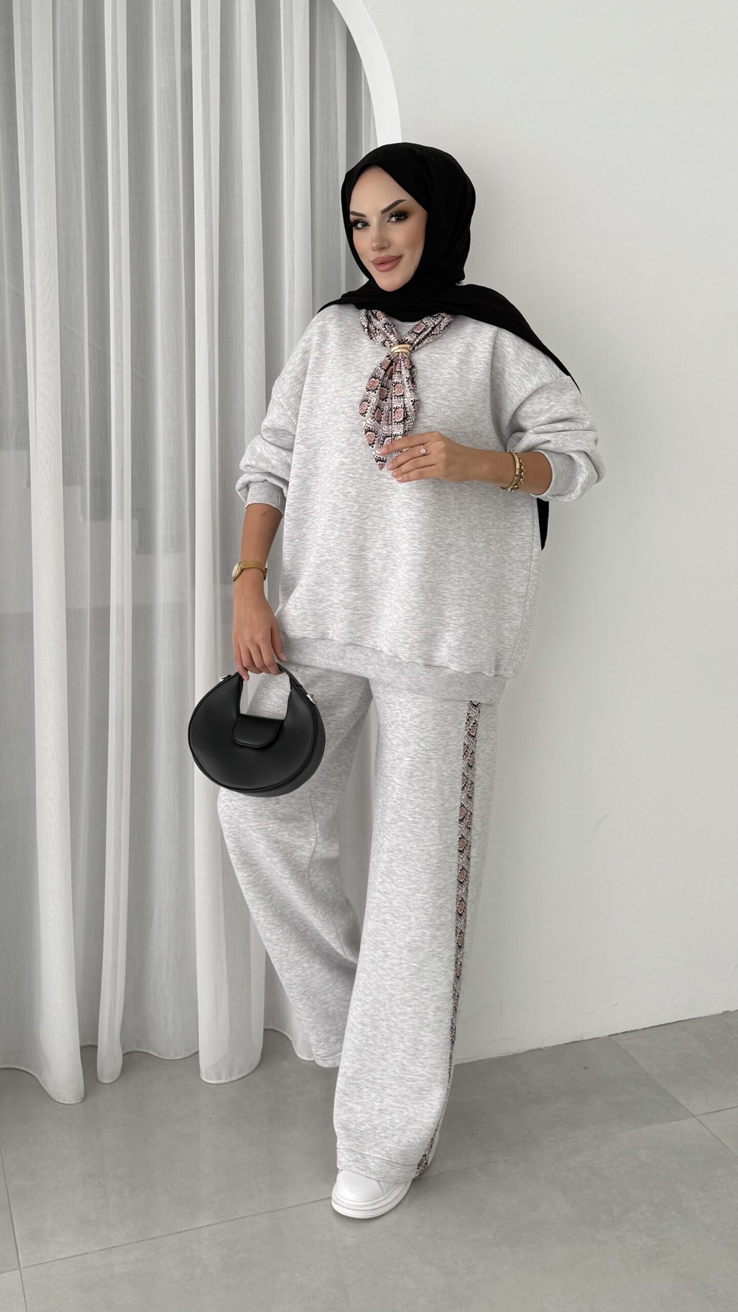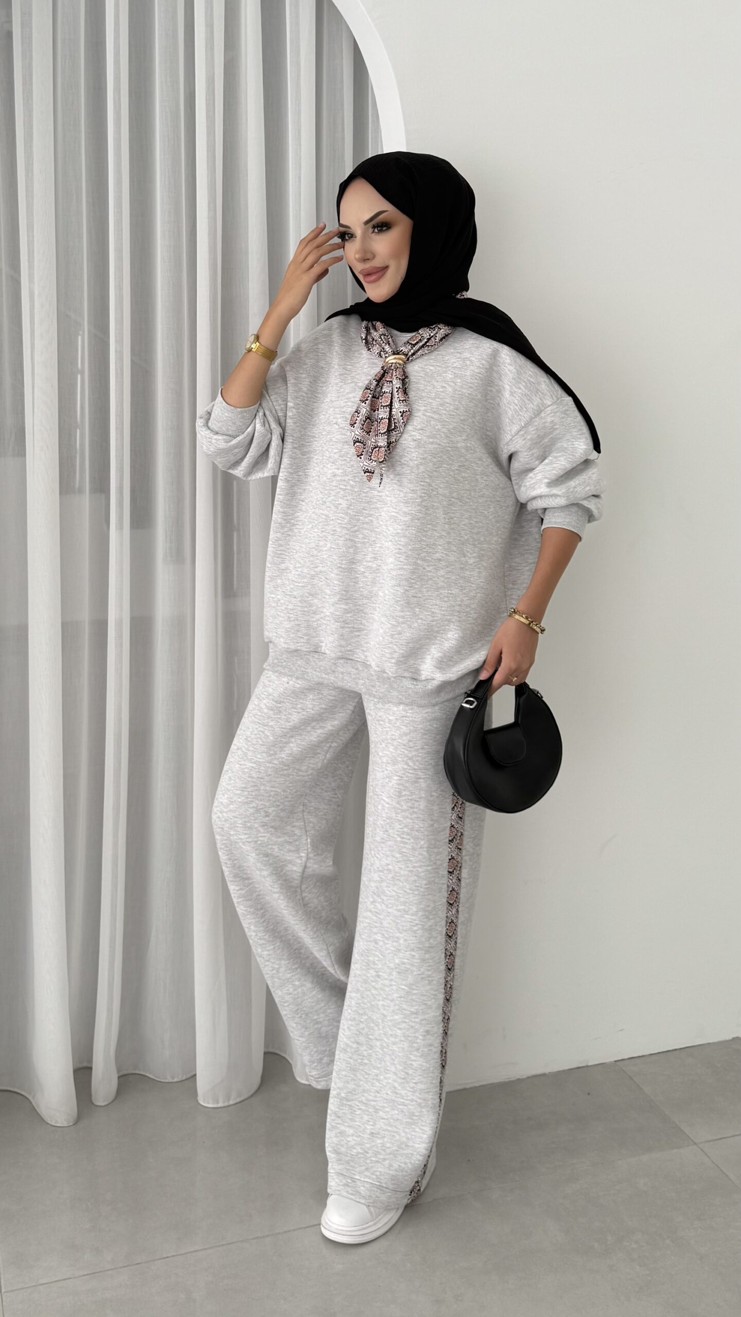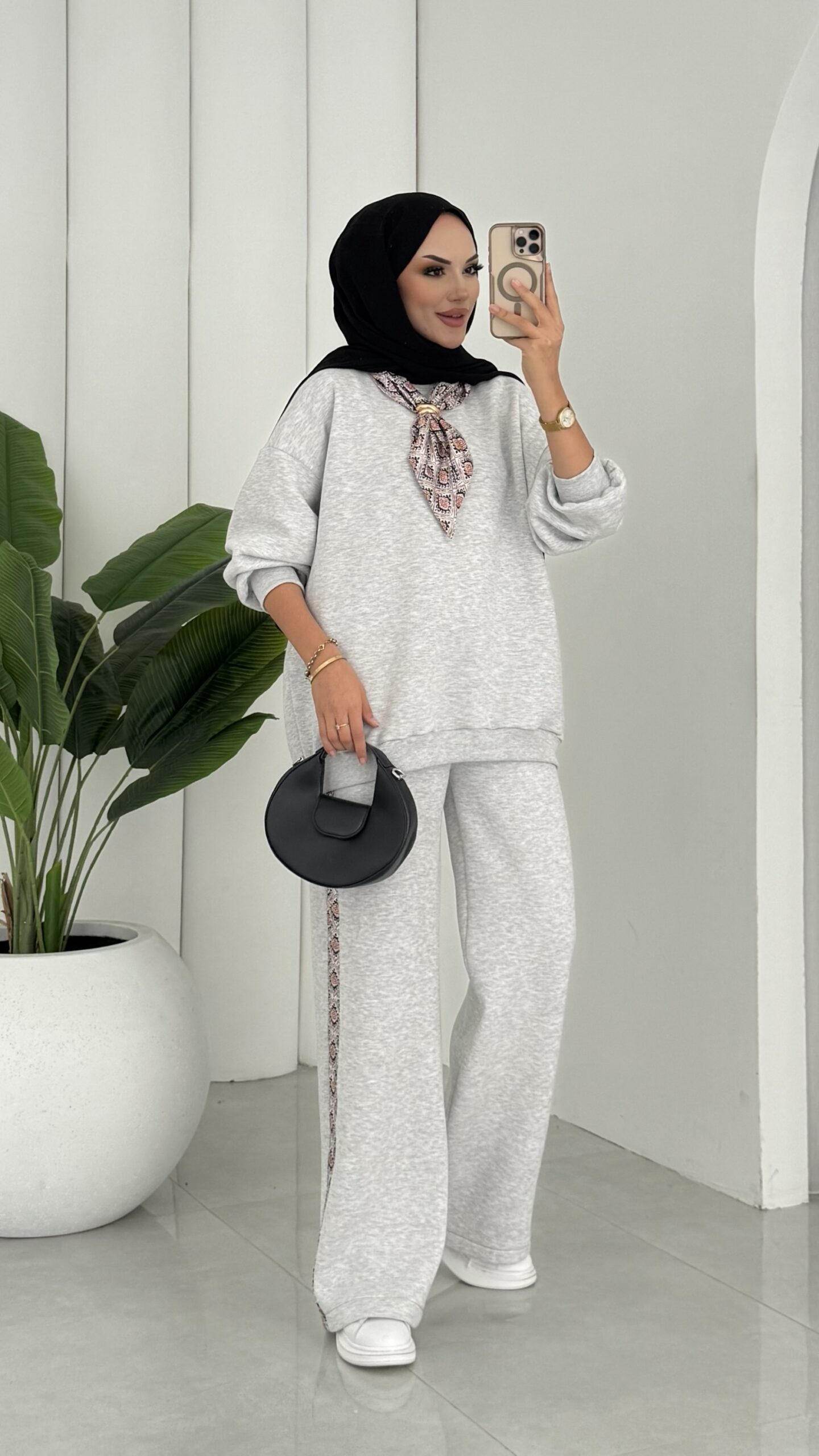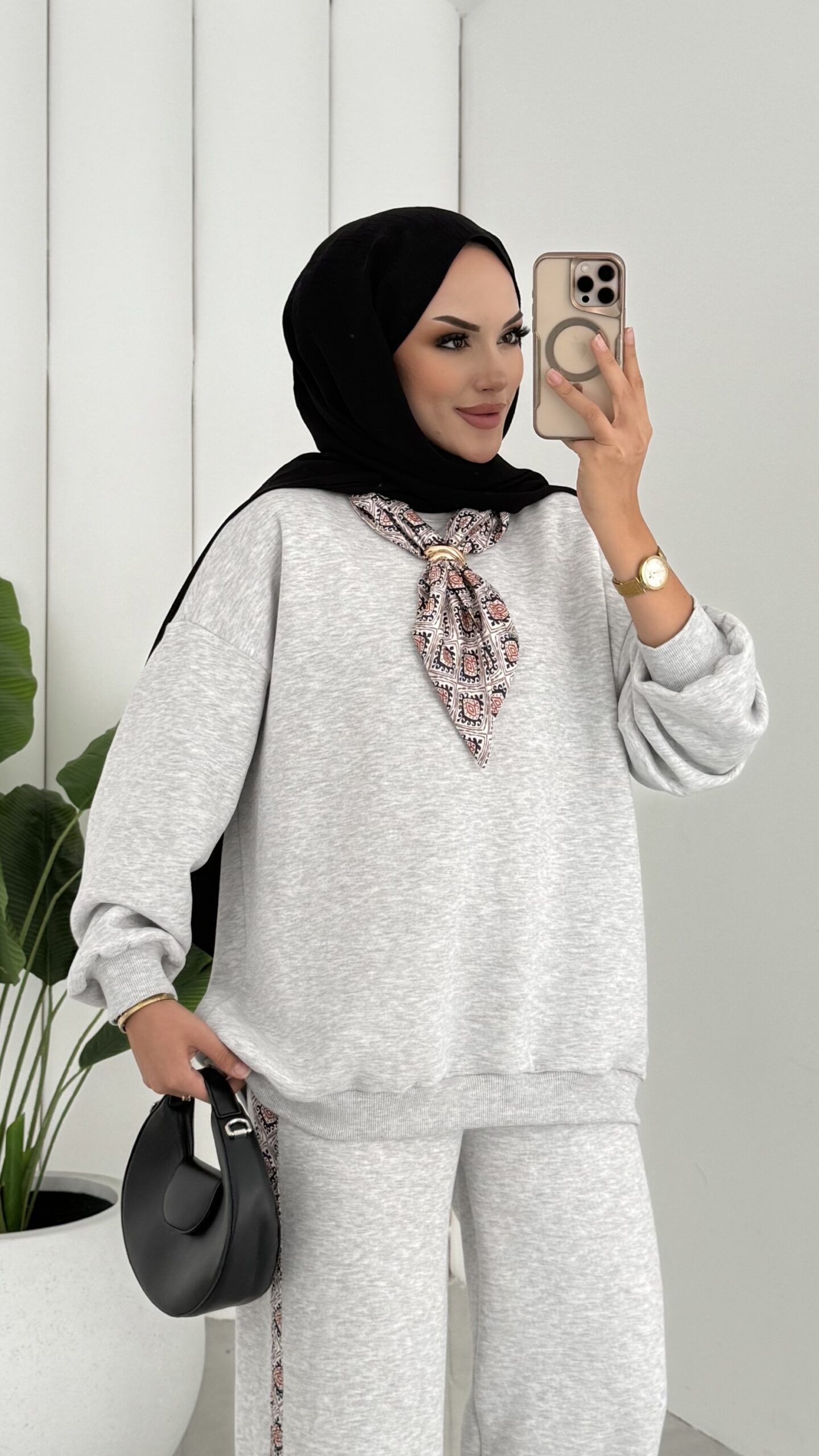 Fular Detaylı Şardonlu Sweat İkili Takım – Gri