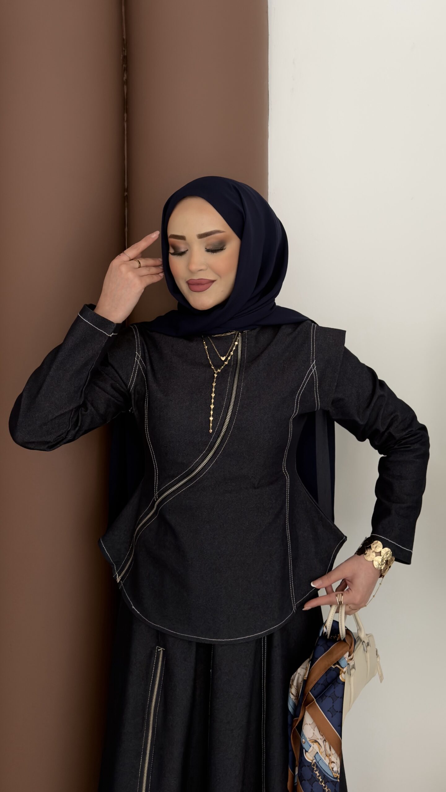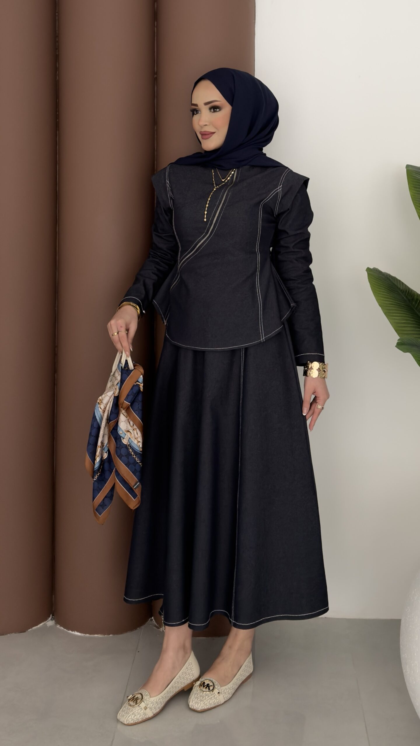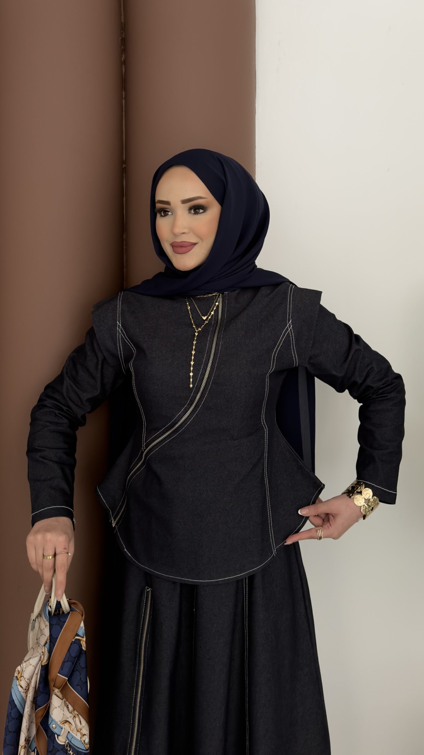 Ghalia Fermuarlı Kot Etekli Takım – Lacivert