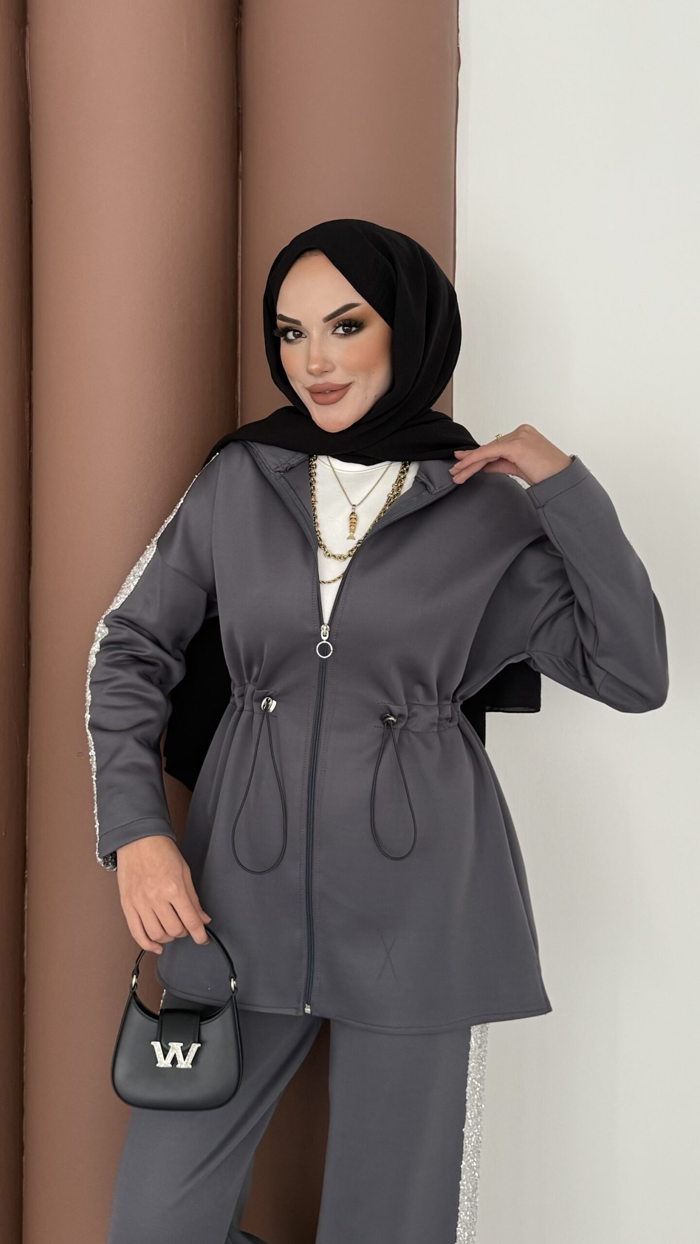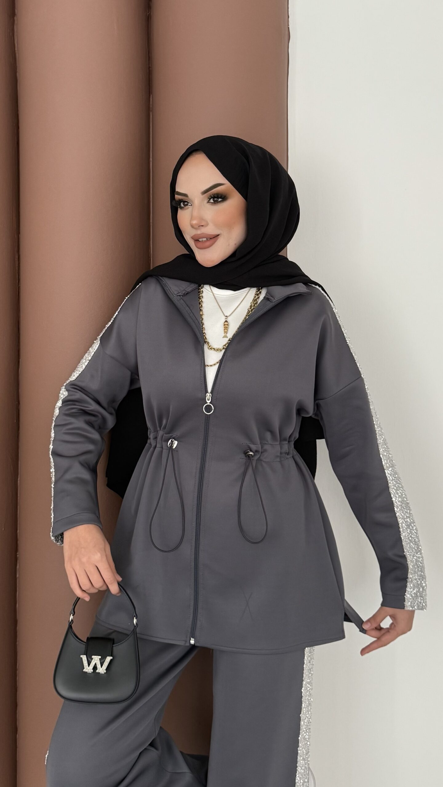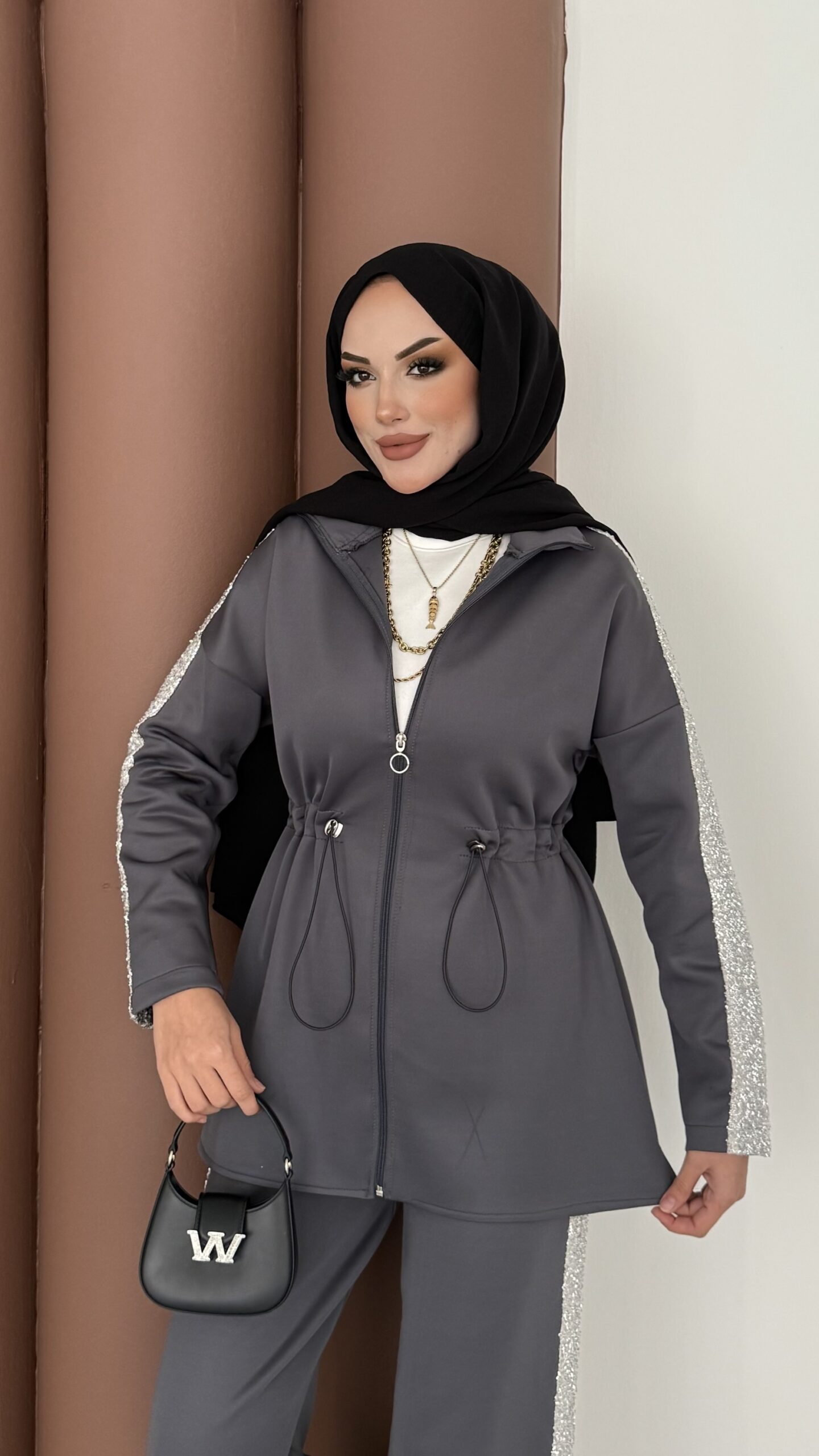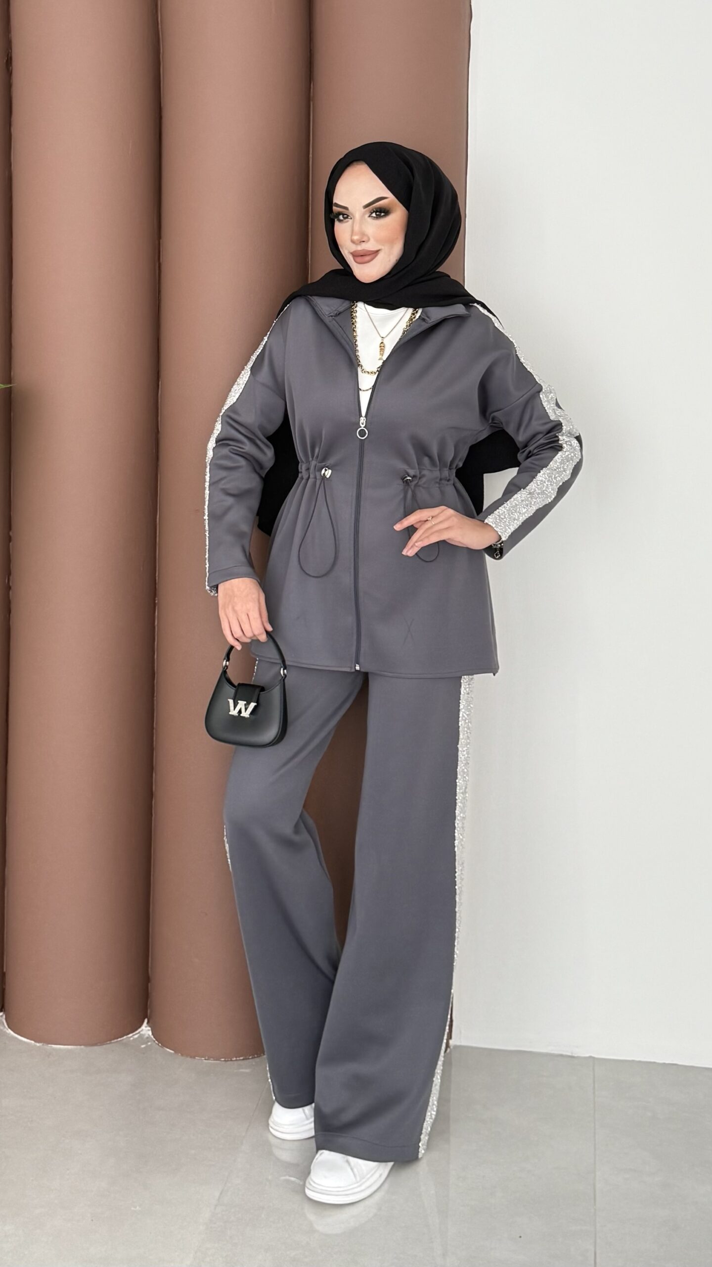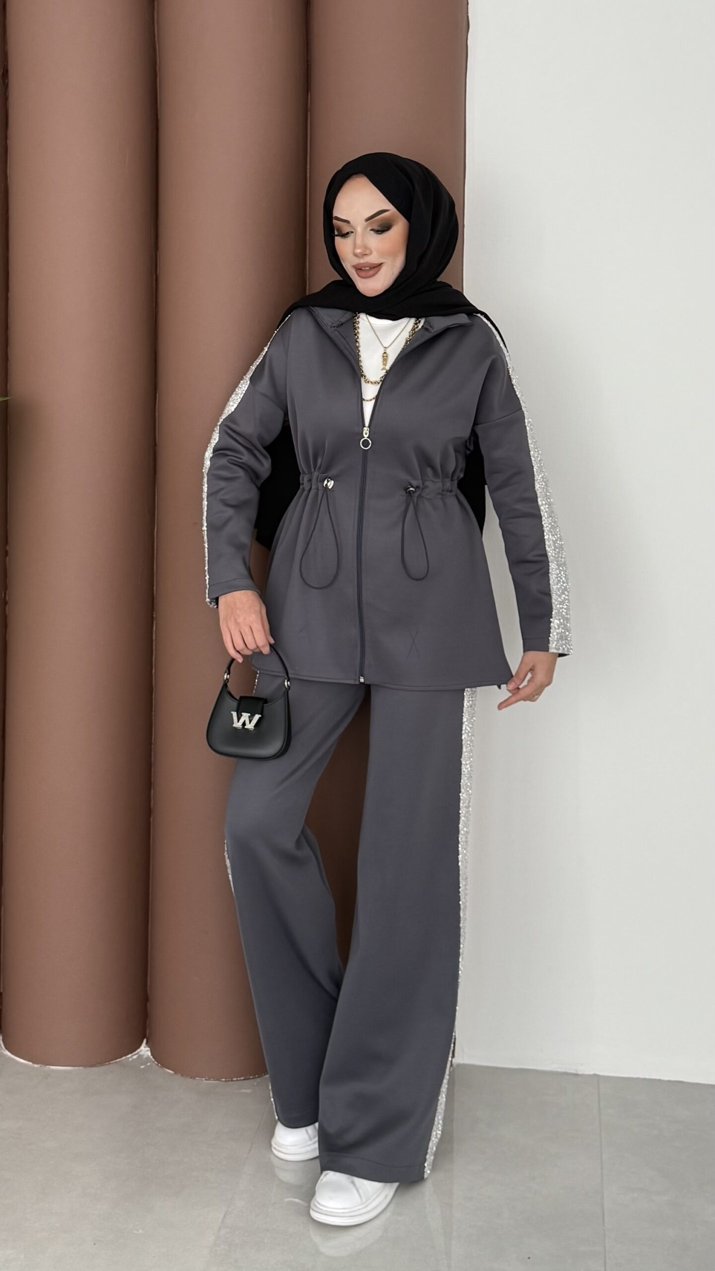 Glow Fermuarlı Scuba İkili Takım – Antrasit