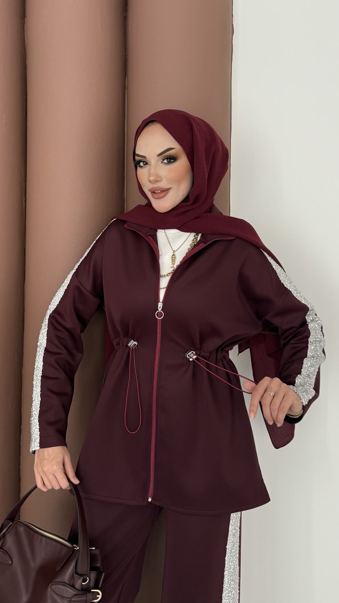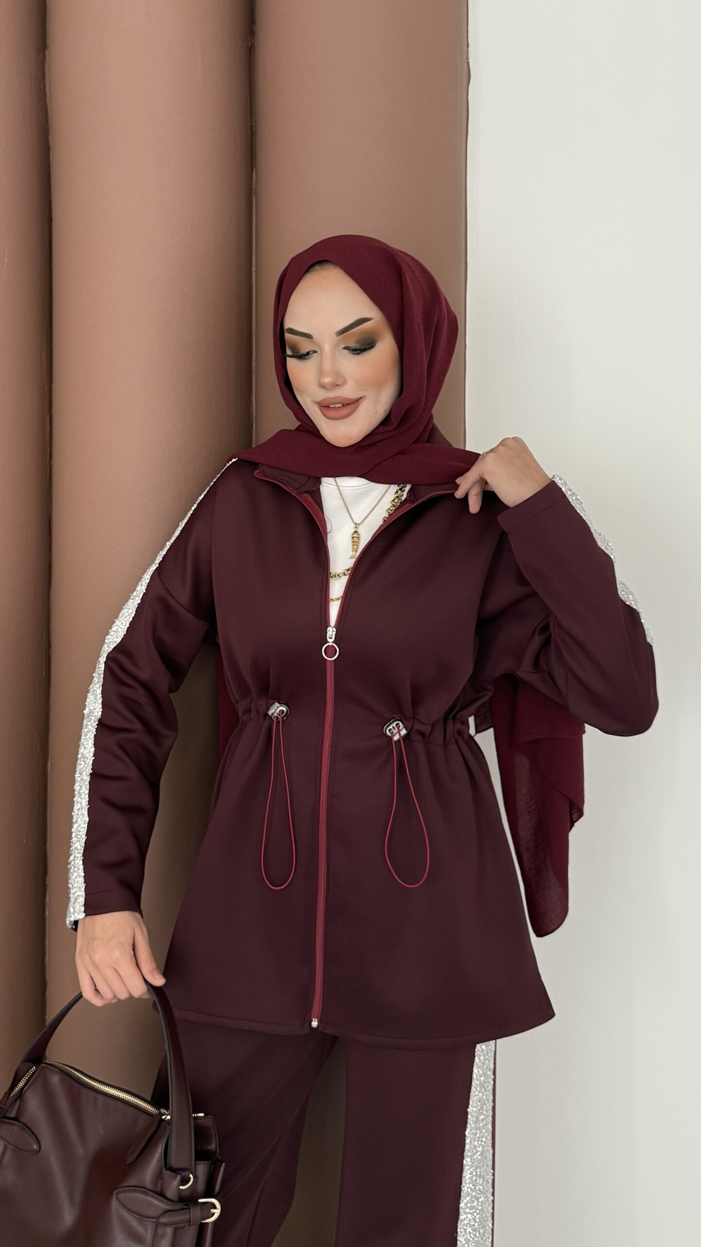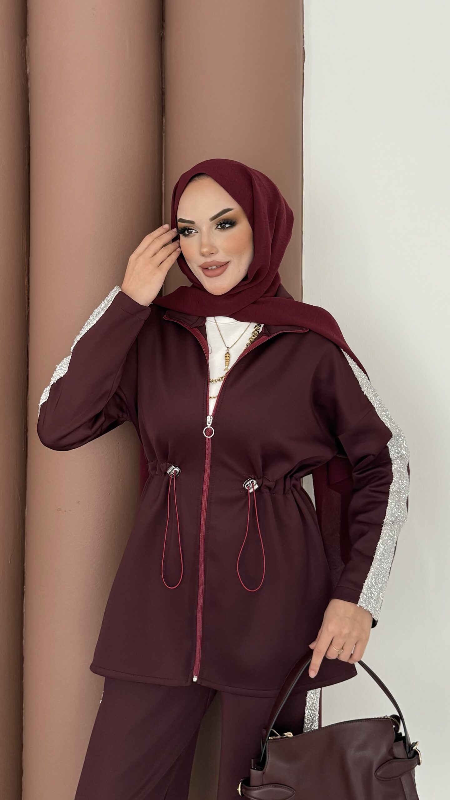 Glow Fermuarlı Scuba İkili Takım – Bordo