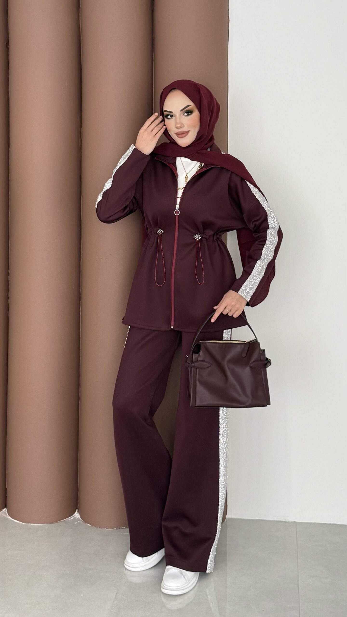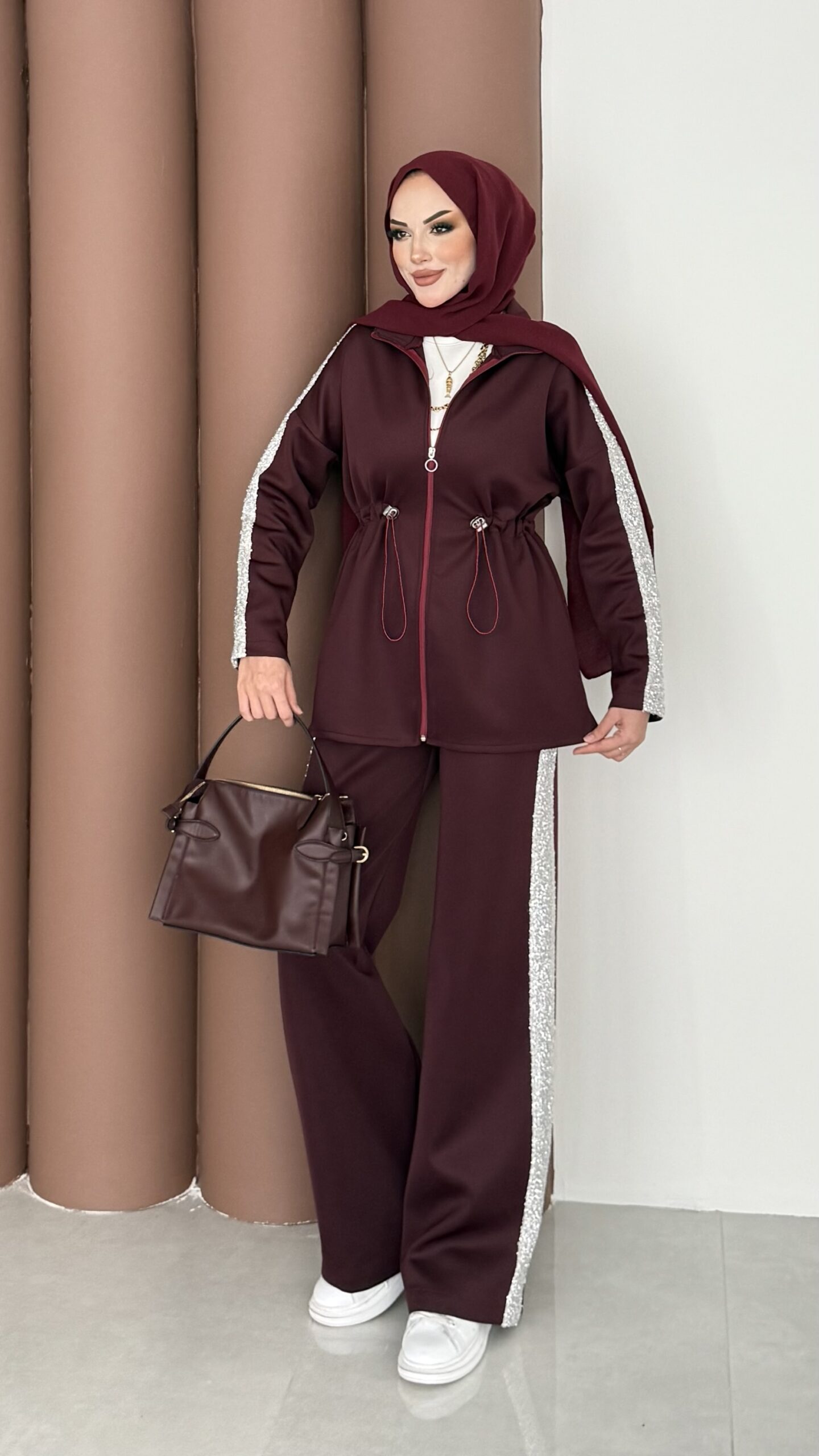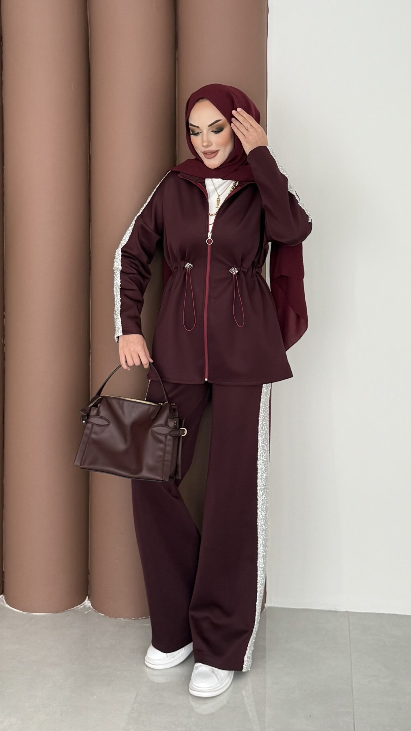 Glow Fermuarlı Scuba İkili Takım – Bordo