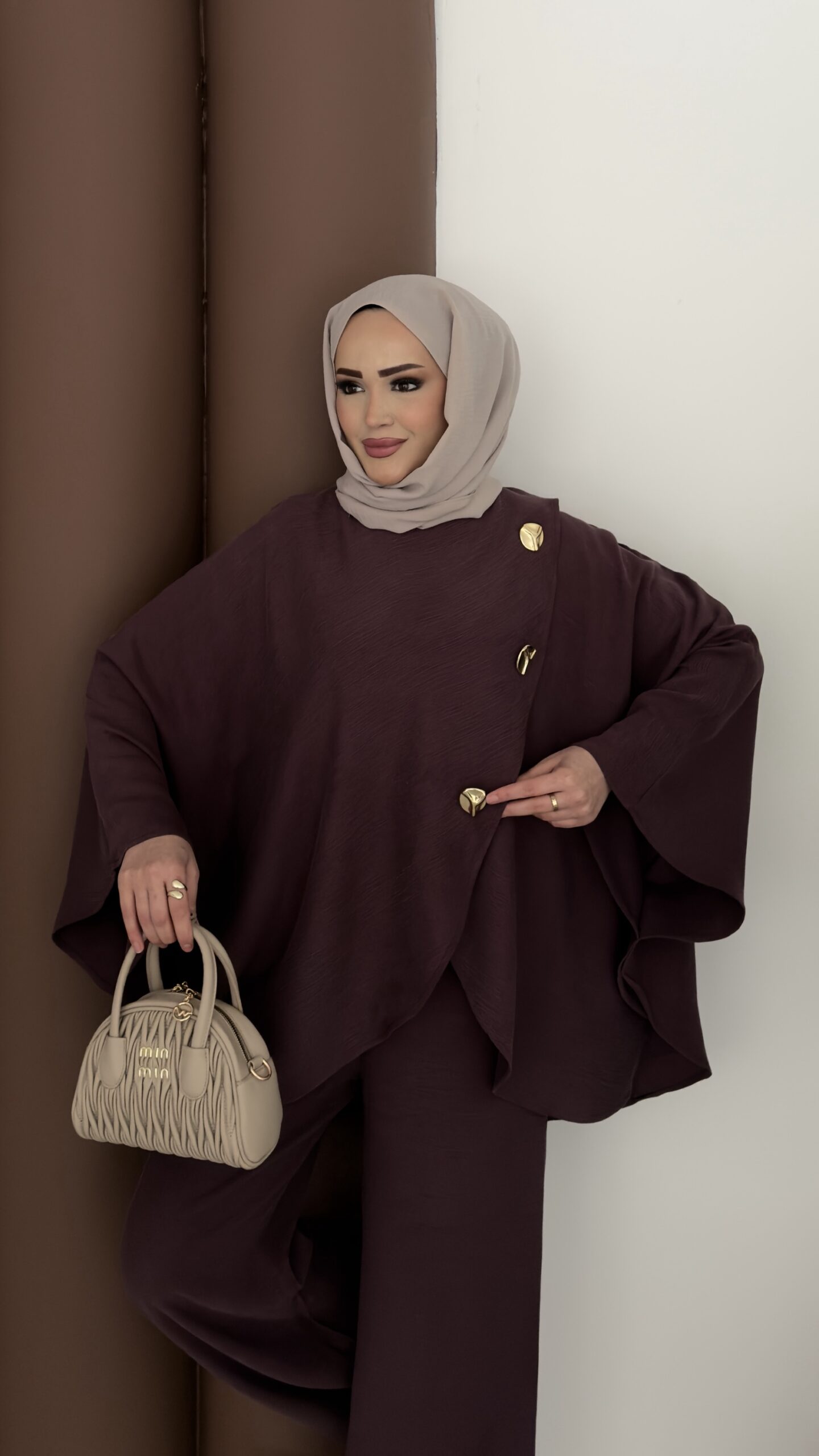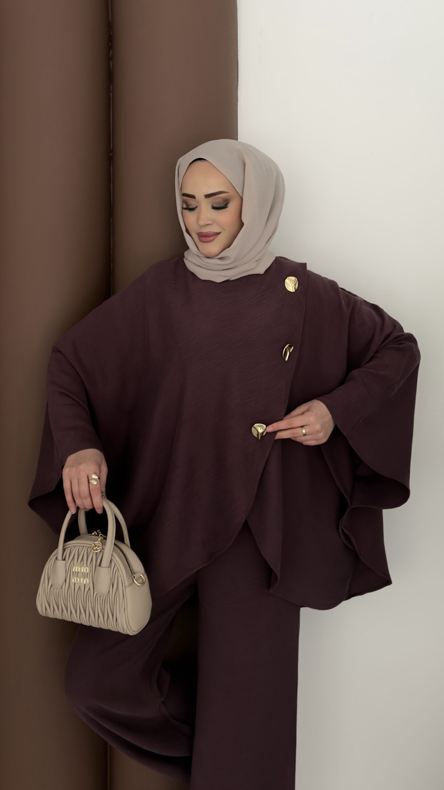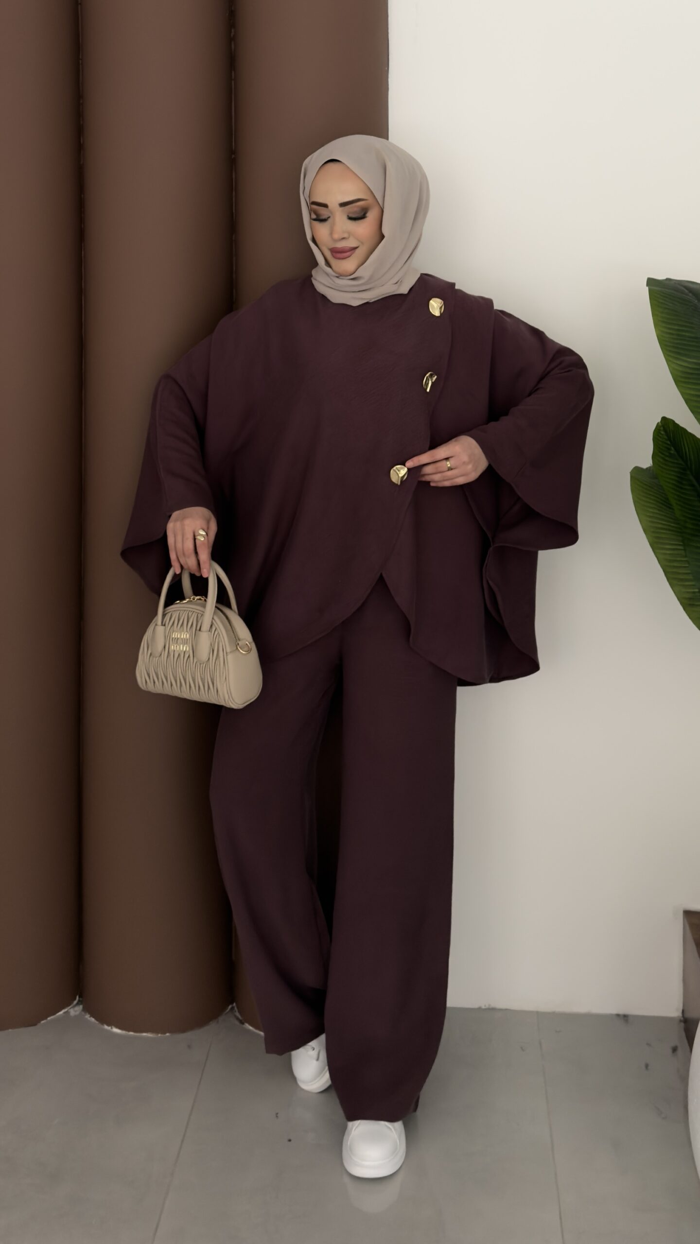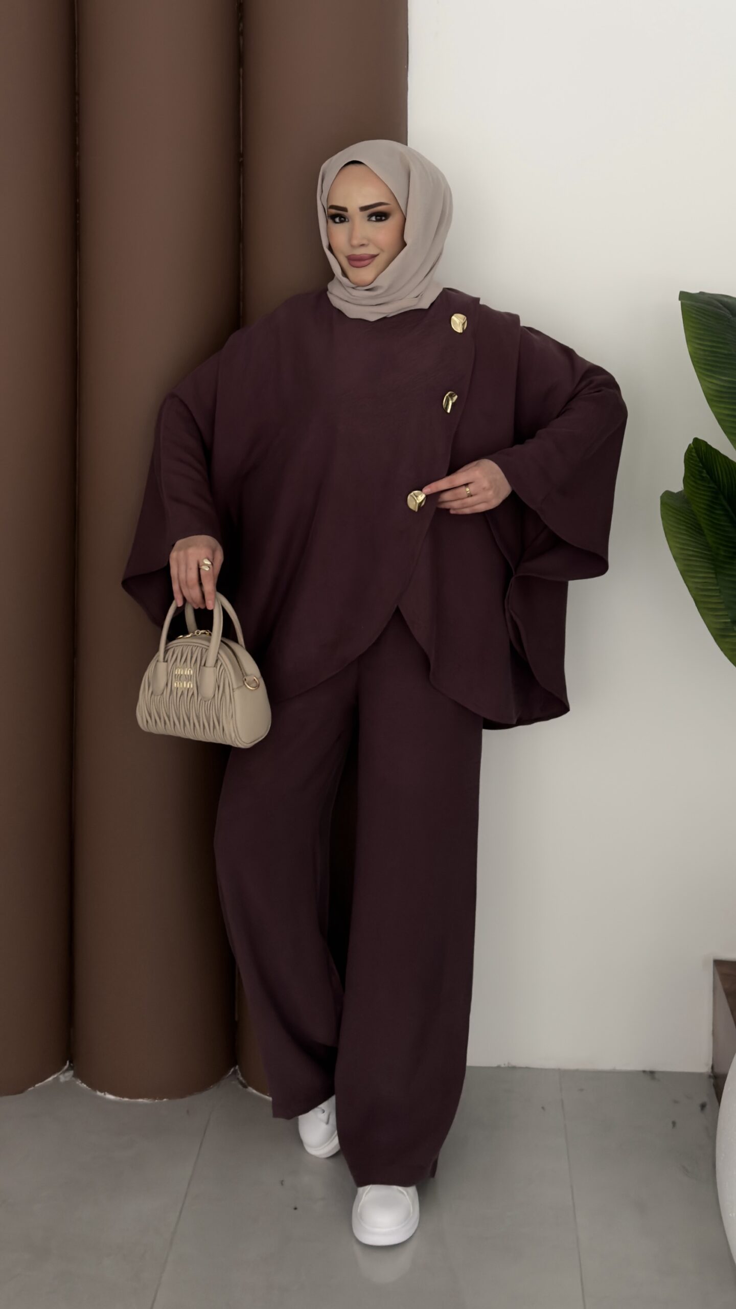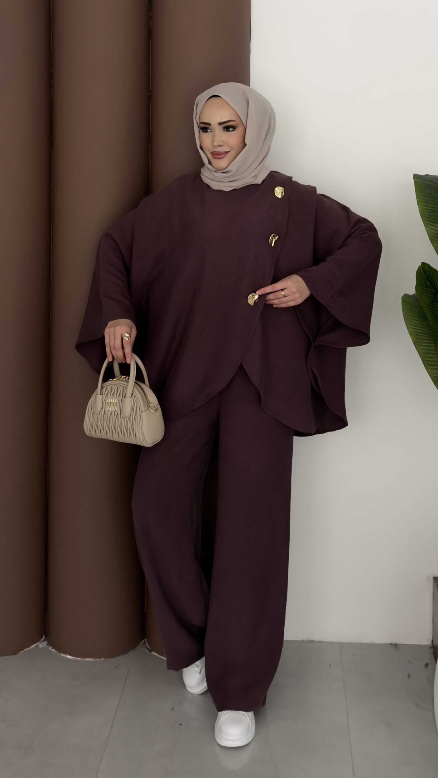 Gold Düğmeli Panço İkili Takım – Mürdüm