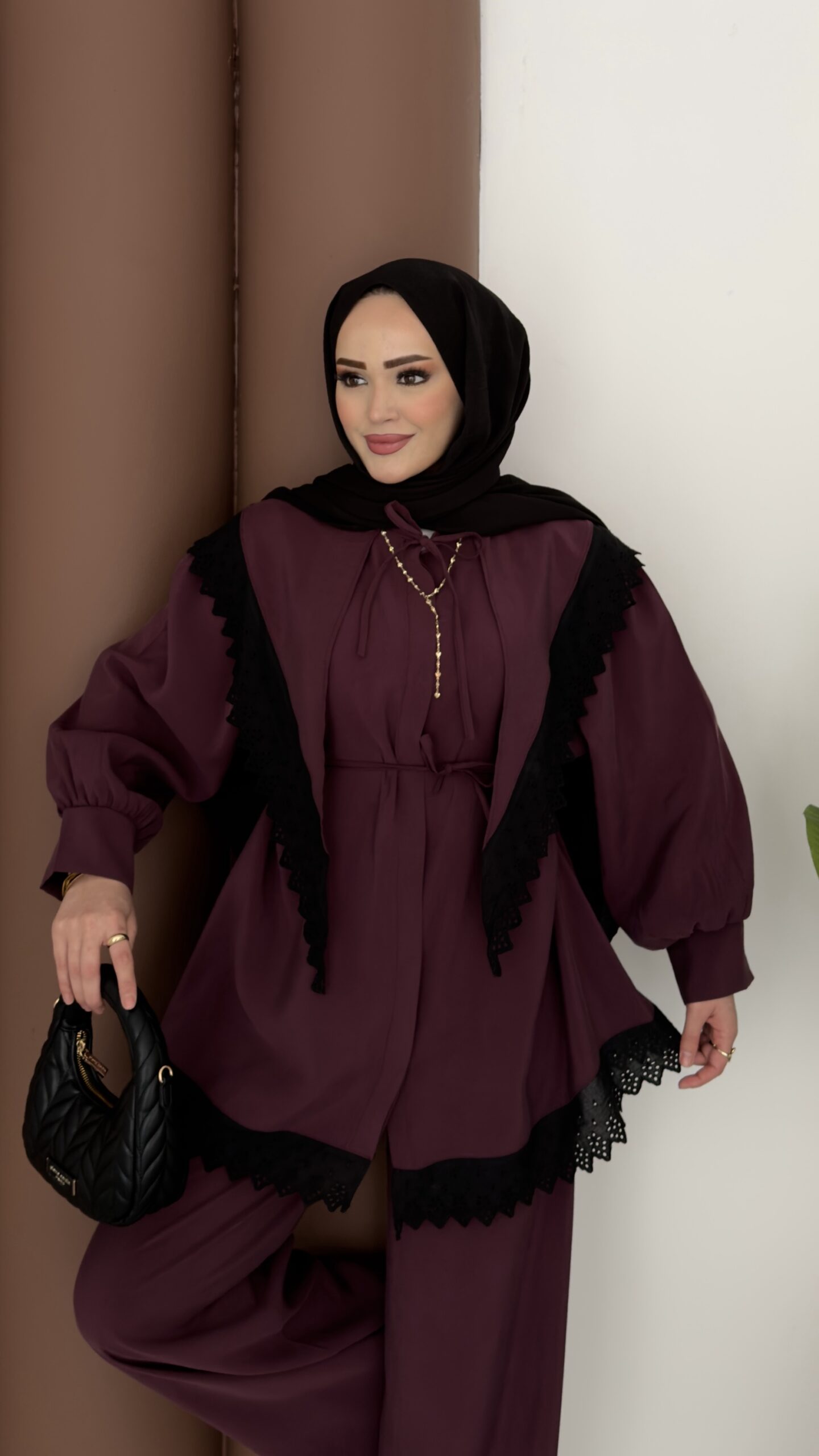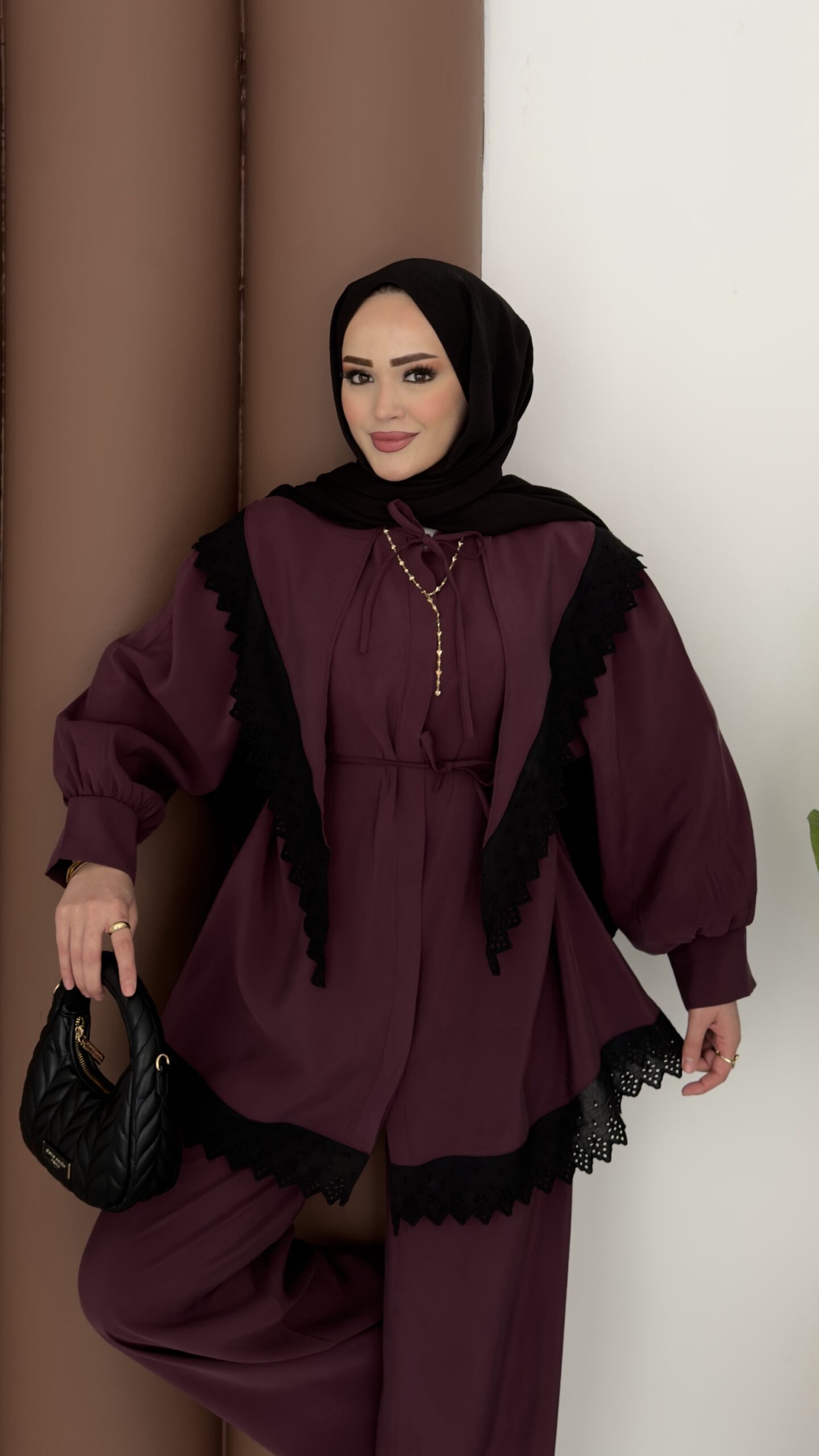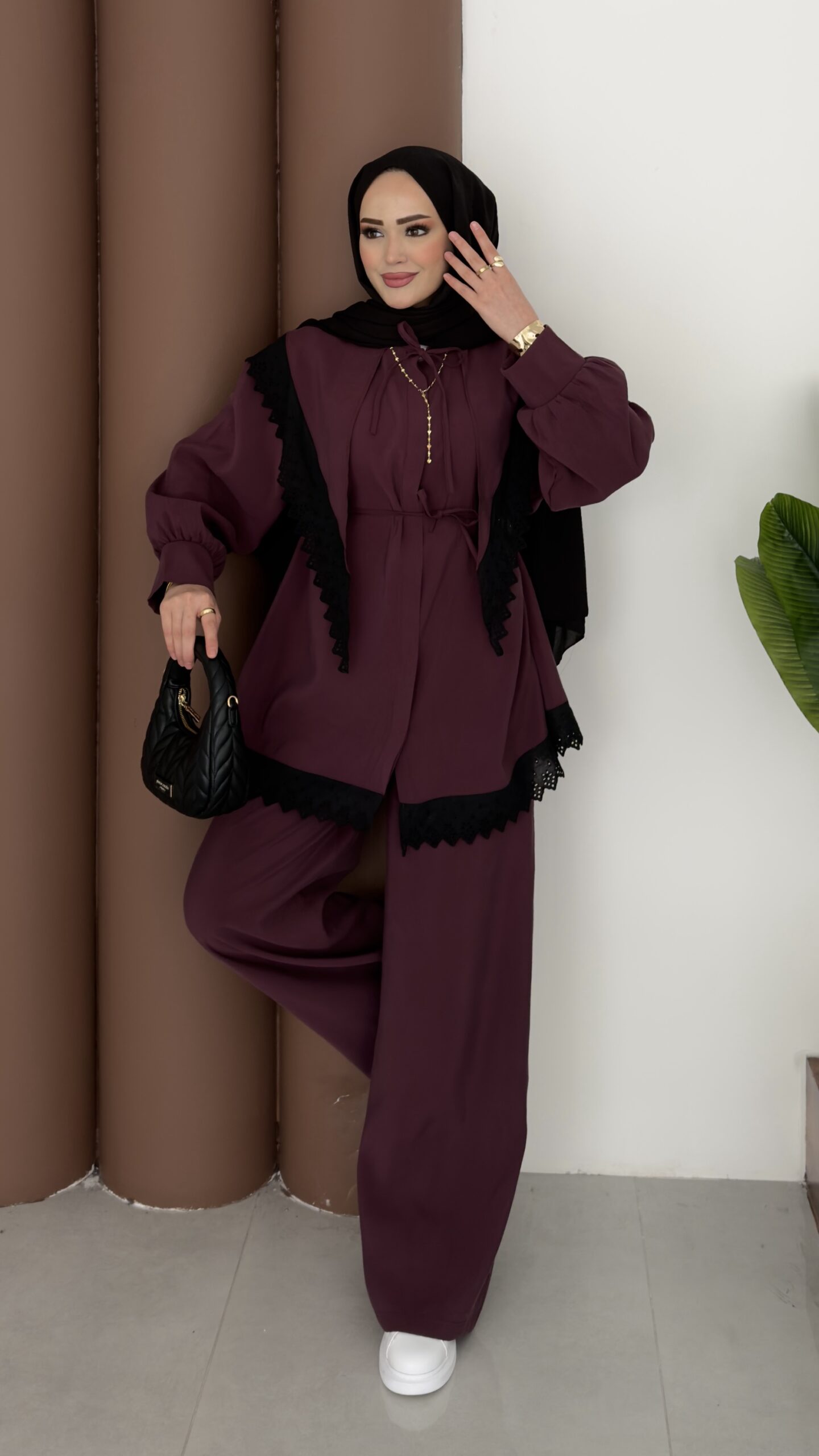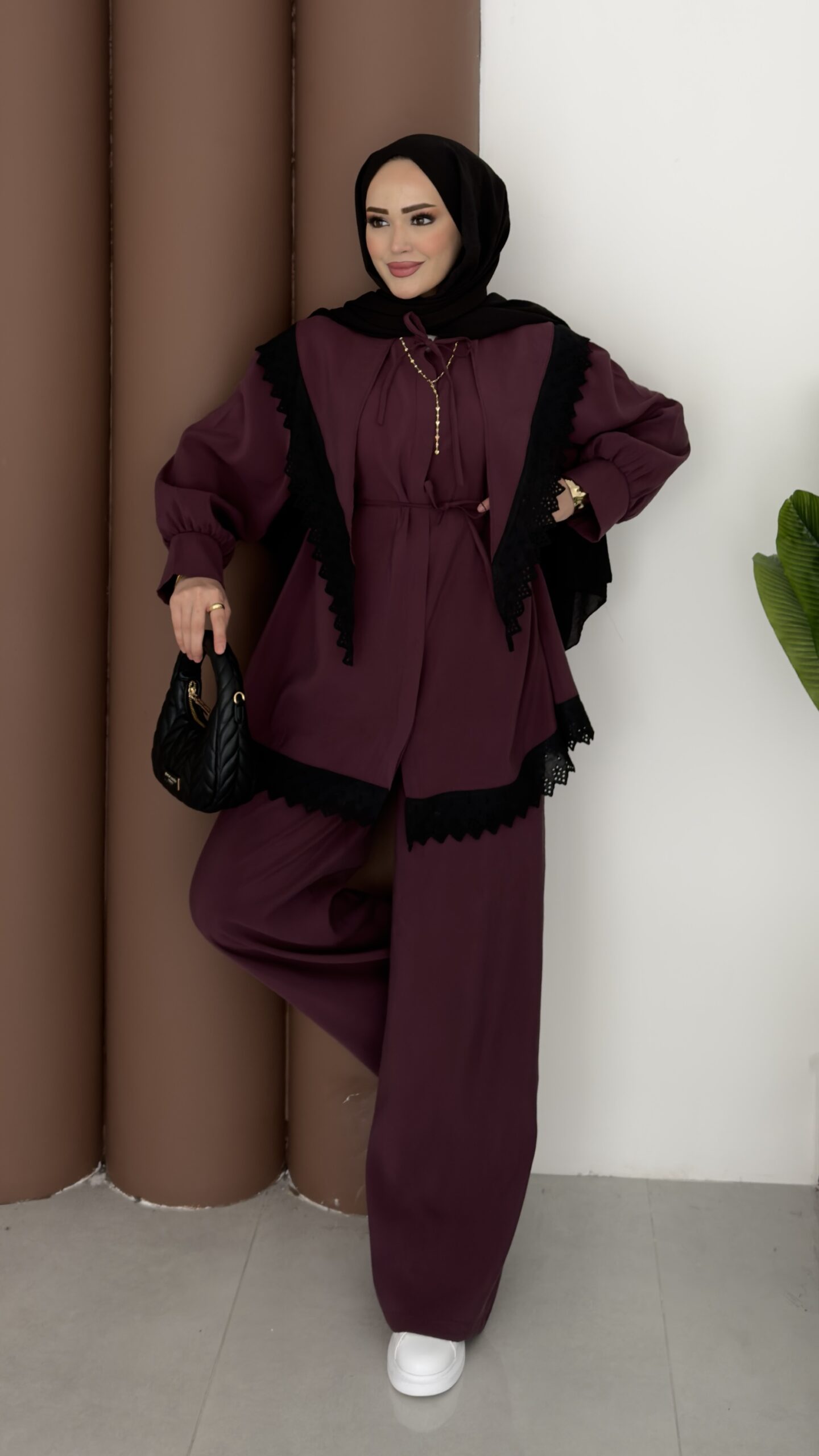 Güpür Yakalı Modal İkili Takım – Mürdüm