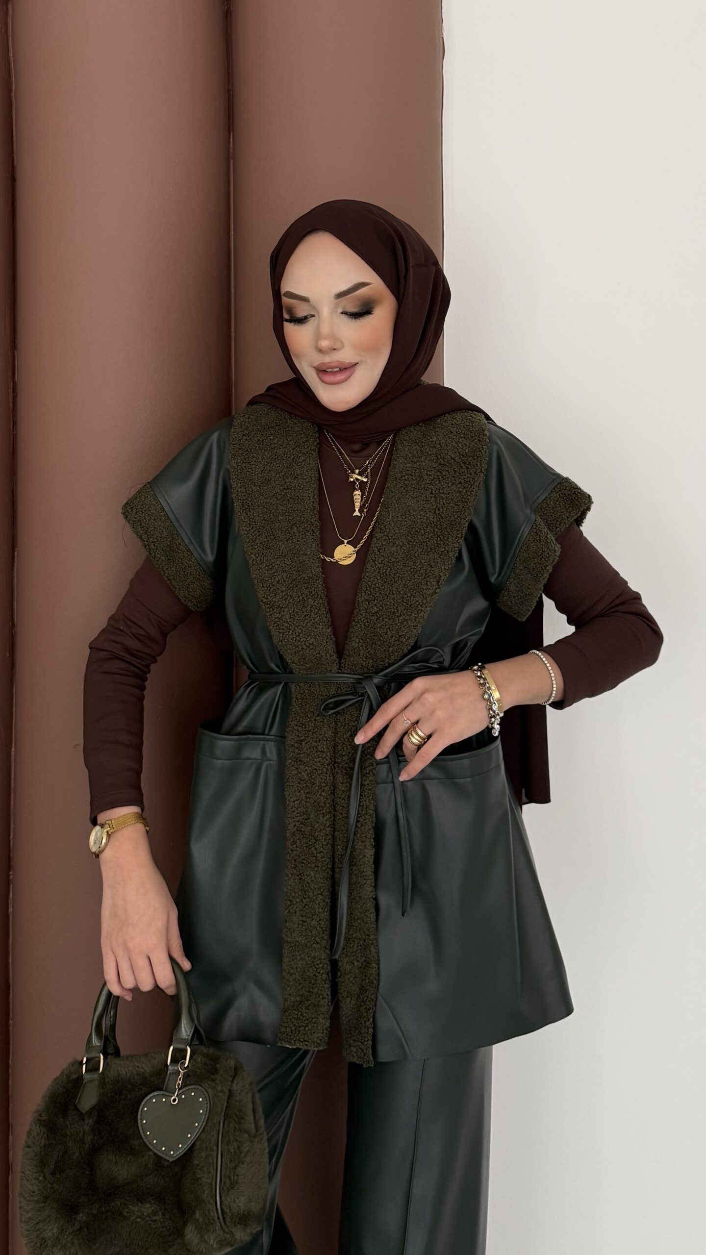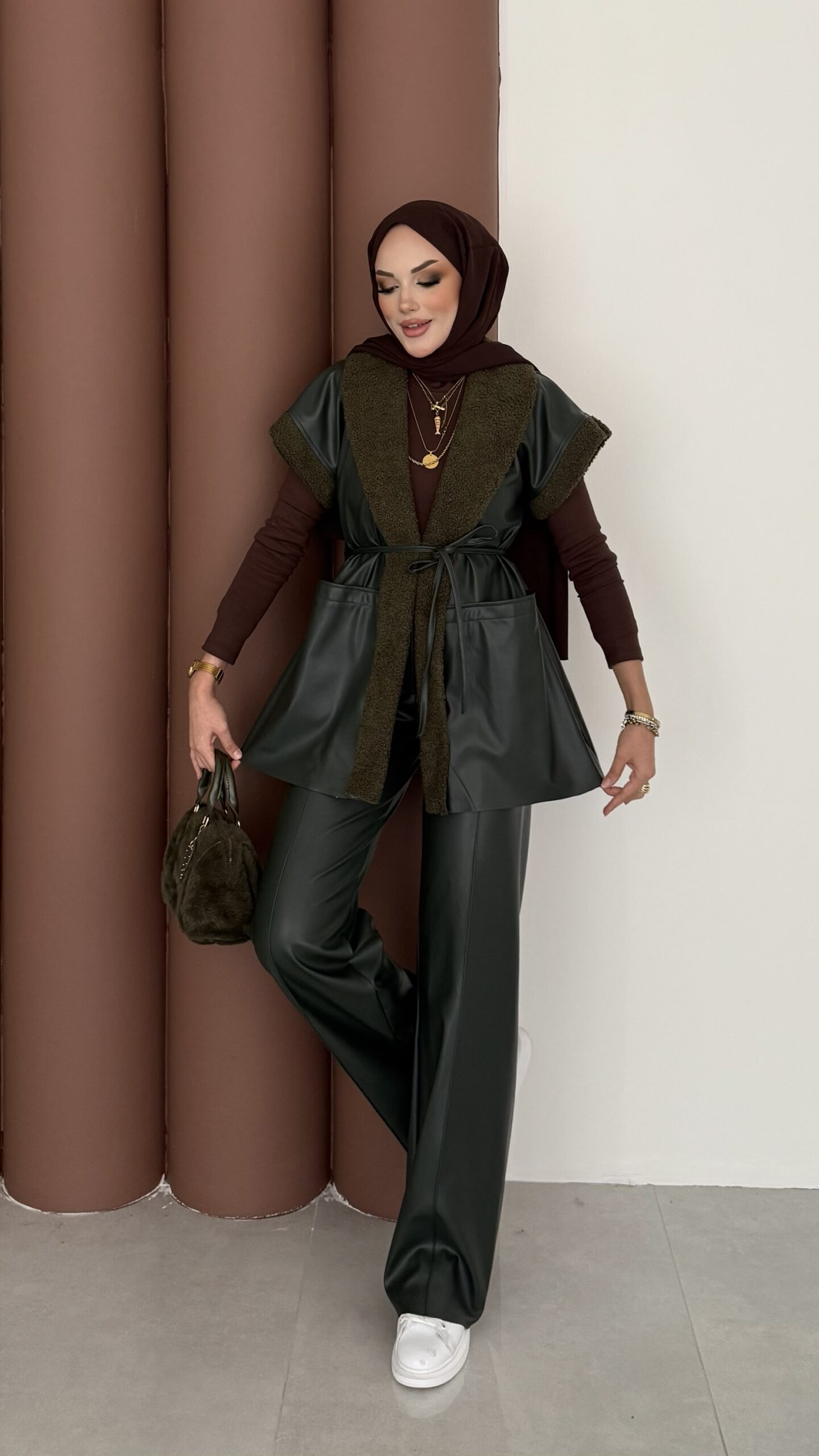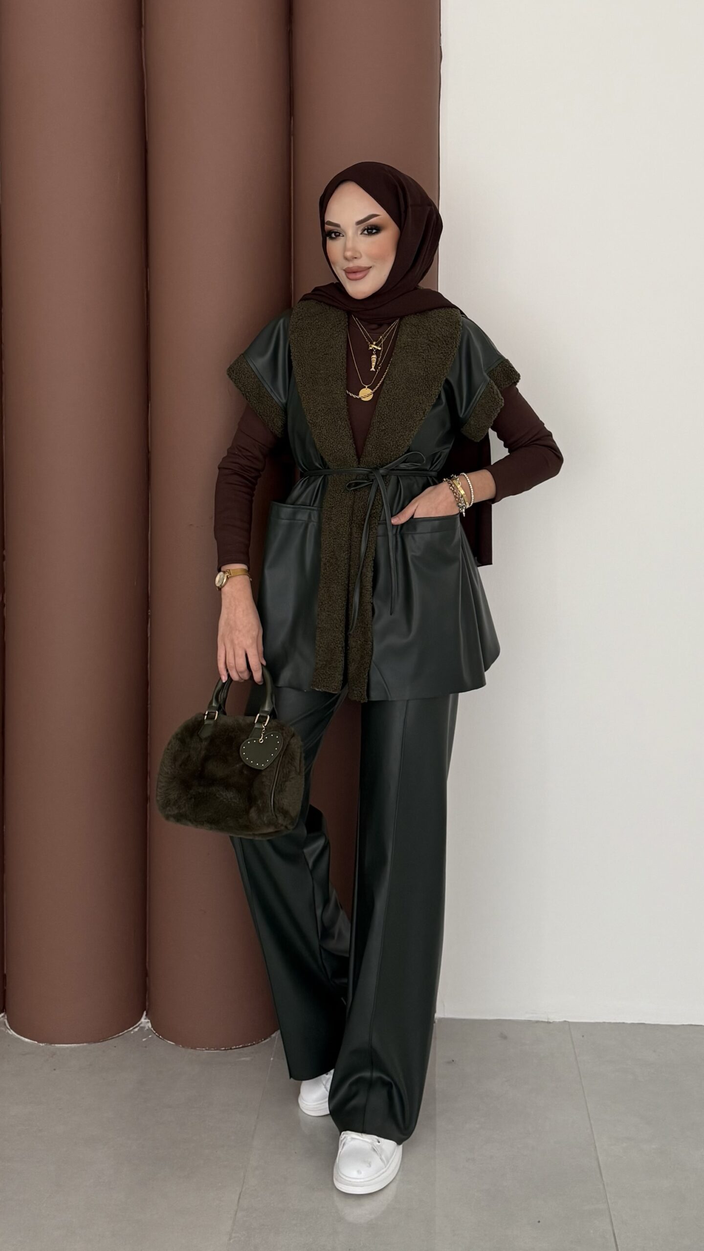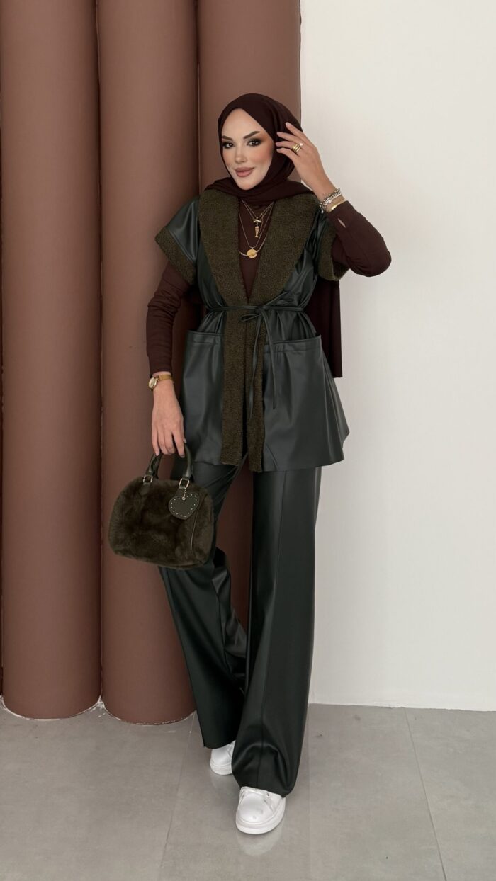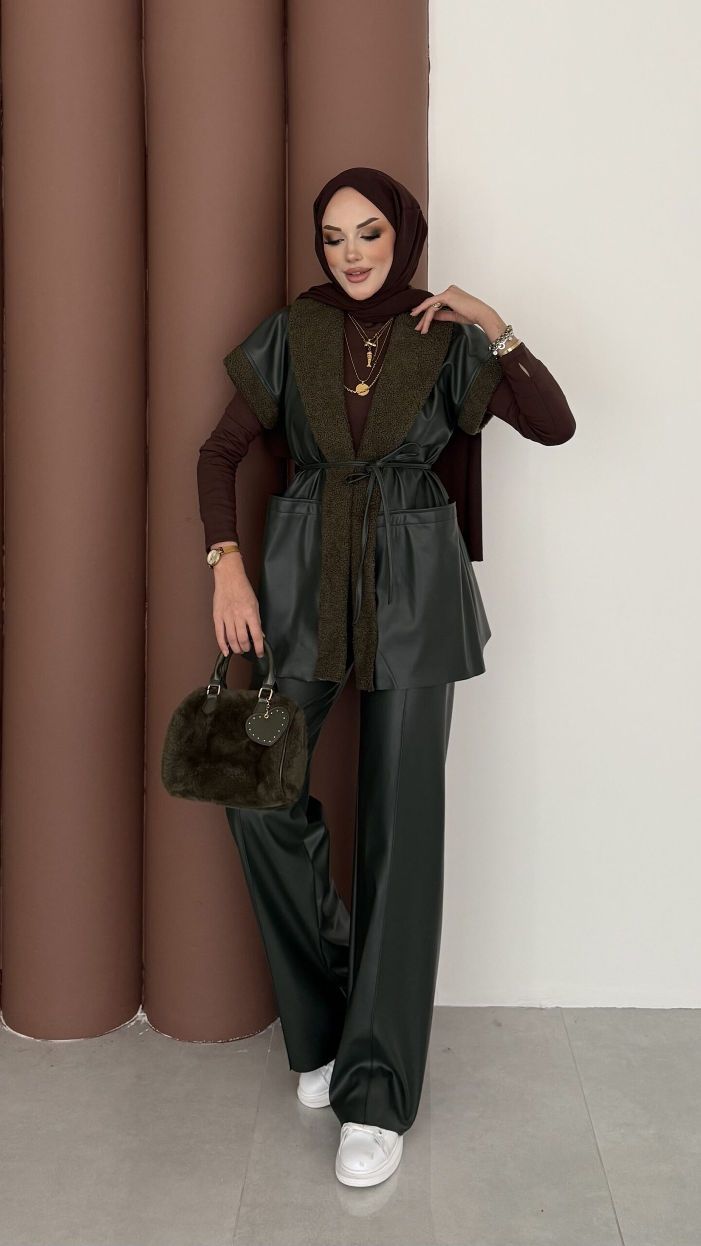 Harmony Premium Peluş Deri İkili Takım – Haki