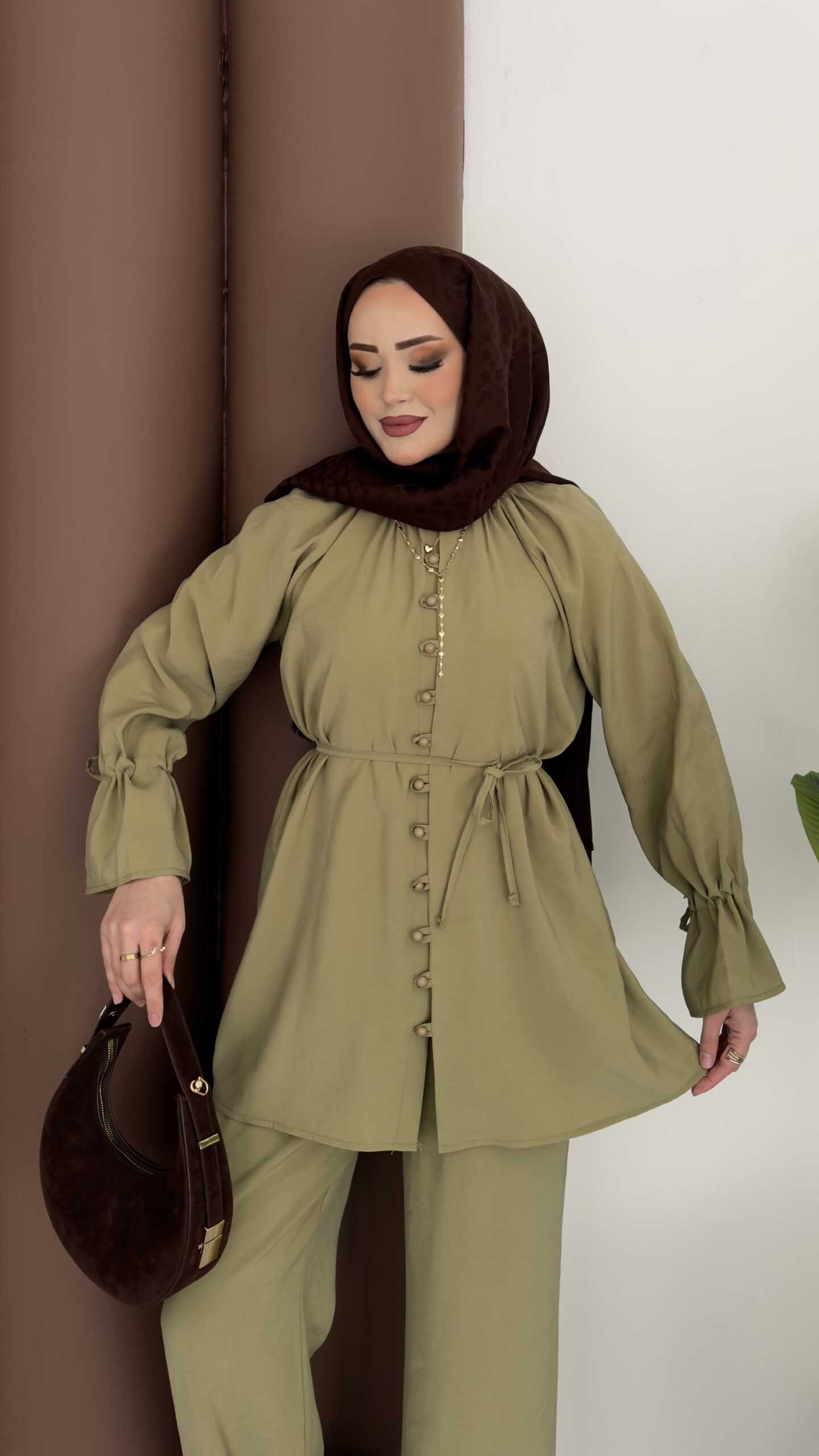 Moila Bronşlu Tensel İkili Takım – Yağ Yeşil